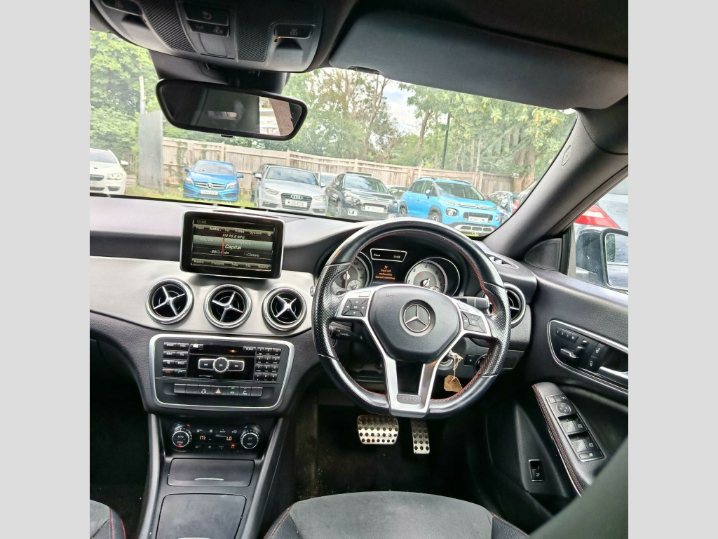 This is a Mercedes-Benz CLA220 CDI AMG Sport, registered in 2013, and it's a stylish car with a sporty edge. The AMG Sport trim adds to the vehicle's appeal, ensuring a dynamic driving experience. The car comes with a full service history, offering peace of mind regarding its upkeep.Inside, you'll find some great features, including the COMAND Online System with Media Interface, perfect for staying connected on the go. The Becker Map Pilot Navigation System will help you find your way, while the Audio 20 Radio with a 6-disc CD Changer provides entertainment for every journey. The designo Seat Belts in Red add a touch of sporty flair to the interior.Powered by a 2.1-litre diesel engine, this Euro 6 compliant vehicle is as economical as it is stylish. With a fuel economy of 63 mpg, you'll save money on fuel costs compared to similar vehicles. The CO2 emissions are just 117 grams per kilometre, meaning it's kinder to the environment. It also has a towing capacity of 1500 kg, adding to its practicality. For added reassurance, it comes with a 6-month warranty and a 12 months MOT provided on purchase. dio 20 radio with 6-disc cd changer, becker map pilot navigation system, 18in alloy wheels - amg multi spoke design black finish, designo seat belts - red, artico artificial leather/dinamica microfibre - black with red stitching, comand online system with media interface, amg exclusive package - leather - lava black with red perforations, 12v socket in front centre console, 18in alloy wheels - amg 5 twin spoke design, 5.8in colour display, abs - anti-lock braking system, amg bodystyling - front and rear apron - side skirts, amg sports package, asr - acceleration skid control, attention assist, active bonnet - pedestrian safety which detects an impact and raises bonnet, active park assist, adaptive brake lamps, adaptive brake system with hold function-hill start assist, air vents with chrome surround and cruciform nozzle, airbags - dual stage - driver, airbags - dual stage - front passenger, airbags - front sidebags, airbags - head for driver and passenger, airbags - kneebag, airbags - window, alarm system with immobiliser and interior protection, ambient lighting, anti-theft protection package, audio 20 radio system, automatic child seat recognition sensor, aux-in socket, bas - brake assist, beltline strips - black, bluetooth interface, brake pad wear indicator, bumpers - body coloured, centre armrest - front with storage, childproof locks - manually operated for rear doors and electrically operated for rear power windows, chrome package, collision prevention assist, controller on centre console with chrome surround, crash sensor with emergency opening function for doors, crash-responsive emergency lighting, cruise control with speedtronic variable speed limiter, daytime running lights - led, diamond grille with silver pins and black louvre with chrome trim, direct steering, direction indicators with one-touch control, door handles - body coloured, door mirrors - black, door mirrors - electrically adjustable and heated, door sills - illuminated, driver and front passenger seat - height-adjustable, esp - electronic stability programme, electric parking brake, electric windows - front and rear, electronic key with chrome surround, enhanced anti-theft protection, first aid kit, floor mats - amg, front footwell lighting, front sports seats, fuel computer, fully automatic climate control - thermotronic, gear shift trimmed in leather, headlamp assist - automatic headlamp activation, headlight wash system, headlights - bi xenon, heat insulating dark tinted glass, high level third brake light - led, isofix child seat fixing points in rear - two outer seats, identification label under windshield, illuminated glove compartment, illuminated headrests on driver and front passenger seats, illumination for storage compartment, led indicators integrated in exterior mirrors, led rear tail lights, light and sight package, load securing rings in luggage compartment, luggage compartment cover, night package, outside air temperature gauge, parking sensor - front, parking sensor - rear, pollen filter, pre-wiring for becker map pilot navigation system, privacy glass, radio aerial integrated into roof spoiler, rain-sensing wipers, reading lights and console light in rear headlining, rear seats - split folding 1-3 2-3, rear windscreen - heated with timer control, rear windscreen wiper, remote boot release, remote central locking, roof lining - black, seat belts reminder - front and rear, seat comfort package, seat occupancy sensor - front passenger seat, seats - cushion angle adjustment for front, service indicator assyst, side skirts - body coloured, speakers x6, sports pedals with rubber studs, sports seats with integrated head restraints, sports suspension, steering column - manually adjustable for height and reach, steering wheel - gear shift paddles, steering wheel - multi-function, steering wheel - sports-3-spoke-multifunction-trimmed nappa leather-flat bottom, steering wheel shift buttons, storage compartment under boot floor, summer tyres, sun visors with illuminated vanity mirrors, telephone keypad, trim - light aluminium with longitudinal grain, twin exhaust with rectangular tailpipes, tyre pressure loss warning system, tyres with run-flat capability, usb interface, warning triangle, abs - anti-lock braking system with bas - brake assist, automatic climate control with digital display, cup holder - twin, fluid level warning indicator - oil-coolant-washer fluid, front seats - manually adjustable, headlight failure indicator, immobiliser, instrument cluster with clock, multi-function colour display with trip computer, power steering - speed sensitive, rain sensing windscreen wipers