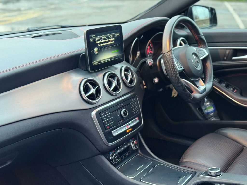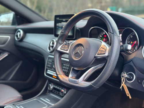 This 2017 Mercedes Benz CLA220d AMG Line boasts a full service history and has had only two owners, ensuring excellent provenance. This stylish coupe features the desirable AMG Line trim and an AMG Exclusive Package, which includes heated front seats for added comfort. You'll also find a panoramic sliding sunroof, perfect for enjoying the open air, and practical additions like a rear armrest with a twin cup holder and a through-loading facility. The striking 18 inch AMG multi-spoke alloy wheels in gloss black with a high sheen finish complement its sporty aesthetic.This Euro 6 compliant diesel model offers impressive fuel economy, achieving a remarkable 69 miles per gallon, and benefits from a low CO2 emission rating, making it an economical choice. Its low insurance group further adds to its appeal as a cost effective vehicle. A 12 month MOT will be provided on purchase, and the vehicle comes with a 3 month warranty for your peace of mind, alongside a clear vehicle history check. in alloy wheels - amg 5-twin spoke painted in black with a high sheen finish, abs - anti-lock braking system, amg bodystyling, asr - acceleration skid control, attention assist, active bonnet - pedestrian safety measure which detects an impact and raises bonnet by 65mm, active brake assist with hold function - hill start assist - priming and dry braking in the wet, active braking assist, air conditioning - thermotronic luxury automatic climate control - two-zone, air vents with chrome surround and cruciform nozzle, airbag - kneebag for driver, airbags - automatic front passenger airbag deactivation, airbags - driver and front passenger, airbags - sidebag for driver and front passenger - combined thorax-pelvis bag, airbags - windowbags, ambient lighting - interior door handles, ambient lighting - single colour in headrests, anti-theft protection package, armrest - front on centre console with fore-aft adjustment and contrast stitching with stowage compartment beneath, audio 20 cd multimedia system, beltline strips - black, bluetooth interface with hd voice-capable hands-free function and audio streaming, brake calipers with mercedes-benz lettering at the front, braking - adaptive brake lights - flash under emergency braking, brushed stainless steel sports pedals with rubber studs, bumpers - body coloured, cd player - mp3-wma-aac-wav-compatible, childproof locks - manually operated for rear doors and electrically operated for rear power windows, controller on centre console, crash-responsive emergency lighting, cruise control with limiter, dashboard trim - light aluminium with longitudinal grain, door handles - body coloured, door mirrors - electrically adjustable and heated, door mirrors - painted black with integrated led indicators and aspherically curved mirror glass, double cup holder in centre console, dynamic select, esp cornering dynamics assist, electric parking brake, electric windows - 4, electronic key - chrome surround, exhaust system - twin-pipe with rectangular tailpipes in polished stainless steel, first aid kit, floor mats - red stitched edging - amg lettering, fluid level warning indicator for fuel - oil - coolant and washer fluid, footwell lighting - front and rear, glass - rear windscreen - heated with timer control, headlamp assist - automatic headlamp activation in dark conditions, headlamps - led high performance with integrated led daytime running lights, isofix and top-tether child seat fixing points in rear - two outer seats, illuminated front door sills with mercedes-benz lettering, illuminated glove compartment, instrument cluster - fluid level warning indicator for fuel - oil - coolant and washer fluid, instrument cluster - outside temperature display, instrument cluster - service indicator assyst, instrument cluster - trip computer in multi-function display showing current fuel consumption, instrument cluster with 4 analogue dials and needles suspended in six-o-clock position, interior lighting - courtesy white and warning red lights in the front doors and boot lid, interior lighting - rear interior lighting with integral reading lamps and locator lighting, interior lighting - sun visor with illuminated vanity mirror for driver and front passenger, led rear tail lights, lighting in storage compartment and sun visors with illuminated vanity mirrors, load securing rings in luggage compartment, media display - 7in, mercedes me connect, parking pilot, power steering - sports direct-steer with speed-sensitive servo assistance and variable steering ratio, privacy glass from b-pillar backwards, radiator grille - diamond grille with pins in chrome and single high-gloss painted louvre with chrome inserts, radio with twin tuner and traffic information decoder - tp-ta, remote central locking and crash sensor with emergency opening function, roof lining - black, sd card slot, seat belt reminder - front and rear, seat belts - rear three-point - 3, seat occupancy sensor - front passenger seat, seats - front cushion length adjustment, seats - front seats - height adjustable, seats - front seats with adjustable seat cushion angle, seats - rear seat backrests - split folding 1-3 - 2-3, seats - sports, side skirts - body coloured, smartphone integration, steering column - manually adjustable for height and reach, steering wheel - 3-spoke 12-button multi-function sports steering wheel in leather with perforated in grip area - flattened bottom section and red contrast stitching, suspension - comfort - lowered by 20mm front and 15mm rear, tirefit with tyre inflation compressor, third brake light in led technology, two usb connections in centre armrest for external audio devices and storage media, tyre pressure monitoring system, warning triangle, wiper system - windscreen wipers including rain sensor with two sensitivity stages, 18in alloy wheels - amg multi-spoke design in high-gloss black with high-sheen finish, panoramic sliding sunroof, amg exclusive package, amg exclusive package - leather - lava bl