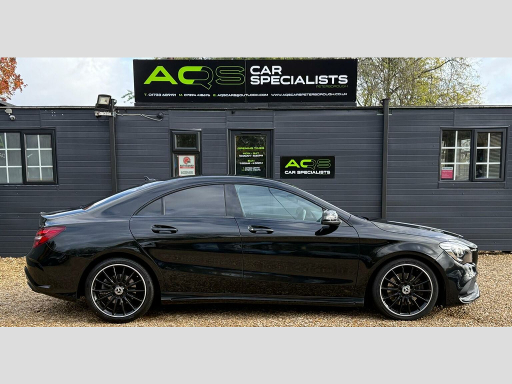 Here at AQS Car Specialist we take pride in being one of the few highly rated dealers for our customer service from Autotrader working closely together so we can go the extra mile to make sure you are getting the best service out there. All vehicles undergo a full visual and Mechanical health inspection, driven and tested. All essential work carried out with no expense spared. We offer an extended nation wide warranty with the option to extend up to 36 months, giving our customers full peace of mind and security when purchasing a car from AQS car specialists. Any inspection welcome, Test drive welcome, Part exchanges welcome. All dealer facilities available on site. Here at AQS Car Specialist we are delighted to offer this fantastic looking example of a Mercedes CLA 220D 2.1 AMG Line Night Edition. Finished in Black with newly refurbished matching Black AMG alloys and a Black half leather and Alcantara interior. Recently serviced and comes with a partial service history (2Mercedes Stamps) as well as a long MOT. In fantastic condition both inside and out, great example of how a CLA should drive. These CLAs are known for their stylish looks, being comfortable, reliable and low maintenance. This particular example benefits from being fitted with some great features which include, Dual Zone Climate Controlled Air Conditioning, Cruise Control, Sat Nav, USB Input, Bluetooth Connectivity, DAB Radio, Reverse Camera, Front and Rear Parking Sensors, Heated Front Seats, Keyless Go, Auto Headlights, Rain Sensing Wipers, PowerFolding Side Mirrors, Active Brake Assist, Hill Start and Hill Hold Assist, MultiFunctional Steering Wheel with Paddle Shifters, Full AMG Styling from Factory and the super useful Split Fold Rear Bench amongst all the usual Mercedes refinements you expect.