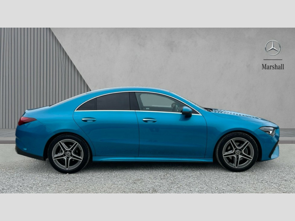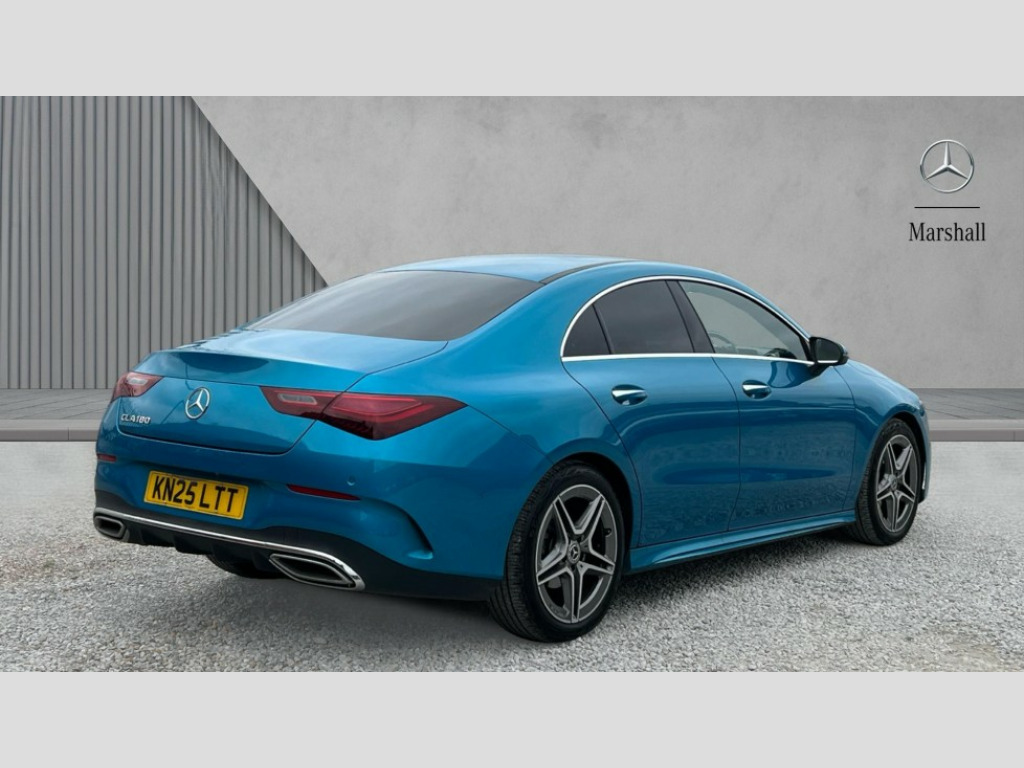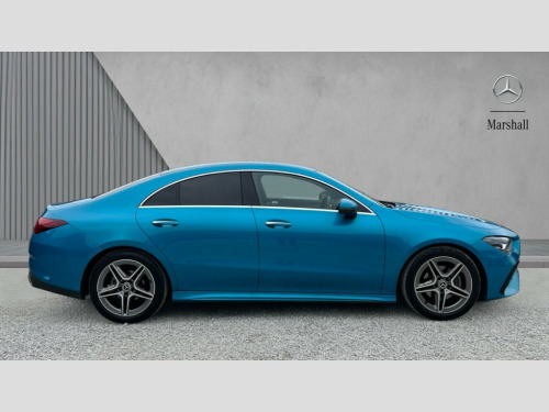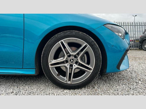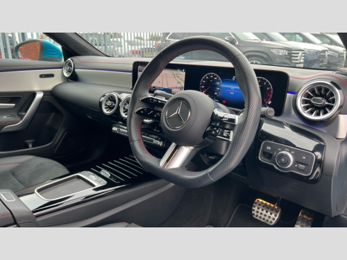 Mercedes-Benz CLA Class CLA 180 AMG Line Executive 4dr Tip Auto 10.25 inch Instrument display with digital cockpit, 10.25 inch touchscreen central media display, Active lane keeping assist, Attention assist - Monitors steering behaviour and long journey fatigue, Blind spot assist, Bluetooth connection, Car wash mode, Cruise control with limiter, Direct steer system, DYNAMIC SELECT with a choice of driving modes (ECO, Comfort, Sport and Individual), ECO start/stop function, Fingerprint sensor, Fluid level warning indicator for fuel, oil, coolant and washer fluid, Hard-disk navigation, Hey Mercedes Voice activation, Lamp failure indicator, Mercedes me connect including emergency call system, accident recovery, breakdown and maintenance management, Mercedes me remote services, Outside temperature gauge, Owners manual in English, Pre-installation of private car share, Radio aerial integrated into front and rear windshields, Service indicator (ASSYST), Smartphone integration with Apple CarPlay and Android auto, Speed limit assist, Trip computer in multifunction display with current consumption indicator, Wireless charging in the front centre console, Comfort suspension with ride height lowering, Rear axle multi-link, DAB digital radio tuner, MBUX multimedia system, Mercedes Benz sound system (100 W) with 6 speakers, Pre installation for Mercedes Benz Link, Adaptive brake lights, AMG body styling with AMG front apron and rear apron and visible exhaust tailpipe in chrome trim elements, Body colour door handles, Electric windows, Electrically adjustable and heated door mirrors with integrated LED indicators, Exhaust system with 2 Visible tailpipe trim elements and rear apron with trim in chrome, Hand free access, Headlamp assist automatic headlamp activation, Heated glass rear windscreen + timer control, High gloss aluminium beltline strips, High level LED third brake light, Interior mirror with black reading lamps and frameless, LED high performance headlamps with integrated LED daytime running lights and adaptive highbeam assist, LED tail lamp, Privacy glass with dark tinting on rear side windows and rear window, Radiator grille with Mercedes-Benz pattern in chrome and central Mercedes star, single louvre in high-gloss black with chrome inserts, Rain sensing windscreen wipers with two sensitivity settings, Rear boot, Rear fog lamp, Rear side wing doors, Variable front intermittent wipers, Window line trim strip in high gloss aluminium, 3 seat bench in 2nd row, 3 twin spoke flattened multifunction steering wheel in nappa leather - horizontal twin spoke in high gloss black, vertical twin spoke in silver chrome, 4 way lumbar support, 40:20:40 split folding rear seat backrests, Air conditioning - One zone THERMATIC automatic climate control with automatically controlled air distribution, Air vents with surround in silver chrome, Artico man-made leather/Microcut microfibre upholstery, Automatic child seat recognition sensor, Black roof lining, Brushed stainless steel sports pedals with rubber studs, Floor mats with stitched AMG lettering, Fluorescent jacket, Front centre armrest with stowage, Galvanished gear shift paddles in silver chrome, Heated front seats, Interior lighting - 64 colour Ambient lighting, Luggage net on driver/front passenger seat backrest, Manually height and reach adjustable steering column, Rear head restraints, Single front passenger seat, Sport seats with fixed head restraints, Stowage compartment in centre console with retractable cover, Sunvisors with illuminated vanity mirrors, Twin front cupholders, Two outer rear seat isofix and top tether child seat fixing points, Keyless go comfort pack - CLA, Light and sight pack - CLA, Mirror pack - CLA, Parking pack with reversing camera - CLA, Seat comfort pack - CLA, USB package plus - CLA, Active bonnet pedestrain safety measure which detects an impact and raises bonnet by 65mm, Active brake assist includes forward collision warning system with autonomous braking, Adaptive brake assist with hold function and hill start assist, Anti lock braking system (ABS) with brake assist, Black seat belts, Bonnet with power domes, Brake calipers with Mercedes-Benz lettering, Brake pad wear warning indicator, Childproof locks manually operated for rear doors and electrically operated for rear power windows, Crash responsive emergency lighting, Driver and front passenger head and sidebags, Driver and front passenger windowbags, Drivers knee airbag, Dual stage driver and front passenger airbags, Electric parking brake, Electronic stability programme with acceleration skid control, ESP curve dynamic assist, Front and rear seatbelt reminder, Front passenger seat occupancy sensor, Perforated front brake discs, Sports braking system, Three point rear seat belts, Tyre pressure monitoring system, Warning triangle and first aid kit, Alarm system with immobiliser and interior protection -Thatcham category 1, Guard 360 deg vehicle protection - tow away protection with visual, acoustic warning, interior monitoring, preinstallation for parking damage, Remote central locking and crash sensor with emergency opening function, Light aluminium with longitudinal grain interior trim, 18" AMG 5 twin spoke light alloy wheels painted in termolite grey with high sheen finish, Summer tyres, Tirefit tyre sealant kit