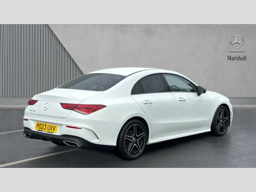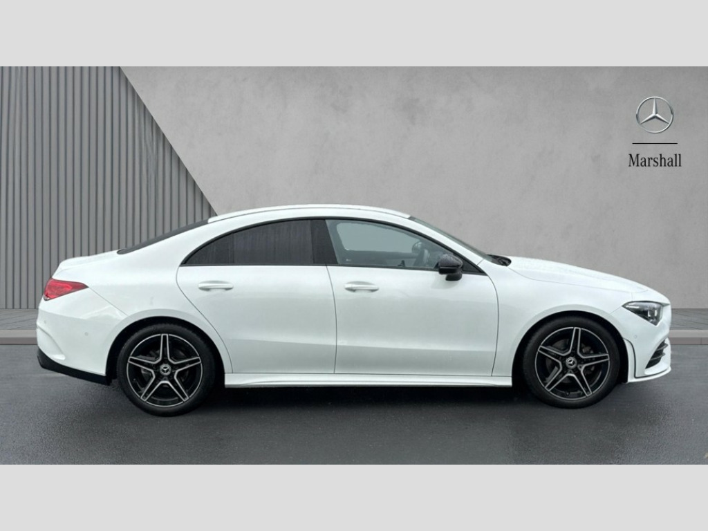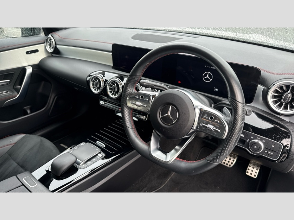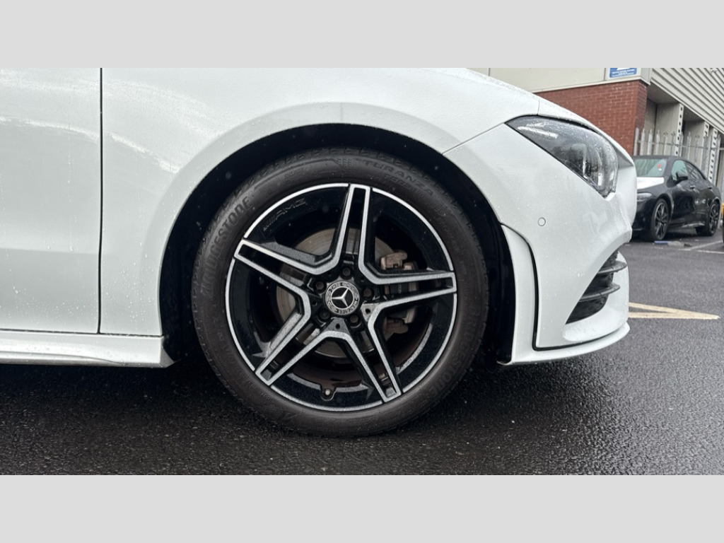 Mercedes-Benz CLA Class CLA 180 AMG Line Executive 4dr Tip Auto 10.25 inch Instrument display with digital cockpit, 10.25 inch touchscreen central media display, Active lane keeping assist, Attention assist - Monitors steering behaviour and long journey fatigue, Bluetooth connection, Car wash mode, Cruise control with limiter, Direct steer system with speed sensitive power steering, DYNAMIC SELECT with a choice of driving modes (ECO, Comfort, Sport and Individual), ECO start/stop function, Fluid level warning indicator for fuel, oil, coolant and washer fluid, Hard-disk navigation, Hey Mercedes Voice activation, Lamp failure indicator, Mercedes me connect including emergency call system, accident recovery, breakdown and maintenance management, Mercedes me remote services, Outside temperature gauge, Owners manual and service booklet in English, Pre-installation of private car share, Preinstallation for Mercedes Benz link, Radio aerial integrated into front and rear windshields, Service indicator (ASSYST), Smartphone integration with Apple CarPlay and Android auto, Speed limit assist, Trip computer in multifunction display with current consumption indicator, Lowered comfort suspension, Rear axle multi-link, DAB digital radio tuner, MBUX multimedia system, Mercedes Benz sound system (100 W) with 6 speakers, USB (type C) ports (2) in stowage compartment and 1 in front of centre console, Adaptive brake lights, AMG body styling with AMG front apron and rear apron and visible exhaust tailpipe in chrome trim elements, AMG bodystyling side skirts, Body colour bumpers, Body colour door handles, Chrome beltline strips, Diamond radiator grille pins in chrome, Electric windows, Electrically adjustable and heated door mirrors with integrated LED indicators, Exhaust system with 2 Visible tailpipe trim elements and rear apron with trim in chrome, Headlamp assist automatic headlamp activation, Heated glass rear windscreen + timer control, High level LED third brake light, Interior mirror with black reading lamps and frameless, LED high performance headlamps with integrated LED daytime running lights, LED tail lamp, Privacy glass with dark tinting on rear side windows and rear window, Rain sensing windscreen wipers with two sensitivity settings, Rear boot, Rear fog lamp, Rear side wing doors, Variable front intermittent wipers, Window line trim strip in chrome, 3 seat bench in 2nd row, 3 spoke flattened bottom nappa leather multifunction steering wheel with perforated leather in grip area, 40:20:40 split folding rear seat backrests, Air conditioning - Two zone thermotronic luxury automatic climate control with display, Air vents with surround in silver chrome, Artico man-made leather upholstery, Automatic child seat recognition sensor, Black roof lining, Brushed stainless steel sports pedals with rubber studs, Floor mats with stitched AMG lettering, Front centre armrest with stowage, Front door sills with Mercedes Benz lettering, Galvanished gear shift paddles on steering wheel, Heated front seats, Illuminated glove compartment stowage, Interior lighting - 64 colour Ambient lighting, Luggage net on driver/front passenger seat backrest, Manually adjustable front seats, Manually height and reach adjustable steering column, Rear head restraints, Single front passenger seat, Sport seats with fixed head restraints, Stowage compartment in centre console with retractable cover, Sunvisors with illuminated vanity mirrors, Touchpad on center console, Twin front cupholders, Two outer rear seat isofix and top tether child seat fixing points, Light and sight pack - CLA, Mirror pack - CLA, Night package - CLA, Parking package - CLA, Seat comfort pack - CLA, Active bonnet pedestrain safety measure which detects an impact and raises bonnet by 65mm, Active brake assist includes forward collision warning system with autonomous braking, Adaptive brake assist with hold function and hill start assist, Anti lock braking system (ABS) with brake assist, Black seat belts, Bonnet with power domes, Brake pad wear warning indicator, Childproof locks manually operated for rear doors and electrically operated for rear power windows, Crash responsive emergency lighting, Driver and front passenger head and sidebags, Driver and front passenger windowbags, Drivers knee airbag, Dual stage driver and front passenger airbags, Electric parking brake, Electronic stability programme with acceleration skid control, ESP curve dynamic assist, Front and rear seatbelt reminder, Front passenger seat occupancy sensor, Three point rear seat belts, Tyre pressure monitoring system, Warning triangle and first aid kit, Guard 360 degree guard vehicle protection system with immobiliser and interior protection, Keyless Go starting function, Remote central locking and crash sensor with emergency opening function, Light aluminium with longitudinal grain interior trim, 18" AMG 5 twin spoke light alloy wheels painted in black with high sheen finish, Summer tyres, Tirefit tyre sealant kit