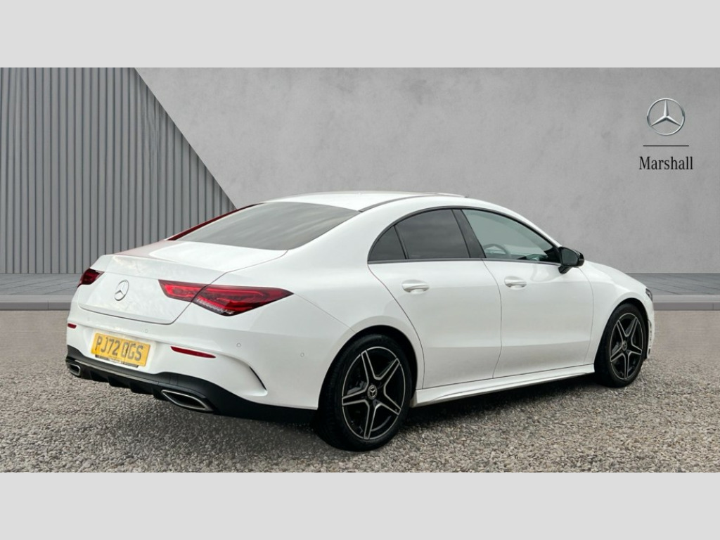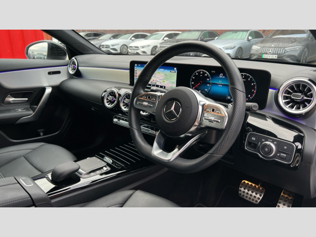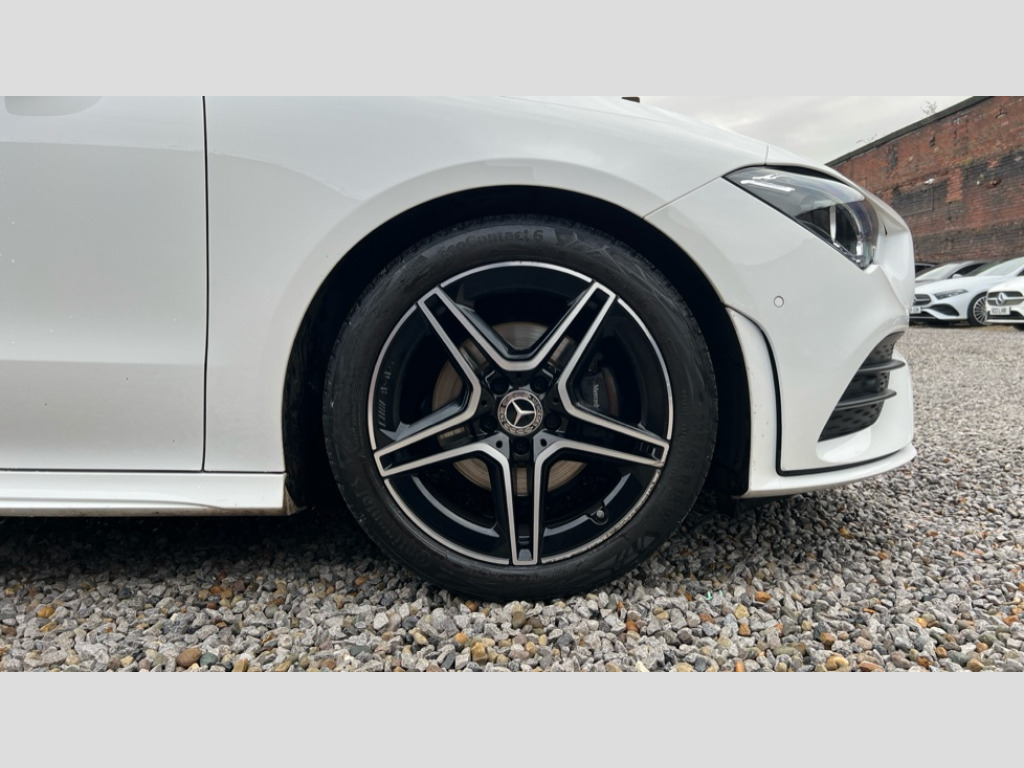 Mercedes-Benz CLA Class CLA 180 AMG Line Executive 4dr Tip Auto 10.25 inch Instrument display with digital cockpit, 10.25 inch touchscreen central media display, Active lane keeping assist, Attention assist - Monitors steering behaviour and long journey fatigue, Bluetooth connection, Car wash mode, Cruise control with limiter, Direct steer system with speed sensitive power steering, DYNAMIC SELECT with a choice of driving modes (ECO, Comfort, Sport and Individual), ECO start/stop function, Fluid level warning indicator for fuel, oil, coolant and washer fluid, Hard-disk navigation, Hey Mercedes Voice activation, Lamp failure indicator, Mercedes me connect including emergency call system, accident recovery, breakdown and maintenance management, Mercedes me remote services, Outside temperature gauge, Owners manual and service booklet in English, Pre-installation of private car share, Preinstallation for Mercedes Benz link, Radio aerial integrated into front and rear windshields, Service indicator (ASSYST), Smartphone integration with Apple CarPlay and Android auto, Speed limit assist, Trip computer in multifunction display with current consumption indicator, Lowered comfort suspension, Rear axle multi-link, DAB digital radio tuner, MBUX multimedia system, Mercedes Benz sound system (100 W) with 6 speakers, USB (type C) ports (2) in stowage compartment and 1 in front of centre console, Adaptive brake lights, AMG body styling with AMG front apron and rear apron and visible exhaust tailpipe in chrome trim elements, AMG bodystyling side skirts, Body colour bumpers, Body colour door handles, Chrome beltline strips, Diamond radiator grille pins in chrome, Electric windows, Electrically adjustable and heated door mirrors with integrated LED indicators, Exhaust system with 2 Visible tailpipe trim elements and rear apron with trim in chrome, Headlamp assist automatic headlamp activation, Heated glass rear windscreen + timer control, High level LED third brake light, Interior mirror with black reading lamps and frameless, LED high performance headlamps with integrated LED daytime running lights, LED tail lamp, Privacy glass with dark tinting on rear side windows and rear window, Rain sensing windscreen wipers with two sensitivity settings, Rear boot, Rear fog lamp, Rear side wing doors, Variable front intermittent wipers, Window line trim strip in chrome, 3 seat bench in 2nd row, 3 spoke flattened bottom nappa leather multifunction steering wheel with perforated leather in grip area, 40:20:40 split folding rear seat backrests, Air conditioning - Two zone thermotronic luxury automatic climate control with display, Air vents with surround in silver chrome, Artico man-made leather upholstery, Automatic child seat recognition sensor, Black roof lining, Brushed stainless steel sports pedals with rubber studs, Floor mats with stitched AMG lettering, Front centre armrest with stowage, Front door sills with Mercedes Benz lettering, Galvanished gear shift paddles on steering wheel, Heated front seats, Illuminated glove compartment stowage, Interior lighting - 64 colour Ambient lighting, Luggage net on driver/front passenger seat backrest, Manually adjustable front seats, Manually height and reach adjustable steering column, Rear head restraints, Single front passenger seat, Sport seats with fixed head restraints, Stowage compartment in centre console with retractable cover, Sunvisors with illuminated vanity mirrors, Touchpad on center console, Twin front cupholders, Two outer rear seat isofix and top tether child seat fixing points, Light and sight pack - CLA, Mirror pack - CLA, Night package - CLA, Parking package - CLA, Seat comfort pack - CLA, Active bonnet pedestrain safety measure which detects an impact and raises bonnet by 65mm, Active brake assist includes forward collision warning system with autonomous braking, Adaptive brake assist with hold function and hill start assist, Anti lock braking system (ABS) with brake assist, Black seat belts, Bonnet with power domes, Brake pad wear warning indicator, Childproof locks manually operated for rear doors and electrically operated for rear power windows, Crash responsive emergency lighting, Driver and front passenger head and sidebags, Driver and front passenger windowbags, Drivers knee airbag, Dual stage driver and front passenger airbags, Electric parking brake, Electronic stability programme with acceleration skid control, ESP curve dynamic assist, Front and rear seatbelt reminder, Front passenger seat occupancy sensor, Three point rear seat belts, Tyre pressure monitoring system, Warning triangle and first aid kit, Guard 360 degree guard vehicle protection system with immobiliser and interior protection, Keyless Go starting function, Remote central locking and crash sensor with emergency opening function, Light aluminium with longitudinal grain interior trim, 18" AMG 5 twin spoke light alloy wheels painted in black with high sheen finish, Summer tyres, Tirefit tyre sealant kit