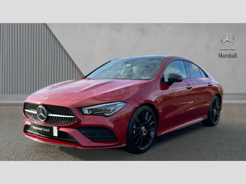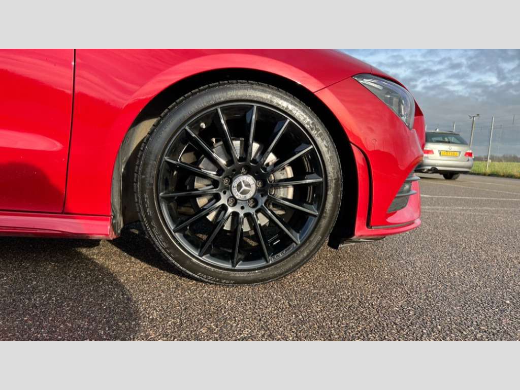 Mercedes-Benz CLA Class CLA 180 AMG Line Premium + Night Ed 4dr Tip Auto 10.25 inch Instrument display with digital cockpit, 10.25 inch touchscreen central media display, Active lane keeping assist, Attention assist - Monitors steering behaviour and long journey fatigue, Blind spot assist, Bluetooth connection, Car wash mode, Cruise control with limiter, Direct steer system with speed sensitive power steering, DYNAMIC SELECT with a choice of driving modes (ECO, Comfort, Sport and Individual), ECO start/stop function, Fluid level warning indicator for fuel, oil, coolant and washer fluid, Hard-disk navigation, Hey Mercedes Voice activation, Lamp failure indicator, Mercedes me connect including emergency call system, accident recovery, breakdown and maintenance management, Mercedes me remote services, Outside temperature gauge, Owners manual and service booklet in English, Pre-installation of private car share, Preinstallation for Mercedes Benz link, Radio aerial integrated into front and rear windshields, Service indicator (ASSYST), Smartphone integration with Apple CarPlay and Android auto, Speed limit assist, Traffic sign assist, Trip computer in multifunction display with current consumption indicator, Lowered comfort suspension, Rear axle multi-link, DAB digital radio tuner, MBUX multimedia system, Mid-range sound system, USB (type C) ports (2) in stowage compartment and 1 in front of centre console, Adaptive brake lights, AMG body styling with AMG front apron and rear apron and visible exhaust tailpipe in chrome trim elements, AMG bodystyling side skirts, Body colour bumpers, Body colour door handles, Chrome beltline strips, Diamond radiator grille pins in chrome, Electric panoramic sunroof with automatic tilt and convenience closing fuinctions, rain sensor auto closing and electronic roller sunblind, Electric windows, Electrically adjustable and heated door mirrors with integrated LED indicators, Exhaust system with 2 Visible tailpipe trim elements and rear apron with trim in chrome, Headlamp assist automatic headlamp activation, Heated glass rear windscreen + timer control, High level LED third brake light, Integrated LED daytime running lights, Interior mirror with black reading lamps and frameless, LED tail lamp, Multibeam LED headlamps with adaptive highbeam assist plus, Privacy glass with dark tinting on rear side windows and rear window, Rain sensing windscreen wipers with two sensitivity settings, Rear boot, Rear fog lamp, Rear side wing doors, Variable front intermittent wipers, Window line trim strip in chrome, 3 seat bench in 2nd row, 3 spoke flattened bottom nappa leather multifunction steering wheel with perforated leather in grip area, 40:20:40 split folding rear seat backrests, Air conditioning - Two zone thermotronic luxury automatic climate control with display, Air vents with surround in silver chrome, Artico man-made leather upholstery, Automatic child seat recognition sensor, Black roof lining, Brushed stainless steel sports pedals with rubber studs, Electrically adjustable front memory seats including lumbar support, Floor mats with stitched AMG lettering, Front centre armrest with stowage, Galvanished gear shift paddles on steering wheel, Heated front seats, Illuminated front door sills with changeable cover, Illuminated glove compartment stowage, Interior lighting - 64 colour Ambient lighting, Luggage net on driver/front passenger seat backrest, Manually adjustable front seats, Manually height and reach adjustable steering column, Rear armrest with two integral cup holders for drinks, Rear head restraints, Single front passenger seat, Sport seats with fixed head restraints, Stowage compartment in centre console with retractable cover, Sunvisors with illuminated vanity mirrors, Touchpad on center console, Twin front cupholders, Two outer rear seat isofix and top tether child seat fixing points, Keyless go comfort pack - CLA, Light and sight pack - CLA, Mirror pack - CLA, Night package - CLA, Parking package - CLA, Active bonnet pedestrain safety measure which detects an impact and raises bonnet by 65mm, Active brake assist includes forward collision warning system with autonomous braking, Adaptive brake assist with hold function and hill start assist, Anti lock braking system (ABS) with brake assist, Black seat belts, Bonnet with power domes, Brake pad wear warning indicator, Childproof locks manually operated for rear doors and electrically operated for rear power windows, Crash responsive emergency lighting, Driver and front passenger head and sidebags, Driver and front passenger windowbags, Drivers knee airbag, Dual stage driver and front passenger airbags, Electric parking brake, Electronic stability programme with acceleration skid control, ESP curve dynamic assist, Exit warning, Front and rear seatbelt reminder, Front passenger seat occupancy sensor, Three point rear seat belts, Tyre pressure monitoring system, Warning triangle and first aid kit, Guard 360 degree guard vehicle protection system with immobiliser and interior protection, Remote central locking and crash sensor with emergency opening function, Light aluminium with longitudinal grain interior trim, 19" AMG multi-spoke black painted light alloy wheels with high sheen rim finish, Summer tyres, Tirefit tyre sealant kit
