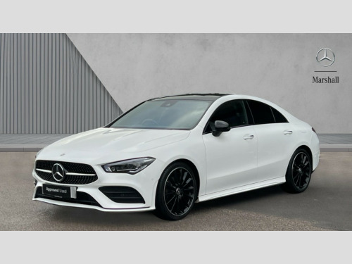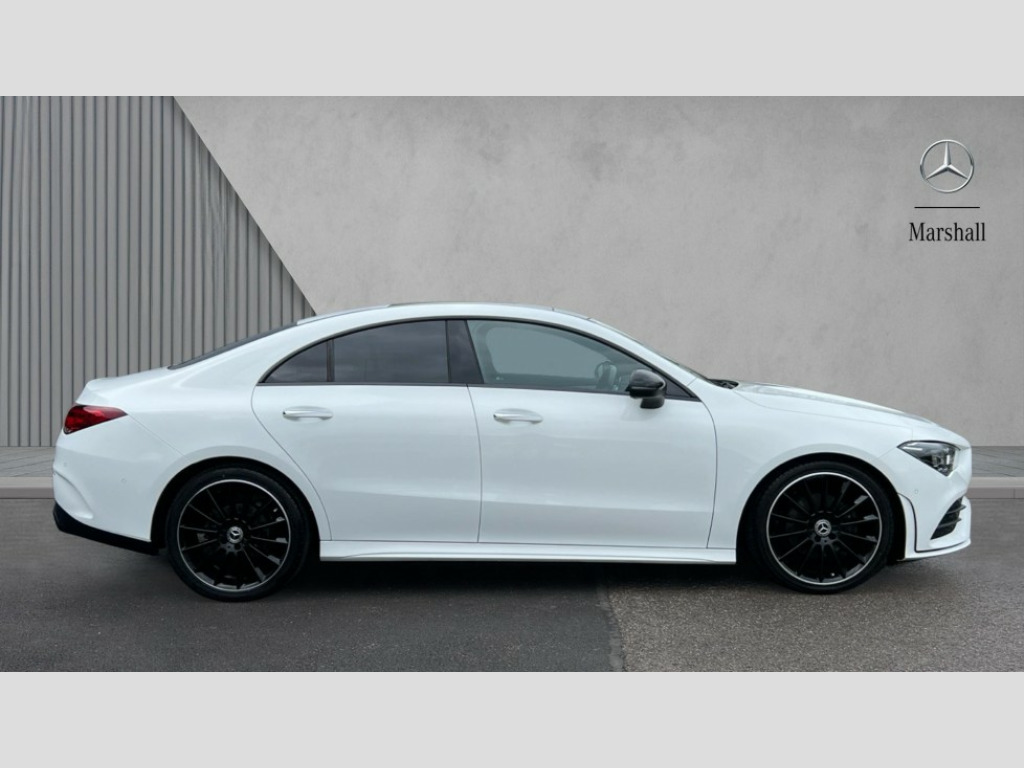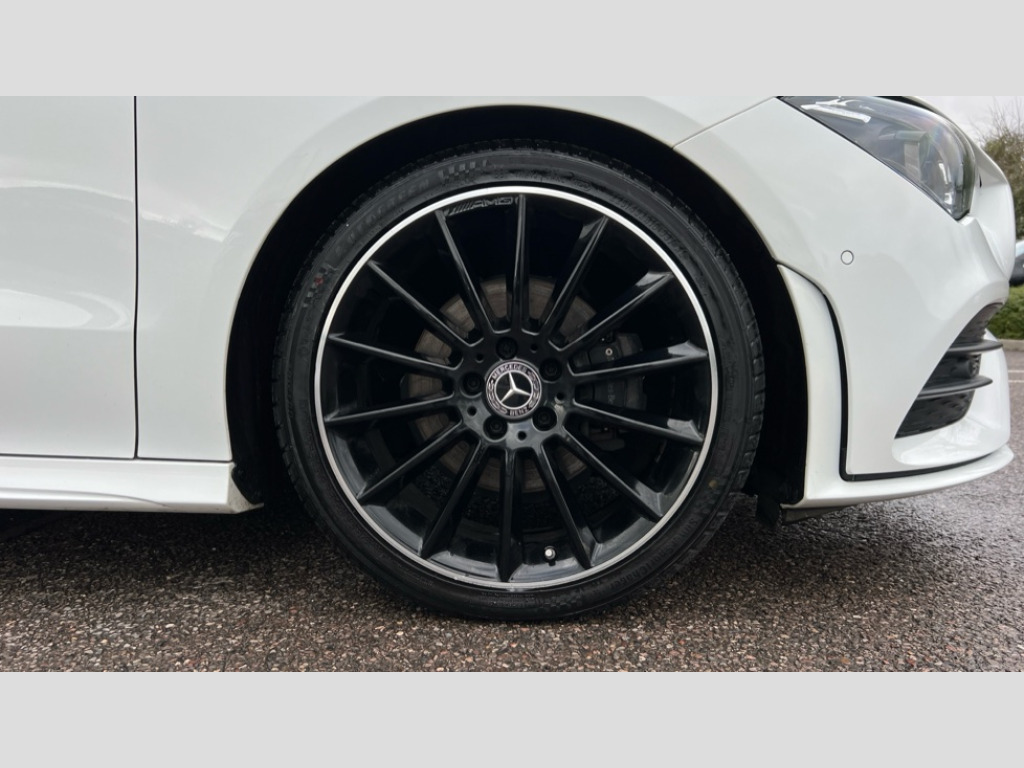 Mercedes-Benz CLA Class CLA 180 AMG Line Premium + Night Ed 4dr Tip Auto 10.25 inch Instrument display with digital cockpit, 10.25 inch touchscreen central media display, Active lane keeping assist, Attention assist - Monitors steering behaviour and long journey fatigue, Blind spot assist, Bluetooth connection, Car wash mode, Cruise control with limiter, Direct steer system with speed sensitive power steering, DYNAMIC SELECT with a choice of driving modes (ECO, Comfort, Sport and Individual), ECO start/stop function, Fluid level warning indicator for fuel, oil, coolant and washer fluid, Hard-disk navigation, Hey Mercedes Voice activation, Lamp failure indicator, Mercedes me connect including emergency call system, accident recovery, breakdown and maintenance management, Mercedes me remote services, Outside temperature gauge, Owners manual and service booklet in English, Pre-installation of private car share, Preinstallation for Mercedes Benz link, Radio aerial integrated into front and rear windshields, Service indicator (ASSYST), Smartphone integration with Apple CarPlay and Android auto, Speed limit assist, Traffic sign assist, Trip computer in multifunction display with current consumption indicator, Lowered comfort suspension, Rear axle multi-link, DAB digital radio tuner, MBUX multimedia system, Mid-range sound system, USB (type C) ports (2) in stowage compartment and 1 in front of centre console, Adaptive brake lights, AMG body styling with AMG front apron and rear apron and visible exhaust tailpipe in chrome trim elements, AMG bodystyling side skirts, Body colour bumpers, Body colour door handles, Chrome beltline strips, Diamond radiator grille pins in chrome, Electric panoramic sunroof with automatic tilt and convenience closing fuinctions, rain sensor auto closing and electronic roller sunblind, Electric windows, Electrically adjustable and heated door mirrors with integrated LED indicators, Exhaust system with 2 Visible tailpipe trim elements and rear apron with trim in chrome, Headlamp assist automatic headlamp activation, Heated glass rear windscreen + timer control, High level LED third brake light, Integrated LED daytime running lights, Interior mirror with black reading lamps and frameless, LED tail lamp, Multibeam LED headlamps with adaptive highbeam assist plus, Privacy glass with dark tinting on rear side windows and rear window, Rain sensing windscreen wipers with two sensitivity settings, Rear boot, Rear fog lamp, Rear side wing doors, Variable front intermittent wipers, Window line trim strip in chrome, 3 seat bench in 2nd row, 3 spoke flattened bottom nappa leather multifunction steering wheel with perforated leather in grip area, 40:20:40 split folding rear seat backrests, Air conditioning - Two zone thermotronic luxury automatic climate control with display, Air vents with surround in silver chrome, Artico man-made leather upholstery, Automatic child seat recognition sensor, Black roof lining, Brushed stainless steel sports pedals with rubber studs, Electrically adjustable front memory seats including lumbar support, Floor mats with stitched AMG lettering, Front centre armrest with stowage, Galvanished gear shift paddles on steering wheel, Heated front seats, Illuminated front door sills with changeable cover, Illuminated glove compartment stowage, Interior lighting - 64 colour Ambient lighting, Luggage net on driver/front passenger seat backrest, Manually adjustable front seats, Manually height and reach adjustable steering column, Rear armrest with two integral cup holders for drinks, Rear head restraints, Single front passenger seat, Sport seats with fixed head restraints, Stowage compartment in centre console with retractable cover, Sunvisors with illuminated vanity mirrors, Touchpad on center console, Twin front cupholders, Two outer rear seat isofix and top tether child seat fixing points, Keyless go comfort pack - CLA, Light and sight pack - CLA, Mirror pack - CLA, Night package - CLA, Parking package - CLA, Active bonnet pedestrain safety measure which detects an impact and raises bonnet by 65mm, Active brake assist includes forward collision warning system with autonomous braking, Adaptive brake assist with hold function and hill start assist, Anti lock braking system (ABS) with brake assist, Black seat belts, Bonnet with power domes, Brake pad wear warning indicator, Childproof locks manually operated for rear doors and electrically operated for rear power windows, Crash responsive emergency lighting, Driver and front passenger head and sidebags, Driver and front passenger windowbags, Drivers knee airbag, Dual stage driver and front passenger airbags, Electric parking brake, Electronic stability programme with acceleration skid control, ESP curve dynamic assist, Exit warning, Front and rear seatbelt reminder, Front passenger seat occupancy sensor, Three point rear seat belts, Tyre pressure monitoring system, Warning triangle and first aid kit, Guard 360 degree guard vehicle protection system with immobiliser and interior protection, Remote central locking and crash sensor with emergency opening function, Light aluminium with longitudinal grain interior trim, 19" AMG multi-spoke black painted light alloy wheels with high sheen rim finish, Summer tyres, Tirefit tyre sealant kit
