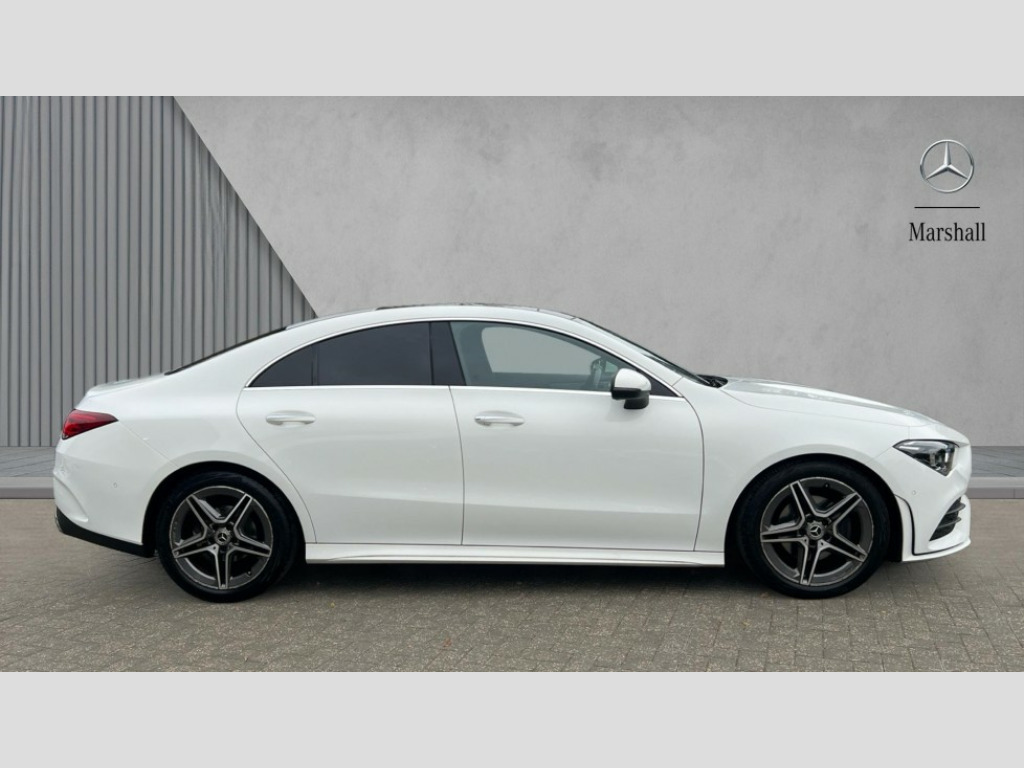 Mercedes-Benz CLA Class CLA 180 AMG Line Premium Plus 4dr Tip Auto 10.25 inch Instrument display with digital cockpit, 10.25 inch touchscreen central media display, Attention assist - Monitors steering behaviour and long journey fatigue, Bluetooth connection, Car wash mode, DYNAMIC SELECT with a choice of driving modes (ECO, Comfort, Sport and Individual), ECO start/stop function, Fluid level warning indicator for fuel, oil, coolant and washer fluid, Hard-disk navigation, Hey Mercedes Voice activation, Lamp failure indicator, MBUX augmented reality for navigation, Mercedes me connect including emergency call system, accident recovery, breakdown and maintenance management, Mercedes me remote services, Outside temperature gauge, Owners manual and service booklet in English, Pre-installation of private car share, Preinstallation for Mercedes Benz link, Radio aerial integrated into front and rear windshields, Remote and charging services plus, Service indicator (ASSYST), Smartphone integration with Apple CarPlay and Android auto, Traffic sign assist, Trip computer in multifunction display with current consumption indicator, Wireless charging, 7G-DCT 7 speed automatic transmission, Lowered comfort suspension, Rear axle multi-link, DAB digital radio tuner, MBUX multimedia system with DAB digital radio and touchpad including satellite navigation, Mercedes Benz advanced sound system (225 W) with 10 speakers, 1 central speaker, speakers on doors, a tweeter on door,one sub woofer + boost amplifier, USB (type C) ports (2) in stowage compartment and 1 in front of centre console, Adaptive brake lights, AMG body styling with AMG front apron and rear apron and visible exhaust tailpipe in chrome trim elements, AMG bodystyling side skirts, Body colour bumpers, Body colour door handles, Chrome beltline strips, Chrome weather strip, Diamond radiator grille pins in chrome with silver painted louvres and chrome insert, Electric panoramic sliding sunroof, Electric windows, Electrically adjustable and heated door mirrors with integrated LED indicators, Exhaust system with 2 Visible tailpipe trim elements and rear apron with trim in chrome, Headlamp assist automatic headlamp activation, Heated glass rear windscreen + timer control, High level LED third brake light, Integrated LED daytime running lights, Interior mirror with black reading lamps and frameless, LED tail lamp, Multibeam LED headlamps with adaptive highbeam assist plus, Privacy glass with dark tinting on rear side windows and rear window, Rain sensing windscreen wipers with two sensitivity settings, Rear fog lamp, Window line trim strip in chrome, 3 spoke flattened bottom nappa leather multifunction steering wheel with perforated leather in grip area, 40:20:40 split folding rear seat backrests, Air conditioning - Two zone thermotronic luxury automatic climate control with display, Air vents with surround in silver chrome, Automatic child seat recognition sensor, Black roof lining, Brushed stainless steel sports pedals with rubber studs, Electrically adjustable front memory seats including lumbar support, Floor mats with stitched AMG lettering, Front centre armrest with stowage, Galvanished gear shift paddles on steering wheel, Heated front seats, Illuminated front door sills with changeable cover, Illuminated glove compartment stowage, Interior lighting - 64 colour Ambient lighting, Luggage net on driver/front passenger seat backrest, Manually height and reach adjustable steering column, Rear armrest with two integral cup holders for drinks, Rear head restraints, Sport seats with fixed head restraints, Stowage compartment in centre console with retractable cover, Sunvisors with illuminated vanity mirrors, Touchpad on center console, Twin front cupholders, Two outer rear seat isofix and top tether child seat fixing points, Keyless go pack - CLA, Light and sight pack - CLA, Mirror pack - CLA, Parking package - CLA, Seat comfort pack - CLA, Active bonnet pedestrain safety measure which detects an impact and raises bonnet by 65mm, Adaptive brake assist with hold function and hill start assist, Anti-lock braking system (ABS), Black seat belts, Bonnet with power domes, Brake pad wear warning indicator, Childproof locks manually operated for rear doors and electrically operated for rear power windows, Crash responsive emergency lighting, Driver and front passenger head and sidebags, Driver and front passenger windowbags, Drivers knee airbag, Dual stage driver and front passenger airbags, Electric parking brake, Electronic stability programme with acceleration skid control, ESP curve dynamic assist, Front and rear seatbelt reminder, Front passenger seat occupancy sensor, Three point rear seat belts, Tyre pressure monitoring system, Warning triangle and first aid kit, Remote central locking and crash sensor with emergency opening function, Urban guard vehicle protection system with immobiliser and interior protection, Light aluminium with longitudinal grain interior trim, 18" 5 twin spoke design alloy wheels painted in titanium grey with high sheen finish, Summer tyres, Tirefit tyre sealant kit