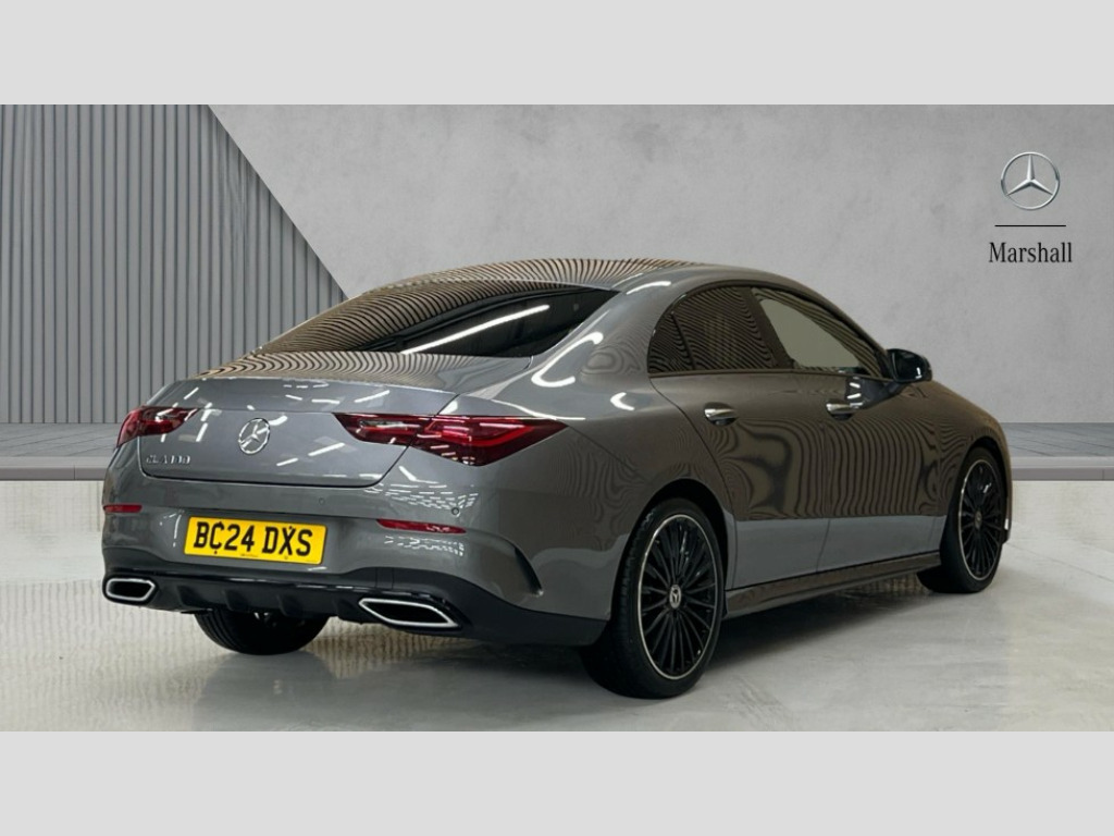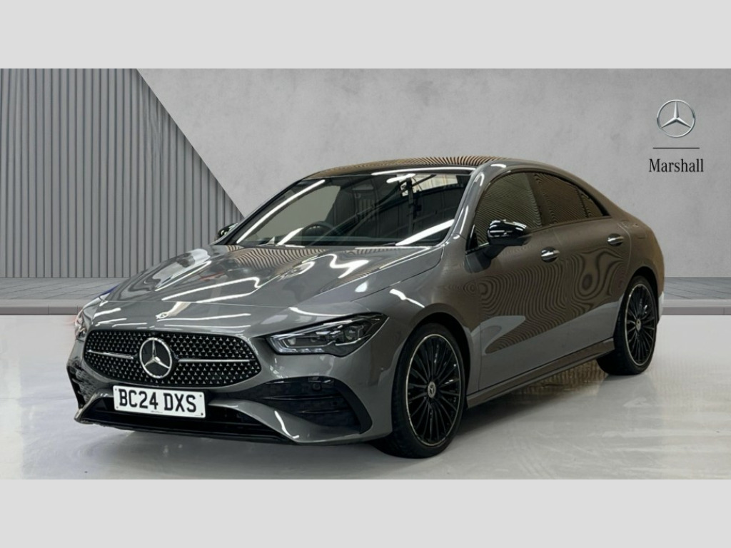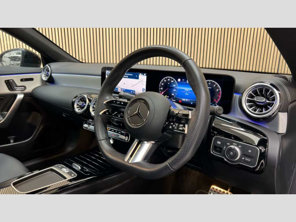 Mercedes-Benz CLA Class CLA 180 AMG Line Premium Plus 4dr Tip Auto 10.25 inch Instrument display with digital cockpit, 10.25 inch touchscreen central media display, Active lane keeping assist, Attention assist - Monitors steering behaviour and long journey fatigue, Bluetooth connection, Car wash mode, Cruise control with limiter, Direct steer system, DYNAMIC SELECT with a choice of driving modes (ECO, Comfort, Sport and Individual), ECO start/stop function, Fingerprint sensor, Fluid level warning indicator for fuel, oil, coolant and washer fluid, Hard-disk navigation, Head up Display, Hey Mercedes Voice activation, Lamp failure indicator, MBUX augmented reality for navigation, Mercedes me connect including emergency call system, accident recovery, breakdown and maintenance management, Mercedes me remote services, Outside temperature gauge, Owners manual in English, Pre-installation of private car share, Radio aerial integrated into front and rear windshields, Service indicator (ASSYST), Smartphone integration with Apple CarPlay and Android auto, Traffic sign assist, Trip computer in multifunction display with current consumption indicator, Wireless charging in the front centre console, Comfort suspension with ride height lowering, Rear axle multi-link, Burmester lettering on the speakers, Burmester surround sound system (710W) with dolby atmos, speakers - 1 central, 1 woofer, 1 tweeter, 1 subwoofer with 60W, 2 in C pillar, DAB digital radio tuner, MBUX multimedia system, Pre installation for Mercedes Benz Link, Adaptive brake lights, AMG body styling with AMG front apron and rear apron and visible exhaust tailpipe in chrome trim elements, Body colour door handles, Electric panoramic sunroof with automatic tilt and convenience closing fuinctions, rain sensor auto closing and electronic roller sunblind, Electric windows, Electrically adjustable and heated door mirrors with integrated LED indicators, Exhaust system with 2 Visible tailpipe trim elements and rear apron with trim in chrome, Hand free access, Headlamp assist automatic headlamp activation, Heated glass rear windscreen + timer control, High level LED third brake light, Integrated LED daytime running lights, Interior mirror with black reading lamps and frameless, LED tail lamp, Multibeam LED headlamps with adaptive highbeam assist plus, Privacy glass with dark tinting on rear side windows and rear window, Radiator grille with Mercedes-Benz pattern in chrome and central Mercedes star, single louvre in high-gloss black with chrome inserts, Rain sensing windscreen wipers with two sensitivity settings, Rear boot, Rear fog lamp, Rear side wing doors, Variable front intermittent wipers, 3 seat bench in 2nd row, 3 twin spoke flattened multifunction steering wheel in nappa leather - horizontal twin spoke in high gloss black, vertical twin spoke in silver chrome, 40:20:40 split folding rear seat backrests, Air conditioning - Two zone thermotronic luxury automatic climate control with display, Air vents with surround in silver chrome, Automatic child seat recognition sensor, Black roof lining, Brushed stainless steel sports pedals with rubber studs, Electrically adjustable front memory seats including 4 way lumbar support, Floor mats with stitched AMG lettering, Fluorescent jacket, Front centre armrest with stowage, Galvanished gear shift paddles in silver chrome, Illuminated front door sills with Mercedes Benz lettering and changeable cover, Interior lighting - 64 colour Ambient lighting, Luggage net on driver/front passenger seat backrest, Manually height and reach adjustable steering column, Rear armrest with two integral cup holders for drinks, Rear head restraints, Single front passenger seat, Sport seats with fixed head restraints, Stowage compartment in centre console with retractable cover, Sunvisors with illuminated vanity mirrors, Twin front cupholders, Two outer rear seat isofix and top tether child seat fixing points, Keyless go comfort pack - CLA, Light and sight pack - CLA, Mirror pack - CLA, Night package - CLA, Parking pack with 360 degree camera - CLA, Seat comfort pack - CLA, USB package plus - CLA, Winter pack - CLA, Active bonnet pedestrain safety measure which detects an impact and raises bonnet by 65mm, Adaptive brake assist with hold function and hill start assist, Anti lock braking system (ABS) with brake assist, Black seat belts, Bonnet with power domes, Brake calipers with Mercedes-Benz lettering, Brake pad wear warning indicator, Childproof locks manually operated for rear doors and electrically operated for rear power windows, Crash responsive emergency lighting, Driver and front passenger head and sidebags, Driver and front passenger windowbags, Drivers knee airbag, Dual stage driver and front passenger airbags, Electric parking brake, Electronic stability programme with acceleration skid control, ESP curve dynamic assist, Exit warning, Front and rear seatbelt reminder, Front passenger seat occupancy sensor, Perforated front brake discs, Sports braking system, Three point rear seat belts, Tyre pressure monitoring system, Warning triangle and first aid kit, Alarm system with immobiliser and interior protection -Thatcham category 1, Guard 360 deg vehicle protection - tow away protection with visual, acoustic warning, interior monitoring, preinstallation for parking damage, Remote central locking and crash sensor with emergency opening function, Light aluminium with longitudinal grain interior trim, 19" AMG multi-spoke black painted light alloy wheels with high sheen rim finish, Summer tyres, Tirefit tyre sealant kit