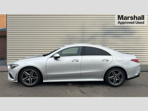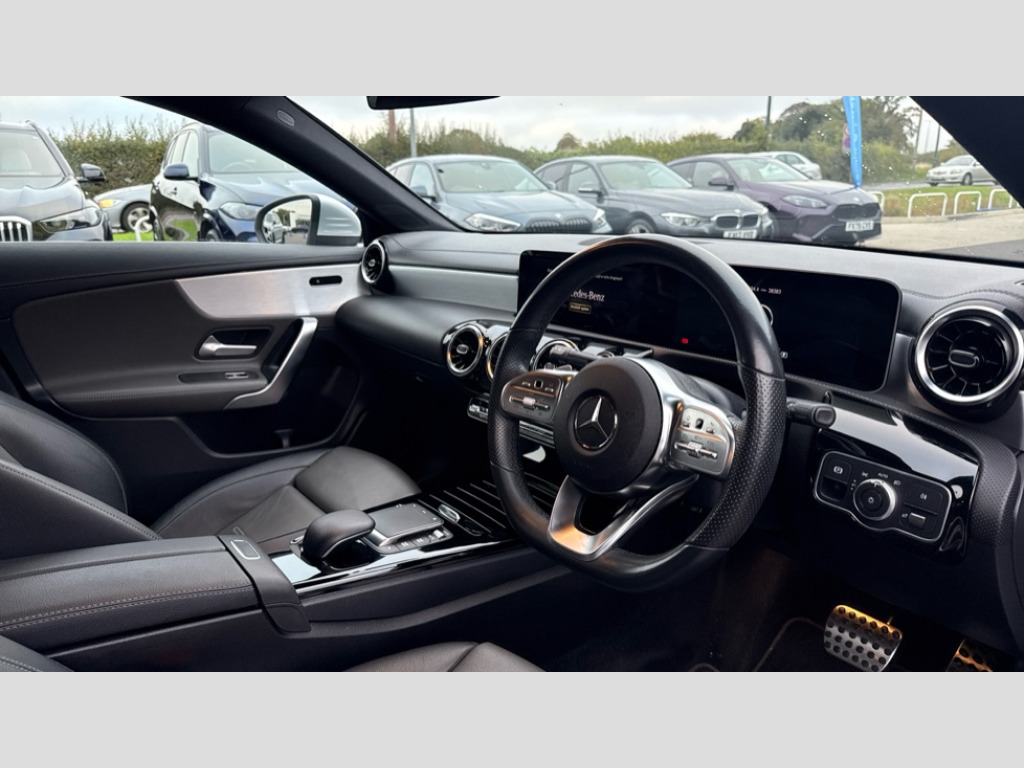Mercedes-Benz CLA Class CLA 200 AMG Line 4dr Tip Auto 10.25 inch touchscreen central media display, 7 inch Instrument display with digital cockpit, Active lane keeping assist, Attention assist - Monitors steering behaviour and long journey fatigue, Cruise control with limiter, Direct steer system with speed sensitive power steering, Dual bluetooth interfaces, DYNAMIC SELECT with a choice of driving modes (ECO, Comfort, Sport, Sport+ and Individual), ECO start/stop function, Fluid level warning indicator for fuel, oil, coolant and washer fluid, Hard-disk navigation, Hey Mercedes Voice activation, Lamp failure indicator, Mercedes me connect including emergency call system, accident recovery, breakdown and maintenance management, Outside temperature gauge, Owners manual and service booklet in English, Pre-installation for Vehicle Monitoring, Pre-installation for Vehicle Setup, Pre-installation of private car share, Preinstallation for Mercedes Benz link, Radio aerial integrated into front and rear windshields, Service indicator (ASSYST), Smartphone integration with Apple CarPlay and Android auto, Speed limit assist, Trip computer in multifunction display with current consumption indicator, Wireless charging, 7G-DCT 7 speed automatic transmission, Lowered comfort suspension, Rear axle multi-link, Sporty engine sound system, DAB digital radio tuner, MBUX multimedia system with DAB digital radio and touchpad including satellite navigation, Mercedes Benz sound system (100 W) with 6 speakers, USB (type C) ports (2) in stowage compartment and 1 in front of centre console, Adaptive brake lights, AMG body styling with AMG front apron and rear apron and visible exhaust tailpipe in chrome trim elements, AMG bodystyling side skirts, Body colour bumpers, Body colour door handles, Chrome beltline strips, Diamond radiator grille pins in chrome with silver painted louvres and chrome insert, Electric windows, Electrically adjustable and heated door mirrors with integrated LED indicators, Exhaust system with 2 Visible tailpipe trim elements and rear apron with trim in chrome, Headlamp assist automatic headlamp activation, Heated glass rear windscreen + timer control, High level LED third brake light, LED high performance headlamps with integrated LED daytime running lights, LED tail lamp, Privacy glass with dark tinting on rear side windows and rear window, Rain sensing windscreen wipers with two sensitivity settings, Rear fog lamp, Vehicle Monitoring, Vehicle Setup, Window line trim strip in chrome, 3 spoke flattened bottom nappa leather multifunction steering wheel with perforated leather in grip area, 40:20:40 split folding rear seat backrests, Air conditioning - Two zone thermotronic luxury automatic climate control with display, Air vents with surround in silver chrome, Automatic child seat recognition sensor, Black roof lining, Brushed stainless steel sports pedals with rubber studs, Floor mats with stitched AMG lettering, Front centre armrest with stowage, Front door sills with Mercedes Benz lettering, Front seat cushion length adjustment, Galvanished gear shift paddles on steering wheel, Heated front seats, Illuminated glove compartment stowage, Luggage net on driver/front passenger seat backrest, Manually adjustable front seats, Manually height and reach adjustable steering column, Rear head restraints, Rear interior lamp, Spectacles compartment for driver, Sport seats with fixed head restraints, Stowage compartment in centre console with retractable cover, Sunvisors with illuminated vanity mirrors, Touchpad on center console, Twin front cupholders, Two outer rear seat isofix and top tether child seat fixing points, Light and sight pack - CLA, Mirror pack - CLA, Parking package - CLA, Seat comfort pack - CLA, Active bonnet pedestrain safety measure which detects an impact and raises bonnet by 65mm, Active brake assist includes forward collision warning system with autonomous braking, Adaptive brake assist with hold function and hill start assist, Anti-lock braking system (ABS), Black seat belts, Bonnet with power domes, Brake pad wear warning indicator, Childproof locks manually operated for rear doors and electrically operated for rear power windows, Crash responsive emergency lighting, Driver and front passenger head and sidebags, Driver and front passenger windowbags, Drivers knee airbag, Dual stage driver and front passenger airbags, Electric parking brake, Electronic stability programme with acceleration skid control, ESP curve dynamic assist, Front and rear seatbelt reminder, Front brake callipers with Mercedes Benz lettering, Front passenger seat occupancy sensor, Three point rear seat belts, Tyre pressure monitoring system, Warning triangle and first aid kit, Alarm system with immobiliser and interior protection -Thatcham category 1, Keyless Go starting function, Remote central locking and crash sensor with emergency opening function, Light aluminium with longitudinal grain interior trim, 18" 5 twin spoke design alloy wheels painted in titanium grey with high sheen finish, Summer tyres, Tirefit tyre sealant kit