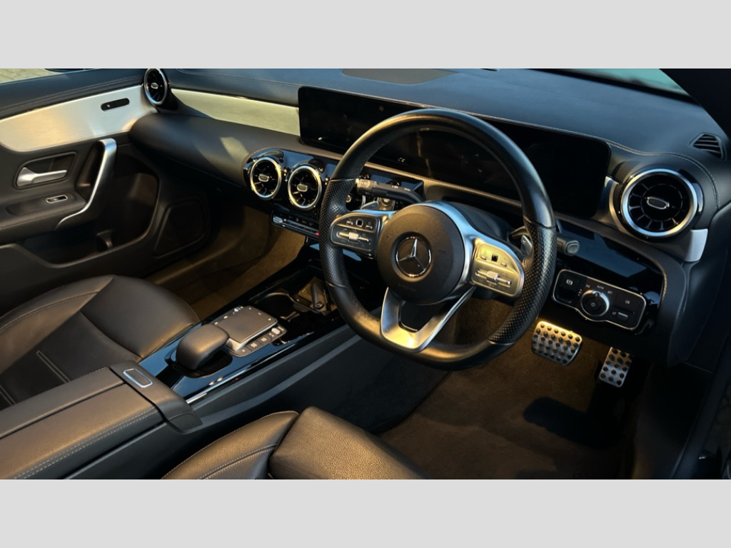 Mercedes-Benz CLA Class CLA 200 AMG Line 4dr Tip Auto 10.25 inch touchscreen central media display, 7 inch Instrument display with digital cockpit, Active lane keeping assist, Attention assist - Monitors steering behaviour and long journey fatigue, Bluetooth connection, Car wash mode, Cruise control with limiter, Direct steer system with speed sensitive power steering, DYNAMIC SELECT with a choice of driving modes (ECO, Comfort, Sport and Individual), ECO start/stop function, Fluid level warning indicator for fuel, oil, coolant and washer fluid, Hard-disk navigation, Hey Mercedes Voice activation, Lamp failure indicator, Mercedes me connect including emergency call system, accident recovery, breakdown and maintenance management, Mercedes me remote services, Outside temperature gauge, Owners manual and service booklet in English, Pre-installation of private car share, Preinstallation for Mercedes Benz link, Radio aerial integrated into front and rear windshields, Service indicator (ASSYST), Smartphone integration with Apple CarPlay and Android auto, Speed limit assist, Trip computer in multifunction display with current consumption indicator, 7G-DCT 7 speed automatic transmission, Lowered comfort suspension, Rear axle multi-link, DAB digital radio tuner, MBUX multimedia system with DAB digital radio and touchpad including satellite navigation, Mercedes Benz sound system (100 W) with 6 speakers, USB (type C) ports (2) in stowage compartment and 1 in front of centre console, Adaptive brake lights, AMG body styling with AMG front apron and rear apron and visible exhaust tailpipe in chrome trim elements, AMG bodystyling side skirts, Body colour bumpers, Body colour door handles, Chrome beltline strips, Chrome weather strip, Diamond radiator grille pins in chrome with silver painted louvres and chrome insert, Electric windows, Electrically adjustable and heated door mirrors with integrated LED indicators, Exhaust system with 2 Visible tailpipe trim elements and rear apron with trim in chrome, Headlamp assist automatic headlamp activation, Heated glass rear windscreen + timer control, High level LED third brake light, Interior mirror with black reading lamps and frameless, LED high performance headlamps with integrated LED daytime running lights, LED tail lamp, Privacy glass with dark tinting on rear side windows and rear window, Rain sensing windscreen wipers with two sensitivity settings, Rear fog lamp, Window line trim strip in chrome, 3 spoke flattened bottom nappa leather multifunction steering wheel with perforated leather in grip area, 40:20:40 split folding rear seat backrests, Air conditioning - Two zone thermotronic luxury automatic climate control with display, Air vents with surround in silver chrome, Automatic child seat recognition sensor, Black roof lining, Brushed stainless steel sports pedals with rubber studs, Floor mats with stitched AMG lettering, Front centre armrest with stowage, Front door sills with Mercedes Benz lettering, Galvanished gear shift paddles on steering wheel, Heated front seats, Illuminated glove compartment stowage, Luggage net on driver/front passenger seat backrest, Manually adjustable front seats, Manually height and reach adjustable steering column, Rear head restraints, Sport seats with fixed head restraints, Stowage compartment in centre console with retractable cover, Sunvisors with illuminated vanity mirrors, Touchpad on center console, Twin front cupholders, Two outer rear seat isofix and top tether child seat fixing points, Light and sight pack - CLA, Mirror pack - CLA, Parking package - CLA, Seat comfort pack - CLA, Active bonnet pedestrain safety measure which detects an impact and raises bonnet by 65mm, Active brake assist includes forward collision warning system with autonomous braking, Adaptive brake assist with hold function and hill start assist, Anti-lock braking system (ABS), Black seat belts, Bonnet with power domes, Brake pad wear warning indicator, Childproof locks manually operated for rear doors and electrically operated for rear power windows, Crash responsive emergency lighting, Driver and front passenger head and sidebags, Driver and front passenger windowbags, Drivers knee airbag, Dual stage driver and front passenger airbags, Electric parking brake, Electronic stability programme with acceleration skid control, ESP curve dynamic assist, Front and rear seatbelt reminder, Front passenger seat occupancy sensor, Three point rear seat belts, Tyre pressure monitoring system, Warning triangle and first aid kit, Keyless Go starting function, Remote central locking and crash sensor with emergency opening function, Urban guard vehicle protection system with immobiliser and interior protection, Light aluminium with longitudinal grain interior trim, 18" 5 twin spoke design alloy wheels painted in titanium grey with high sheen finish, Summer tyres, Tirefit tyre sealant kit
