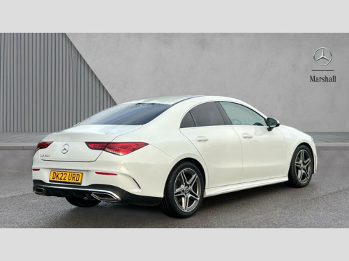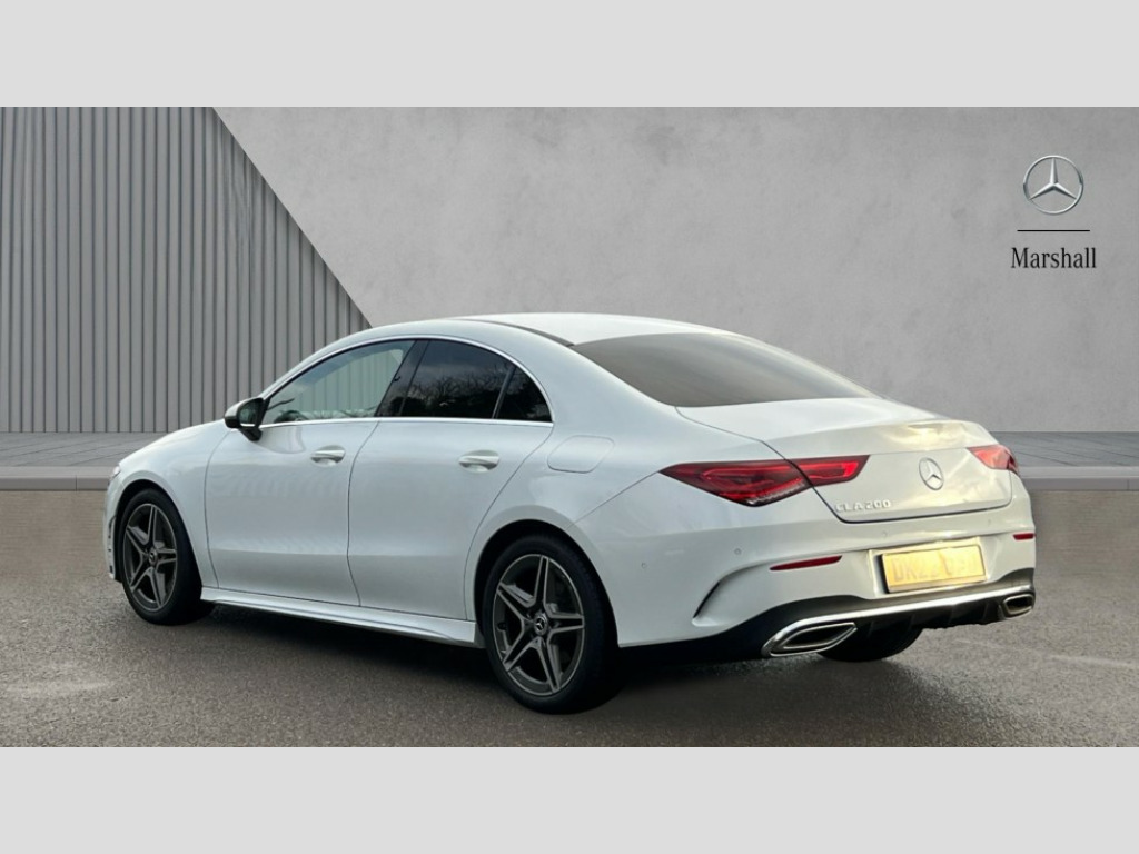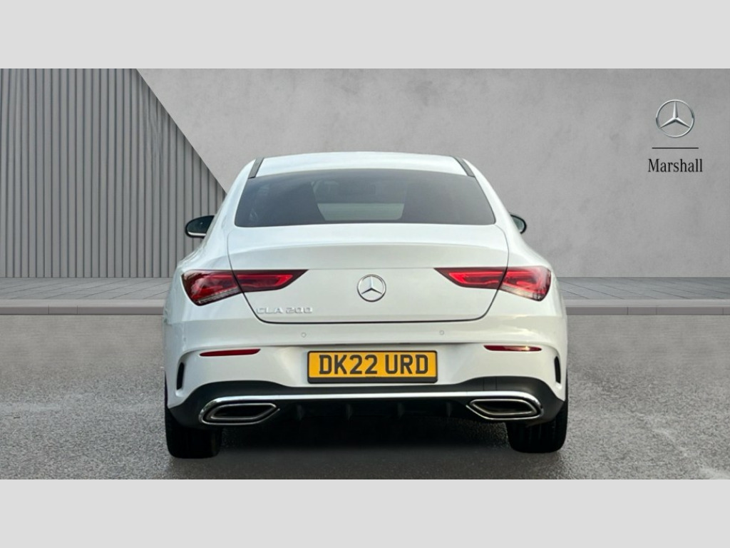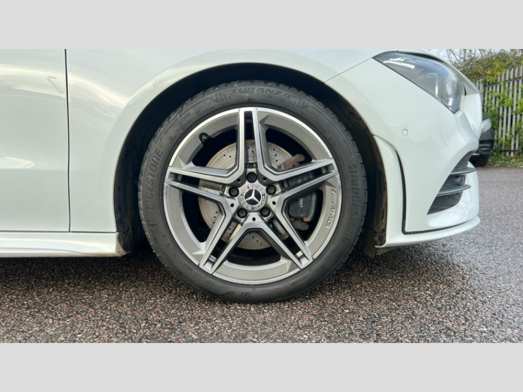 Mercedes-Benz CLA Class CLA 200 AMG Line 4dr Tip Auto 10.25 inch touchscreen central media display, 7 inch Instrument display with digital cockpit, Active lane keeping assist, Attention assist - Monitors steering behaviour and long journey fatigue, Bluetooth connection, Car wash mode, Cruise control with limiter, Direct steer system with speed sensitive power steering, DYNAMIC SELECT with a choice of driving modes (ECO, Comfort, Sport and Individual), ECO start/stop function, Fluid level warning indicator for fuel, oil, coolant and washer fluid, Hard-disk navigation, Hey Mercedes Voice activation, Lamp failure indicator, Mercedes me connect including emergency call system, accident recovery, breakdown and maintenance management, Mercedes me remote services, Outside temperature gauge, Owners manual and service booklet in English, Pre-installation of private car share, Preinstallation for Mercedes Benz link, Radio aerial integrated into front and rear windshields, Service indicator (ASSYST), Smartphone integration with Apple CarPlay and Android auto, Speed limit assist, Trip computer in multifunction display with current consumption indicator, 7G-DCT 7 speed automatic transmission, Lowered comfort suspension, Rear axle multi-link, DAB digital radio tuner, MBUX multimedia system with DAB digital radio and touchpad including satellite navigation, Mercedes Benz sound system (100 W) with 6 speakers, USB (type C) ports (2) in stowage compartment and 1 in front of centre console, Adaptive brake lights, AMG body styling with AMG front apron and rear apron and visible exhaust tailpipe in chrome trim elements, AMG bodystyling side skirts, Body colour bumpers, Body colour door handles, Chrome beltline strips, Chrome weather strip, Diamond radiator grille pins in chrome with silver painted louvres and chrome insert, Electric windows, Electrically adjustable and heated door mirrors with integrated LED indicators, Exhaust system with 2 Visible tailpipe trim elements and rear apron with trim in chrome, Headlamp assist automatic headlamp activation, Heated glass rear windscreen + timer control, High level LED third brake light, Interior mirror with black reading lamps and frameless, LED high performance headlamps with integrated LED daytime running lights, LED tail lamp, Privacy glass with dark tinting on rear side windows and rear window, Rain sensing windscreen wipers with two sensitivity settings, Rear boot, Rear fog lamp, Rear side wing doors, Window line trim strip in chrome, 3 seat bench in 2nd row, 3 spoke flattened bottom nappa leather multifunction steering wheel with perforated leather in grip area, 40:20:40 split folding rear seat backrests, Air conditioning - Two zone thermotronic luxury automatic climate control with display, Air vents with surround in silver chrome, Automatic child seat recognition sensor, Black roof lining, Brushed stainless steel sports pedals with rubber studs, Floor mats with stitched AMG lettering, Front centre armrest with stowage, Front door sills with Mercedes Benz lettering, Galvanished gear shift paddles on steering wheel, Heated front seats, Illuminated glove compartment stowage, Luggage net on driver/front passenger seat backrest, Manually adjustable front seats, Manually height and reach adjustable steering column, Rear head restraints, Single front passenger seat, Sport seats with fixed head restraints, Stowage compartment in centre console with retractable cover, Sunvisors with illuminated vanity mirrors, Touchpad on center console, Twin front cupholders, Two outer rear seat isofix and top tether child seat fixing points, Light and sight pack - CLA, Mirror pack - CLA, Parking package - CLA, Seat comfort pack - CLA, Active bonnet pedestrain safety measure which detects an impact and raises bonnet by 65mm, Active brake assist includes forward collision warning system with autonomous braking, Adaptive brake assist with hold function and hill start assist, Anti-lock braking system (ABS), Black seat belts, Bonnet with power domes, Brake pad wear warning indicator, Childproof locks manually operated for rear doors and electrically operated for rear power windows, Crash responsive emergency lighting, Driver and front passenger head and sidebags, Driver and front passenger windowbags, Drivers knee airbag, Dual stage driver and front passenger airbags, Electric parking brake, Electronic stability programme with acceleration skid control, ESP curve dynamic assist, Front and rear seatbelt reminder, Front passenger seat occupancy sensor, Three point rear seat belts, Tyre pressure monitoring system, Warning triangle and first aid kit, Keyless Go starting function, Remote central locking and crash sensor with emergency opening function, Urban guard vehicle protection system with immobiliser and interior protection, Light aluminium with longitudinal grain interior trim, 18" 5 twin spoke design alloy wheels painted in titanium grey with high sheen finish, Summer tyres, Tirefit tyre sealant kit