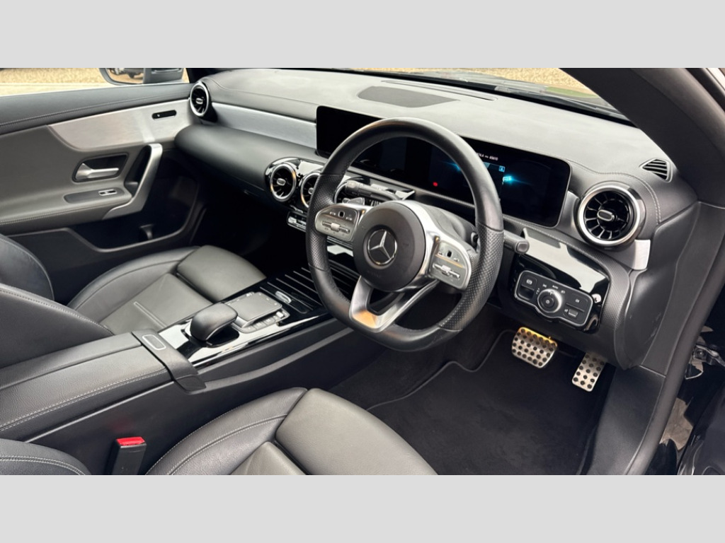 Mercedes-Benz CLA Class CLA 200 AMG Line 4dr Tip Auto 10.25 inch touchscreen central media display, 7 inch Instrument display with digital cockpit, Active lane keeping assist, Attention assist - Monitors steering behaviour and long journey fatigue, Cruise control with limiter, Direct steer system with speed sensitive power steering, Dual bluetooth interfaces, DYNAMIC SELECT with a choice of driving modes (ECO, Comfort, Sport, Sport+ and Individual), ECO start/stop function, Fluid level warning indicator for fuel, oil, coolant and washer fluid, Hard-disk navigation, Hey Mercedes Voice activation, Lamp failure indicator, Mercedes me connect including emergency call system, accident recovery, breakdown and maintenance management, Outside temperature gauge, Owners manual and service booklet in English, Pre-installation for Vehicle Monitoring, Pre-installation for Vehicle Setup, Pre-installation of private car share, Preinstallation for Mercedes Benz link, Radio aerial integrated into front and rear windshields, Service indicator (ASSYST), Smartphone integration with Apple CarPlay and Android auto, Speed limit assist, Trip computer in multifunction display with current consumption indicator, Wireless charging, 7G-DCT 7 speed automatic transmission, Lowered comfort suspension, Rear axle multi-link, Sporty engine sound system, DAB digital radio tuner, MBUX multimedia system with DAB digital radio and touchpad including satellite navigation, Mercedes Benz sound system (100 W) with 6 speakers, USB (type C) ports (2) in stowage compartment and 1 in front of centre console, Adaptive brake lights, AMG body styling with AMG front apron and rear apron and visible exhaust tailpipe in chrome trim elements, AMG bodystyling side skirts, Body colour bumpers, Body colour door handles, Chrome beltline strips, Diamond radiator grille pins in chrome with silver painted louvres and chrome insert, Electric windows, Electrically adjustable and heated door mirrors with integrated LED indicators, Exhaust system with 2 Visible tailpipe trim elements and rear apron with trim in chrome, Headlamp assist automatic headlamp activation, Heated glass rear windscreen + timer control, High level LED third brake light, LED high performance headlamps with integrated LED daytime running lights, LED tail lamp, Privacy glass with dark tinting on rear side windows and rear window, Rain sensing windscreen wipers with two sensitivity settings, Rear fog lamp, Vehicle Monitoring, Vehicle Setup, Window line trim strip in chrome, 3 spoke flattened bottom nappa leather multifunction steering wheel with perforated leather in grip area, 40:20:40 split folding rear seat backrests, Air conditioning - Two zone thermotronic luxury automatic climate control with display, Air vents with surround in silver chrome, Automatic child seat recognition sensor, Black roof lining, Brushed stainless steel sports pedals with rubber studs, Floor mats with stitched AMG lettering, Front centre armrest with stowage, Front door sills with Mercedes Benz lettering, Front seat cushion length adjustment, Galvanished gear shift paddles on steering wheel, Heated front seats, Illuminated glove compartment stowage, Luggage net on driver/front passenger seat backrest, Manually adjustable front seats, Manually height and reach adjustable steering column, Rear head restraints, Rear interior lamp, Spectacles compartment for driver, Sport seats with fixed head restraints, Stowage compartment in centre console with retractable cover, Sunvisors with illuminated vanity mirrors, Touchpad on center console, Twin front cupholders, Two outer rear seat isofix and top tether child seat fixing points, Light and sight pack - CLA, Mirror pack - CLA, Parking package - CLA, Seat comfort pack - CLA, Active bonnet pedestrain safety measure which detects an impact and raises bonnet by 65mm, Active brake assist includes forward collision warning system with autonomous braking, Adaptive brake assist with hold function and hill start assist, Anti-lock braking system (ABS), Black seat belts, Bonnet with power domes, Brake pad wear warning indicator, Childproof locks manually operated for rear doors and electrically operated for rear power windows, Crash responsive emergency lighting, Driver and front passenger head and sidebags, Driver and front passenger windowbags, Drivers knee airbag, Dual stage driver and front passenger airbags, Electric parking brake, Electronic stability programme with acceleration skid control, ESP curve dynamic assist, Front and rear seatbelt reminder, Front brake callipers with Mercedes Benz lettering, Front passenger seat occupancy sensor, Three point rear seat belts, Tyre pressure monitoring system, Warning triangle and first aid kit, Alarm system with immobiliser and interior protection -Thatcham category 1, Keyless Go starting function, Remote central locking and crash sensor with emergency opening function, Light aluminium with longitudinal grain interior trim, 18" 5 twin spoke design alloy wheels painted in titanium grey with high sheen finish, Summer tyres, Tirefit tyre sealant kit