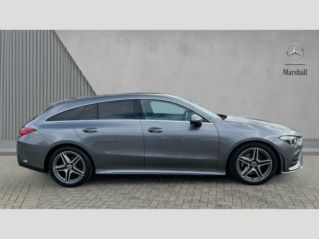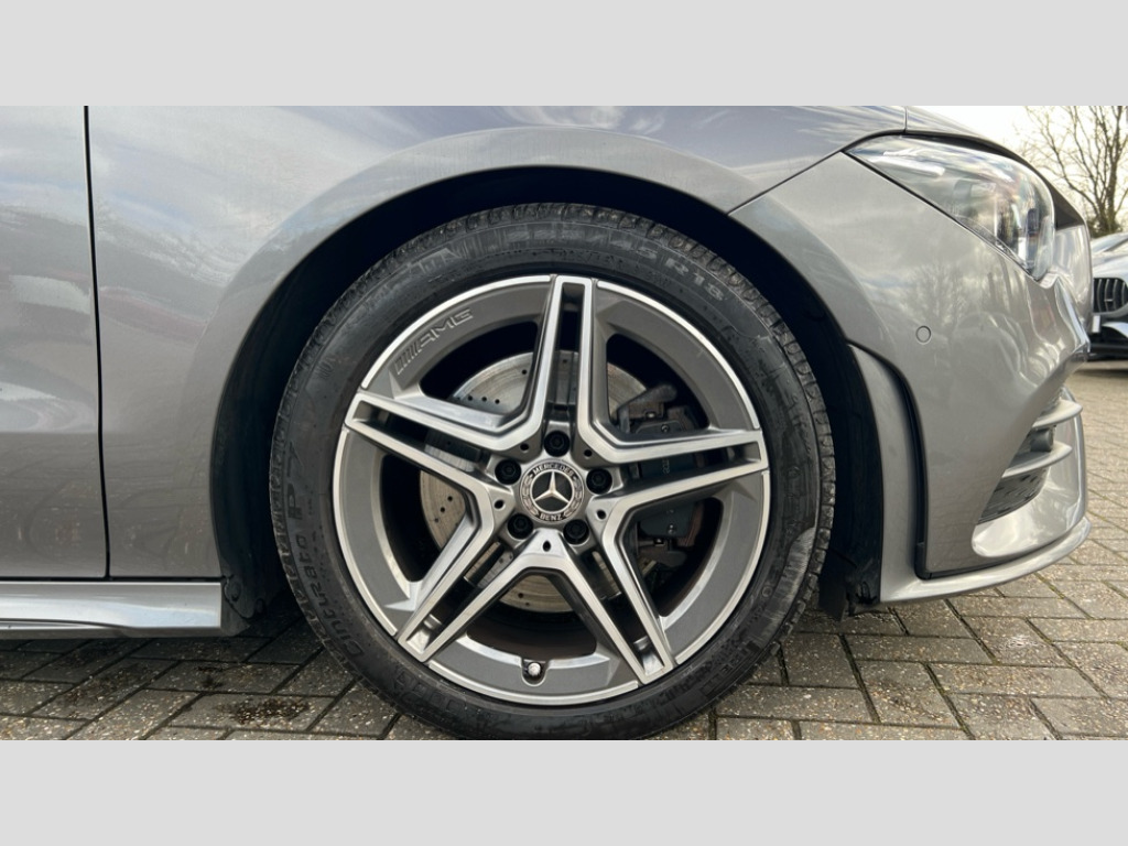 Mercedes-Benz CLA Class CLA 200 AMG Line 5dr Tip Auto 10.25 inch touchscreen central media display, 7 inch Instrument display with digital cockpit, Active lane keeping assist, Attention assist - Monitors steering behaviour and long journey fatigue, Bluetooth connection, Car wash mode, Cruise control with limiter, Direct steer system with speed sensitive power steering, DYNAMIC SELECT with a choice of driving modes (ECO, Comfort, Sport and Individual), ECO start/stop function, Fluid level warning indicator for fuel, oil, coolant and washer fluid, Hard-disk navigation, Hey Mercedes Voice activation, Lamp failure indicator, Mercedes me connect including emergency call system, accident recovery, breakdown and maintenance management, Mercedes me remote services, Outside temperature gauge, Owners manual and service booklet in English, Pre-installation of private car share, Preinstallation for Mercedes Benz link, Radio aerial integrated into front and rear windshields, Service indicator (ASSYST), Smartphone integration with Apple CarPlay and Android auto, Speed limit assist, Trip computer in multifunction display with current consumption indicator, 7G-DCT 7 speed automatic transmission, Lowered comfort suspension, Rear axle multi-link, DAB digital radio tuner, MBUX multimedia system with DAB digital radio and touchpad including satellite navigation, Mercedes Benz sound system (100 W) with 6 speakers, USB (type C) ports (2) in stowage compartment and 1 in front of centre console, Adaptive brake lights, AMG body styling with AMG front apron and rear apron and visible exhaust tailpipe in chrome trim elements, AMG bodystyling side skirts, Body colour bumpers, Body colour door handles, Chrome beltline strips, Chrome weather strip, Diamond radiator grille pins in chrome with silver painted louvres and chrome insert, Electric windows, Electrically adjustable and heated door mirrors with integrated LED indicators, Exhaust system with 2 Visible tailpipe trim elements and rear apron with trim in chrome, Headlamp assist automatic headlamp activation, Heated glass rear windscreen + timer control, High level LED third brake light, Interior mirror with black reading lamps and frameless, LED high performance headlamps with integrated LED daytime running lights, LED tail lamp, Privacy glass with dark tinting on rear side windows and rear window, Rain sensing windscreen wipers with two sensitivity settings, Rear fog lamp, Rear side wing doors, Rear wiper, Window line trim strip in chrome, 3 seat bench in 2nd row, 3 spoke flattened bottom nappa leather multifunction steering wheel with perforated leather in grip area, 40:20:40 split folding rear seat backrests, Air conditioning - Two zone thermotronic luxury automatic climate control with display, Air vents with surround in silver chrome, Automatic child seat recognition sensor, Black roof lining, Brushed stainless steel sports pedals with rubber studs, Floor mats with stitched AMG lettering, Front centre armrest with stowage, Front door sills with Mercedes Benz lettering, Galvanished gear shift paddles on steering wheel, Heated front seats, Illuminated glove compartment stowage, Luggage net on driver/front passenger seat backrest, Manually adjustable front seats, Manually height and reach adjustable steering column, Rear head restraints, Single front passenger seat, Sport seats with fixed head restraints, Stowage compartment in centre console with retractable cover, Sunvisors with illuminated vanity mirrors, Touchpad on center console, Twin front cupholders, Two outer rear seat isofix and top tether child seat fixing points, Light and sight pack - CLA, Mirror pack - CLA, Parking package - CLA, Seat comfort pack - CLA, Active bonnet pedestrain safety measure which detects an impact and raises bonnet by 65mm, Active brake assist includes forward collision warning system with autonomous braking, Adaptive brake assist with hold function and hill start assist, Anti-lock braking system (ABS), Black seat belts, Bonnet with power domes, Brake pad wear warning indicator, Childproof locks manually operated for rear doors and electrically operated for rear power windows, Crash responsive emergency lighting, Driver and front passenger head and sidebags, Driver and front passenger windowbags, Drivers knee airbag, Dual stage driver and front passenger airbags, Electric parking brake, Electronic stability programme with acceleration skid control, ESP curve dynamic assist, Front and rear seatbelt reminder, Front passenger seat occupancy sensor, Three point rear seat belts, Tyre pressure monitoring system, Warning triangle and first aid kit, Keyless Go starting function, Remote central locking and crash sensor with emergency opening function, Urban guard vehicle protection system with immobiliser and interior protection, Light aluminium with longitudinal grain interior trim, 18" 5 twin spoke design alloy wheels painted in titanium grey with high sheen finish, Summer tyres, Tirefit tyre sealant kit