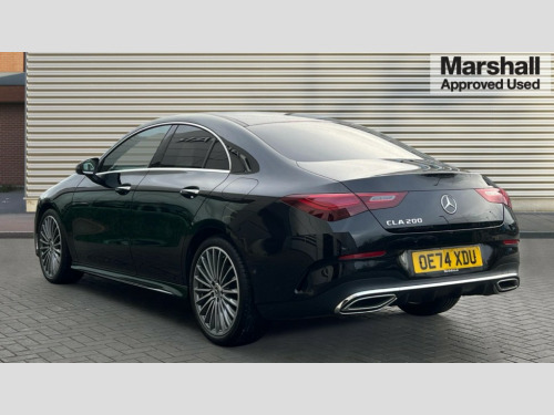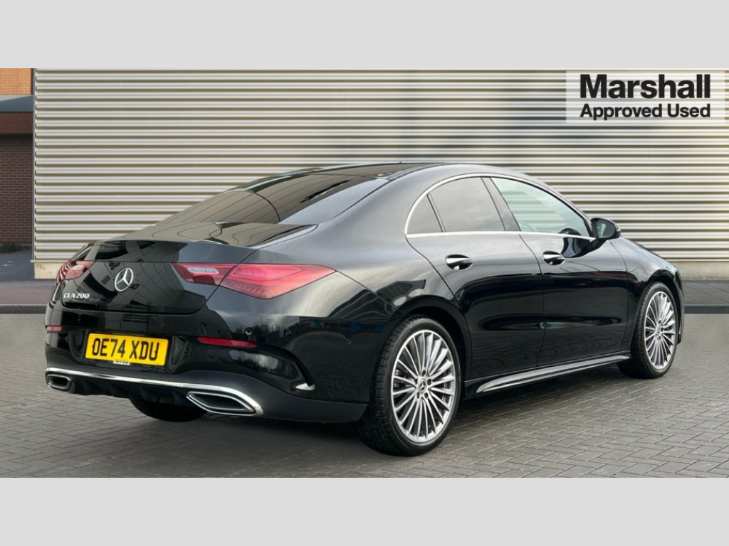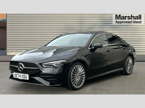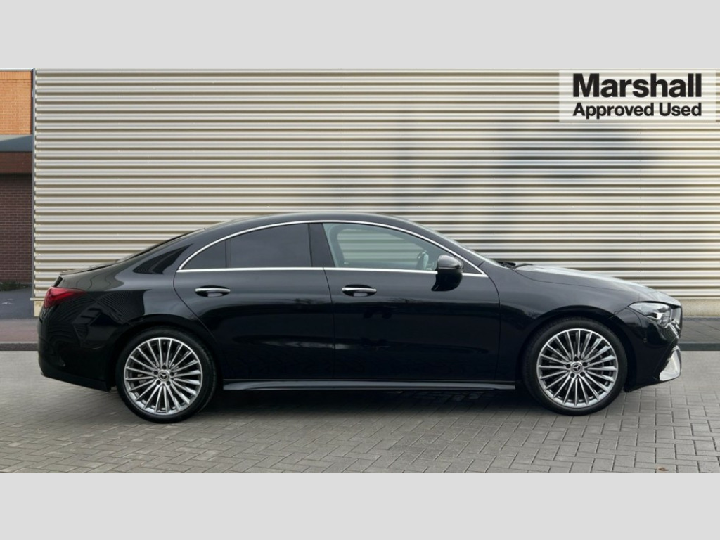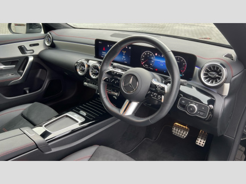 Mercedes-Benz CLA Class CLA 200 AMG Line Premium 4dr Tip Auto 10.25 inch Instrument display with digital cockpit, 10.25 inch touchscreen central media display, Active lane keeping assist, Attention assist - Monitors steering behaviour and long journey fatigue, Blind spot assist, Bluetooth connection, Car wash mode, Cruise control with limiter, Direct steer system, DYNAMIC SELECT with a choice of driving modes (ECO, Comfort, Sport and Individual), ECO start/stop function, Fingerprint sensor, Fluid level warning indicator for fuel, oil, coolant and washer fluid, Hard-disk navigation, Hey Mercedes Voice activation, Lamp failure indicator, Mercedes me connect including emergency call system, accident recovery, breakdown and maintenance management, Mercedes me remote services, Outside temperature gauge, Owners manual in English, Pre-installation of private car share, Radio aerial integrated into front and rear windshields, Service indicator (ASSYST), Smartphone integration with Apple CarPlay and Android auto, Speed limit assist, Trip computer in multifunction display with current consumption indicator, Wireless charging in the front centre console, Comfort suspension with ride height lowering, Rear axle multi-link, DAB digital radio tuner, MBUX multimedia system, Mercedes Benz advanced sound system (225 W) with 10 speakers, 1 central speaker, speakers on doors, a tweeter on door,one sub woofer + boost amplifier, Pre installation for Mercedes Benz Link, Adaptive brake lights, AMG body styling with AMG front apron and rear apron and visible exhaust tailpipe in chrome trim elements, Body colour door handles, Electric windows, Electrically adjustable and heated door mirrors with integrated LED indicators, Exhaust system with 2 Visible tailpipe trim elements and rear apron with trim in chrome, Hand free access, Headlamp assist automatic headlamp activation, Heated glass rear windscreen + timer control, High level LED third brake light, Interior mirror with black reading lamps and frameless, LED high performance headlamps with integrated LED daytime running lights and adaptive highbeam assist, LED tail lamp, Privacy glass with dark tinting on rear side windows and rear window, Radiator grille with Mercedes-Benz pattern in chrome and central Mercedes star, single louvre in high-gloss black with chrome inserts, Rain sensing windscreen wipers with two sensitivity settings, Rear boot, Rear fog lamp, Rear side wing doors, Variable front intermittent wipers, 3 seat bench in 2nd row, 3 twin spoke flattened multifunction steering wheel in nappa leather - horizontal twin spoke in high gloss black, vertical twin spoke in silver chrome, 40:20:40 split folding rear seat backrests, Air conditioning - Two zone thermotronic luxury automatic climate control with display, Air vents with surround in silver chrome, Artico man-made leather/Microcut microfibre upholstery, Automatic child seat recognition sensor, Black roof lining, Brushed stainless steel sports pedals with rubber studs, Electrically adjustable front memory seats including 4 way lumbar support, Floor mats with stitched AMG lettering, Fluorescent jacket, Front centre armrest with stowage, Galvanished gear shift paddles in silver chrome, Interior lighting - 64 colour Ambient lighting, Luggage net on driver/front passenger seat backrest, Manually height and reach adjustable steering column, Rear armrest with two integral cup holders for drinks, Rear head restraints, Single front passenger seat, Sport seats with fixed head restraints, Stowage compartment in centre console with retractable cover, Sunvisors with illuminated vanity mirrors, Twin front cupholders, Two outer rear seat isofix and top tether child seat fixing points, Keyless go comfort pack - CLA, Light and sight pack - CLA, Mirror pack - CLA, Night package - CLA, Parking pack with reversing camera - CLA, Seat comfort pack - CLA, USB package plus - CLA, Winter pack - CLA, Active bonnet pedestrain safety measure which detects an impact and raises bonnet by 65mm, Active brake assist includes forward collision warning system with autonomous braking, Adaptive brake assist with hold function and hill start assist, Anti lock braking system (ABS) with brake assist, Bonnet with power domes, Brake calipers with Mercedes-Benz lettering, Brake pad wear warning indicator, Childproof locks manually operated for rear doors and electrically operated for rear power windows, Crash responsive emergency lighting, Crystal grey seat belts, Driver and front passenger head and sidebags, Driver and front passenger windowbags, Drivers knee airbag, Dual stage driver and front passenger airbags, Electric parking brake, Electronic stability programme with acceleration skid control, ESP curve dynamic assist, Exit warning, Front and rear seatbelt reminder, Front passenger seat occupancy sensor, Perforated front brake discs, Sports braking system, Three point rear seat belts, Tyre pressure monitoring system, Warning triangle and first aid kit, Alarm system with immobiliser and interior protection -Thatcham category 1, Guard 360 deg vehicle protection - tow away protection with visual, acoustic warning, interior monitoring, preinstallation for parking damage, Remote central locking and crash sensor with emergency opening function, Light aluminium with longitudinal grain interior trim, 19" AMG 5 twin spoke light alloy wheels painted in high gloss black with high sheen finish, Summer tyres, Tirefit tyre sealant kit