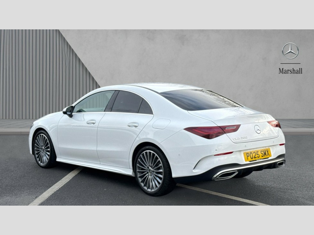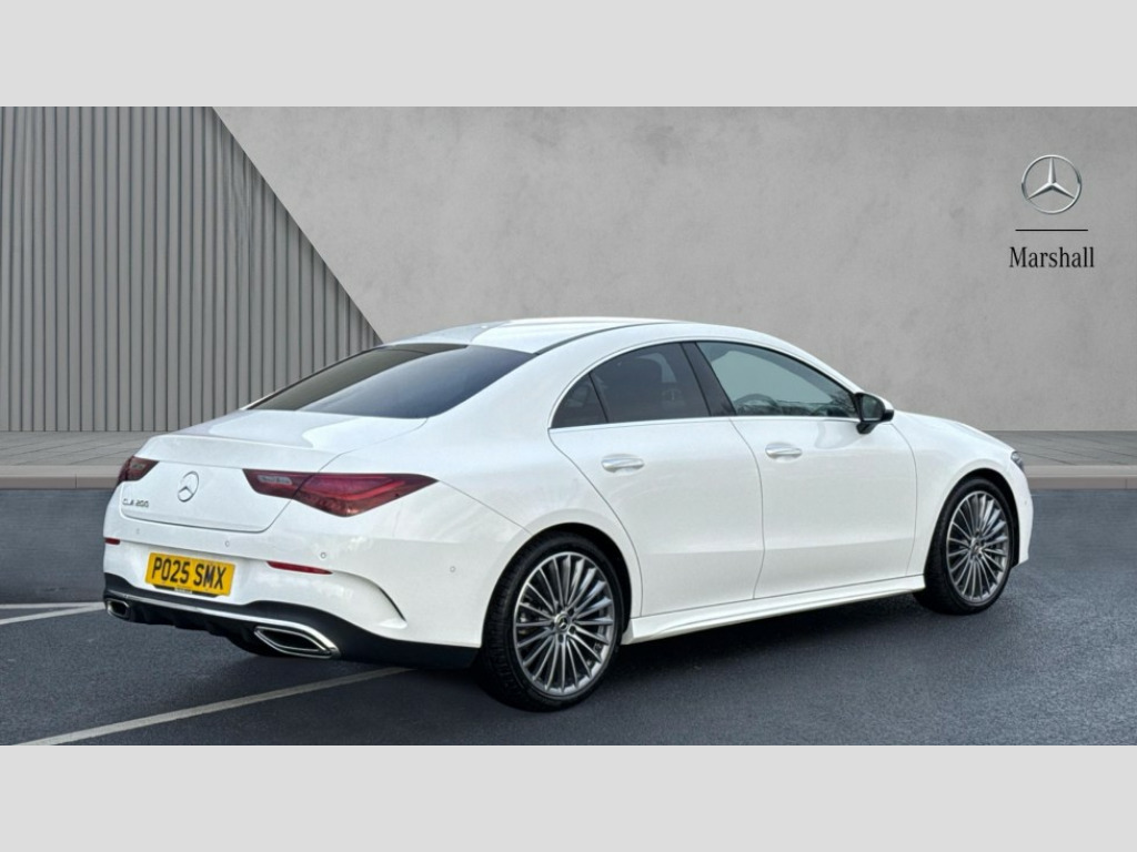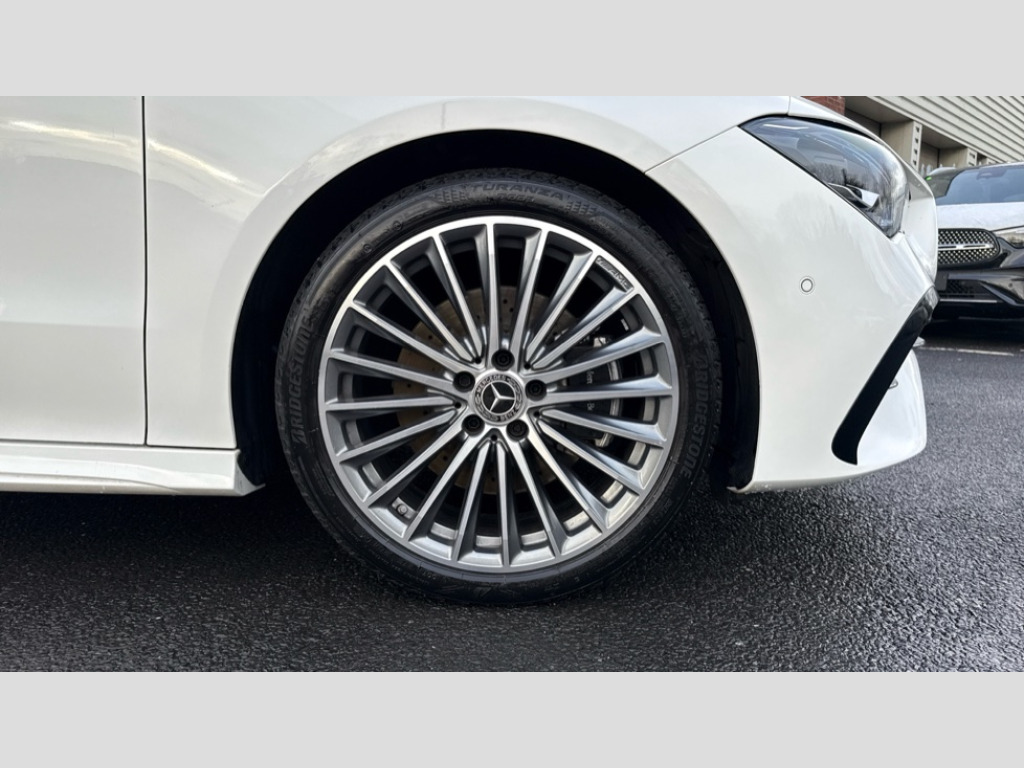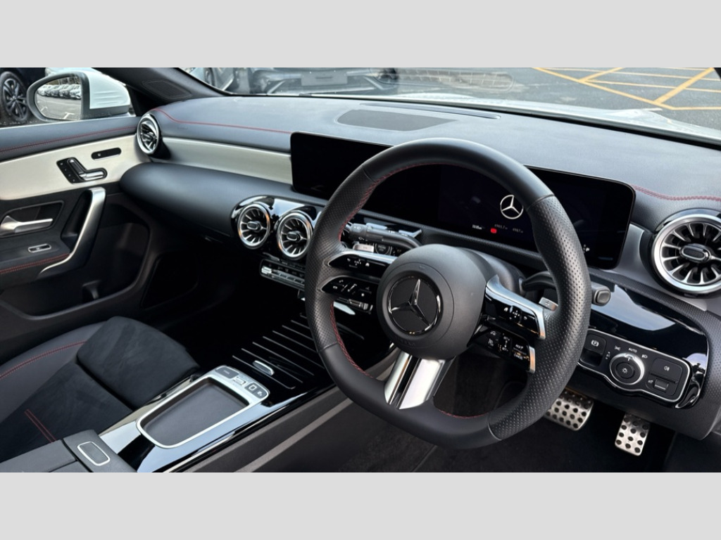 Mercedes-Benz CLA Class CLA 200 AMG Line Premium 4dr Tip Auto 10.25 inch Instrument display with digital cockpit, 10.25 inch touchscreen central media display, Active lane keeping assist, Attention assist - Monitors steering behaviour and long journey fatigue, Blind spot assist, Bluetooth connection, Car wash mode, Cruise control with limiter, Direct steer system, DYNAMIC SELECT with a choice of driving modes (ECO, Comfort, Sport and Individual), ECO start/stop function, Fingerprint sensor, Fluid level warning indicator for fuel, oil, coolant and washer fluid, Hard-disk navigation, Hey Mercedes Voice activation, Lamp failure indicator, Mercedes me connect including emergency call system, accident recovery, breakdown and maintenance management, Mercedes me remote services, Outside temperature gauge, Owners manual in English, Pre-installation of private car share, Radio aerial integrated into front and rear windshields, Service indicator (ASSYST), Smartphone integration with Apple CarPlay and Android auto, Speed limit assist, Trip computer in multifunction display with current consumption indicator, Wireless charging in the front centre console, Comfort suspension with ride height lowering, Rear axle multi-link, DAB digital radio tuner, MBUX multimedia system, Mercedes Benz advanced sound system (225 W) with 10 speakers, 1 central speaker, speakers on doors, a tweeter on door,one sub woofer + boost amplifier, Pre installation for Mercedes Benz Link, Adaptive brake lights, AMG body styling with AMG front apron and rear apron and visible exhaust tailpipe in chrome trim elements, Body colour door handles, Electric windows, Electrically adjustable and heated door mirrors with integrated LED indicators, Exhaust system with 2 Visible tailpipe trim elements and rear apron with trim in chrome, Hand free access, Headlamp assist automatic headlamp activation, Heated glass rear windscreen + timer control, High level LED third brake light, Interior mirror with black reading lamps and frameless, LED high performance headlamps with integrated LED daytime running lights and adaptive highbeam assist, LED tail lamp, Privacy glass with dark tinting on rear side windows and rear window, Radiator grille with Mercedes-Benz pattern in chrome and central Mercedes star, single louvre in high-gloss black with chrome inserts, Rain sensing windscreen wipers with two sensitivity settings, Rear boot, Rear fog lamp, Rear side wing doors, Variable front intermittent wipers, 3 seat bench in 2nd row, 3 twin spoke flattened multifunction steering wheel in nappa leather - horizontal twin spoke in high gloss black, vertical twin spoke in silver chrome, 40:20:40 split folding rear seat backrests, Air conditioning - Two zone thermotronic luxury automatic climate control with display, Air vents with surround in silver chrome, Artico man-made leather/Microcut microfibre upholstery, Automatic child seat recognition sensor, Black roof lining, Brushed stainless steel sports pedals with rubber studs, Electrically adjustable front memory seats including 4 way lumbar support, Floor mats with stitched AMG lettering, Fluorescent jacket, Front centre armrest with stowage, Galvanished gear shift paddles in silver chrome, Interior lighting - 64 colour Ambient lighting, Luggage net on driver/front passenger seat backrest, Manually height and reach adjustable steering column, Rear armrest with two integral cup holders for drinks, Rear head restraints, Single front passenger seat, Sport seats with fixed head restraints, Stowage compartment in centre console with retractable cover, Sunvisors with illuminated vanity mirrors, Twin front cupholders, Two outer rear seat isofix and top tether child seat fixing points, Keyless go comfort pack - CLA, Light and sight pack - CLA, Mirror pack - CLA, Night package - CLA, Parking pack with reversing camera - CLA, Seat comfort pack - CLA, USB package plus - CLA, Winter pack - CLA, Active bonnet pedestrain safety measure which detects an impact and raises bonnet by 65mm, Active brake assist includes forward collision warning system with autonomous braking, Adaptive brake assist with hold function and hill start assist, Anti lock braking system (ABS) with brake assist, Bonnet with power domes, Brake calipers with Mercedes-Benz lettering, Brake pad wear warning indicator, Childproof locks manually operated for rear doors and electrically operated for rear power windows, Crash responsive emergency lighting, Crystal grey seat belts, Driver and front passenger head and sidebags, Driver and front passenger windowbags, Drivers knee airbag, Dual stage driver and front passenger airbags, Electric parking brake, Electronic stability programme with acceleration skid control, ESP curve dynamic assist, Exit warning, Front and rear seatbelt reminder, Front passenger seat occupancy sensor, Perforated front brake discs, Sports braking system, Three point rear seat belts, Tyre pressure monitoring system, Warning triangle and first aid kit, Alarm system with immobiliser and interior protection -Thatcham category 1, Guard 360 deg vehicle protection - tow away protection with visual, acoustic warning, interior monitoring, preinstallation for parking damage, Remote central locking and crash sensor with emergency opening function, Light aluminium with longitudinal grain interior trim, 19" AMG 5 twin spoke light alloy wheels painted in high gloss black with high sheen finish, Summer tyres, Tirefit tyre sealant kit