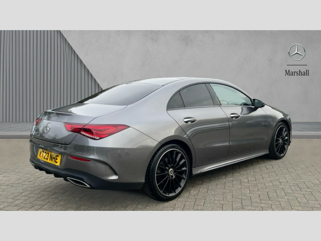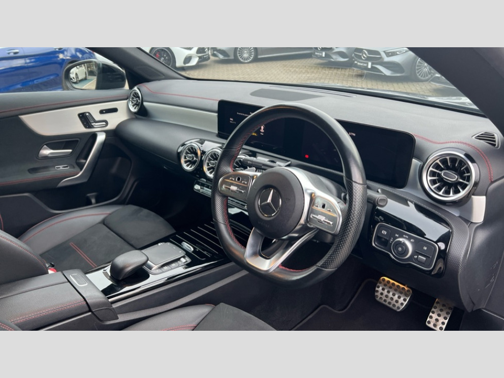 Mercedes-Benz CLA Class CLA 200 AMG Line Premium + Night Ed 4dr Tip Auto 10.25 inch Instrument display with digital cockpit, 10.25 inch touchscreen central media display, Active lane keeping assist, Attention assist - Monitors steering behaviour and long journey fatigue, Blind spot assist, Bluetooth connection, Car wash mode, Cruise control with limiter, Direct steer system with speed sensitive power steering, DYNAMIC SELECT with a choice of driving modes (ECO, Comfort, Sport and Individual), ECO start/stop function, Fluid level warning indicator for fuel, oil, coolant and washer fluid, Hard-disk navigation, Hey Mercedes Voice activation, Lamp failure indicator, Mercedes me connect including emergency call system, accident recovery, breakdown and maintenance management, Mercedes me remote services, Outside temperature gauge, Owners manual and service booklet in English, Pre-installation of private car share, Preinstallation for Mercedes Benz link, Radio aerial integrated into front and rear windshields, Service indicator (ASSYST), Smartphone integration with Apple CarPlay and Android auto, Speed limit assist, Traffic sign assist, Trip computer in multifunction display with current consumption indicator, Lowered comfort suspension, Rear axle multi-link, DAB digital radio tuner, MBUX multimedia system, Mid-range sound system, USB (type C) ports (2) in stowage compartment and 1 in front of centre console, Adaptive brake lights, AMG body styling with AMG front apron and rear apron and visible exhaust tailpipe in chrome trim elements, AMG bodystyling side skirts, Body colour bumpers, Body colour door handles, Chrome beltline strips, Diamond radiator grille pins in chrome, Electric panoramic sunroof with automatic tilt and convenience closing fuinctions, rain sensor auto closing and electronic roller sunblind, Electric windows, Electrically adjustable and heated door mirrors with integrated LED indicators, Exhaust system with 2 Visible tailpipe trim elements and rear apron with trim in chrome, Headlamp assist automatic headlamp activation, Heated glass rear windscreen + timer control, High level LED third brake light, Integrated LED daytime running lights, Interior mirror with black reading lamps and frameless, LED tail lamp, Multibeam LED headlamps with adaptive highbeam assist plus, Privacy glass with dark tinting on rear side windows and rear window, Rain sensing windscreen wipers with two sensitivity settings, Rear boot, Rear fog lamp, Rear side wing doors, Variable front intermittent wipers, Window line trim strip in chrome, 3 seat bench in 2nd row, 3 spoke flattened bottom nappa leather multifunction steering wheel with perforated leather in grip area, 40:20:40 split folding rear seat backrests, Air conditioning - Two zone thermotronic luxury automatic climate control with display, Air vents with surround in silver chrome, Artico man-made leather upholstery, Automatic child seat recognition sensor, Black roof lining, Brushed stainless steel sports pedals with rubber studs, Electrically adjustable front memory seats including lumbar support, Floor mats with stitched AMG lettering, Front centre armrest with stowage, Galvanished gear shift paddles on steering wheel, Heated front seats, Illuminated front door sills with changeable cover, Illuminated glove compartment stowage, Interior lighting - 64 colour Ambient lighting, Luggage net on driver/front passenger seat backrest, Manually adjustable front seats, Manually height and reach adjustable steering column, Rear armrest with two integral cup holders for drinks, Rear head restraints, Single front passenger seat, Sport seats with fixed head restraints, Stowage compartment in centre console with retractable cover, Sunvisors with illuminated vanity mirrors, Touchpad on center console, Twin front cupholders, Two outer rear seat isofix and top tether child seat fixing points, Keyless go comfort pack - CLA, Light and sight pack - CLA, Mirror pack - CLA, Night package - CLA, Parking package - CLA, Active bonnet pedestrain safety measure which detects an impact and raises bonnet by 65mm, Active brake assist includes forward collision warning system with autonomous braking, Adaptive brake assist with hold function and hill start assist, Anti lock braking system (ABS) with brake assist, Black seat belts, Bonnet with power domes, Brake pad wear warning indicator, Childproof locks manually operated for rear doors and electrically operated for rear power windows, Crash responsive emergency lighting, Driver and front passenger head and sidebags, Driver and front passenger windowbags, Drivers knee airbag, Dual stage driver and front passenger airbags, Electric parking brake, Electronic stability programme with acceleration skid control, ESP curve dynamic assist, Exit warning, Front and rear seatbelt reminder, Front passenger seat occupancy sensor, Three point rear seat belts, Tyre pressure monitoring system, Warning triangle and first aid kit, Guard 360 degree guard vehicle protection system with immobiliser and interior protection, Remote central locking and crash sensor with emergency opening function, Light aluminium with longitudinal grain interior trim, 19" AMG multi-spoke black painted light alloy wheels with high sheen rim finish, Summer tyres, Tirefit tyre sealant kit