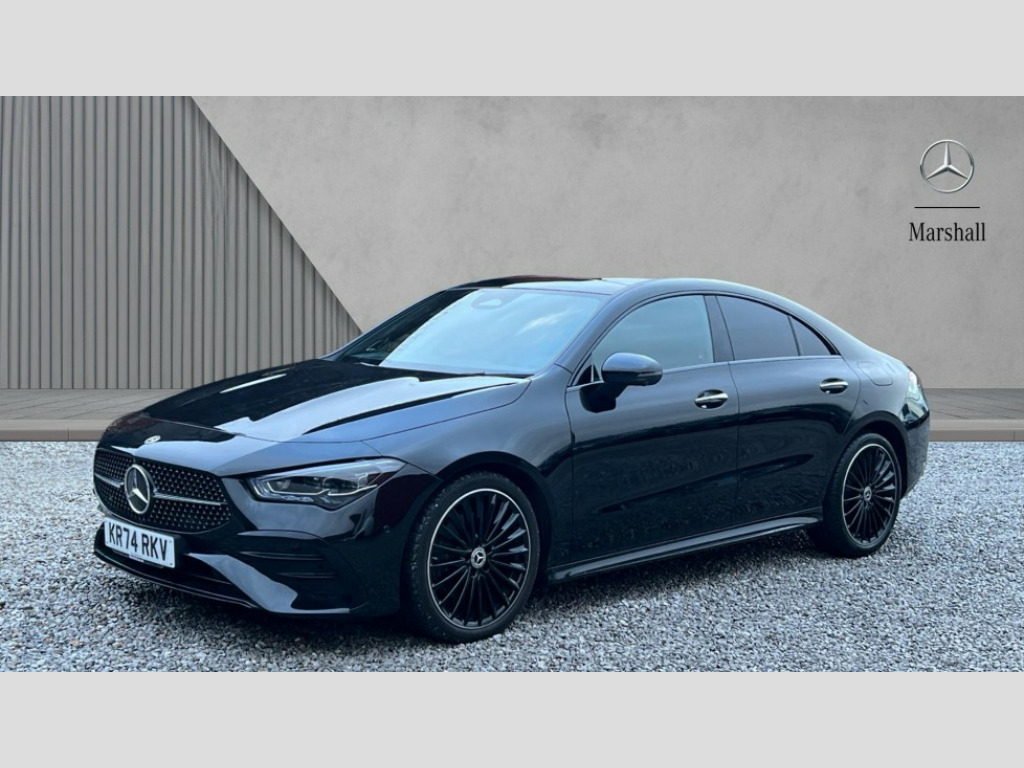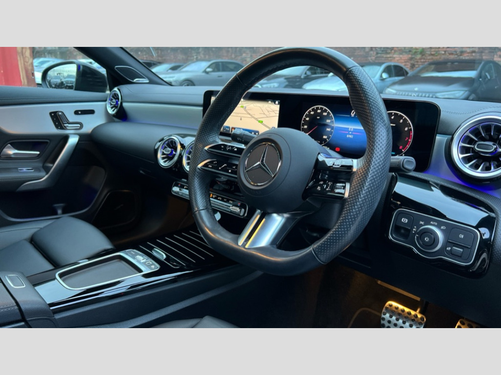Mercedes-Benz CLA Class CLA 200 AMG Line Premium Plus 4dr Tip Auto 10.25 inch Instrument display with digital cockpit, 10.25 inch touchscreen central media display, Active lane keeping assist, Attention assist - Monitors steering behaviour and long journey fatigue, Bluetooth connection, Car wash mode, Cruise control with limiter, Direct steer system, DYNAMIC SELECT with a choice of driving modes (ECO, Comfort, Sport and Individual), ECO start/stop function, Fingerprint sensor, Fluid level warning indicator for fuel, oil, coolant and washer fluid, Hard-disk navigation, Head up Display, Hey Mercedes Voice activation, Lamp failure indicator, MBUX augmented reality for navigation, Mercedes me connect including emergency call system, accident recovery, breakdown and maintenance management, Mercedes me remote services, Outside temperature gauge, Owners manual in English, Pre-installation of private car share, Radio aerial integrated into front and rear windshields, Service indicator (ASSYST), Smartphone integration with Apple CarPlay and Android auto, Traffic sign assist, Trip computer in multifunction display with current consumption indicator, Wireless charging in the front centre console, Comfort suspension with ride height lowering, Rear axle multi-link, Burmester lettering on the speakers, Burmester surround sound system (710W) with dolby atmos, speakers - 1 central, 1 woofer, 1 tweeter, 1 subwoofer with 60W, 2 in C pillar, DAB digital radio tuner, MBUX multimedia system, Pre installation for Mercedes Benz Link, Adaptive brake lights, AMG body styling with AMG front apron and rear apron and visible exhaust tailpipe in chrome trim elements, Body colour door handles, Electric panoramic sunroof with automatic tilt and convenience closing fuinctions, rain sensor auto closing and electronic roller sunblind, Electric windows, Electrically adjustable and heated door mirrors with integrated LED indicators, Exhaust system with 2 Visible tailpipe trim elements and rear apron with trim in chrome, Hand free access, Headlamp assist automatic headlamp activation, Heated glass rear windscreen + timer control, High level LED third brake light, Integrated LED daytime running lights, Interior mirror with black reading lamps and frameless, LED tail lamp, Multibeam LED headlamps with adaptive highbeam assist plus, Privacy glass with dark tinting on rear side windows and rear window, Radiator grille with Mercedes-Benz pattern in chrome and central Mercedes star, single louvre in high-gloss black with chrome inserts, Rain sensing windscreen wipers with two sensitivity settings, Rear boot, Rear fog lamp, Rear side wing doors, Variable front intermittent wipers, 3 seat bench in 2nd row, 3 twin spoke flattened multifunction steering wheel in nappa leather - horizontal twin spoke in high gloss black, vertical twin spoke in silver chrome, 40:20:40 split folding rear seat backrests, Air conditioning - Two zone thermotronic luxury automatic climate control with display, Air vents with surround in silver chrome, Automatic child seat recognition sensor, Black roof lining, Brushed stainless steel sports pedals with rubber studs, Electrically adjustable front memory seats including 4 way lumbar support, Floor mats with stitched AMG lettering, Fluorescent jacket, Front centre armrest with stowage, Galvanished gear shift paddles in silver chrome, Illuminated front door sills with Mercedes Benz lettering and changeable cover, Interior lighting - 64 colour Ambient lighting, Luggage net on driver/front passenger seat backrest, Manually height and reach adjustable steering column, Rear armrest with two integral cup holders for drinks, Rear head restraints, Single front passenger seat, Sport seats with fixed head restraints, Stowage compartment in centre console with retractable cover, Sunvisors with illuminated vanity mirrors, Twin front cupholders, Two outer rear seat isofix and top tether child seat fixing points, Keyless go comfort pack - CLA, Light and sight pack - CLA, Mirror pack - CLA, Night package - CLA, Parking pack with 360 degree camera - CLA, Seat comfort pack - CLA, USB package plus - CLA, Winter pack - CLA, Active bonnet pedestrain safety measure which detects an impact and raises bonnet by 65mm, Adaptive brake assist with hold function and hill start assist, Anti lock braking system (ABS) with brake assist, Black seat belts, Bonnet with power domes, Brake calipers with Mercedes-Benz lettering, Brake pad wear warning indicator, Childproof locks manually operated for rear doors and electrically operated for rear power windows, Crash responsive emergency lighting, Driver and front passenger head and sidebags, Driver and front passenger windowbags, Drivers knee airbag, Dual stage driver and front passenger airbags, Electric parking brake, Electronic stability programme with acceleration skid control, ESP curve dynamic assist, Exit warning, Front and rear seatbelt reminder, Front passenger seat occupancy sensor, Perforated front brake discs, Sports braking system, Three point rear seat belts, Tyre pressure monitoring system, Warning triangle and first aid kit, Alarm system with immobiliser and interior protection -Thatcham category 1, Guard 360 deg vehicle protection - tow away protection with visual, acoustic warning, interior monitoring, preinstallation for parking damage, Remote central locking and crash sensor with emergency opening function, Light aluminium with longitudinal grain interior trim, 19" AMG multi-spoke black painted light alloy wheels with high sheen rim finish, Summer tyres, Tirefit tyre sealant kit