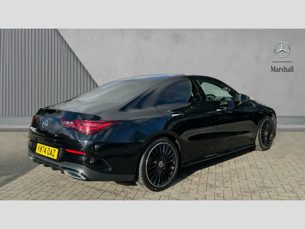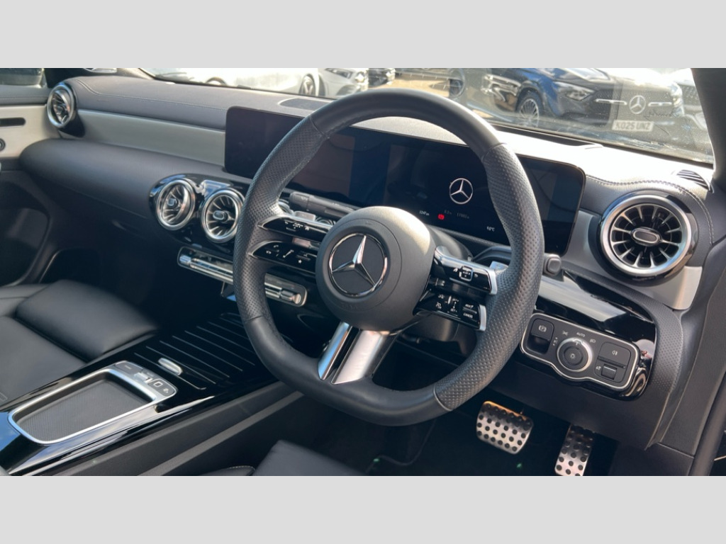 Mercedes-Benz CLA Class CLA 200 AMG Line Premium Plus 4dr Tip Auto 10.25 inch Instrument display with digital cockpit, 10.25 inch touchscreen central media display, Active lane keeping assist, Attention assist - Monitors steering behaviour and long journey fatigue, Bluetooth connection, Car wash mode, Cruise control with limiter, Direct steer system, DYNAMIC SELECT with a choice of driving modes (ECO, Comfort, Sport and Individual), ECO start/stop function, Fingerprint sensor, Fluid level warning indicator for fuel, oil, coolant and washer fluid, Hard-disk navigation, Head up Display, Hey Mercedes Voice activation, Lamp failure indicator, MBUX augmented reality for navigation, Mercedes me connect including emergency call system, accident recovery, breakdown and maintenance management, Mercedes me remote services, Outside temperature gauge, Owners manual in English, Pre-installation of private car share, Radio aerial integrated into front and rear windshields, Service indicator (ASSYST), Smartphone integration with Apple CarPlay and Android auto, Traffic sign assist, Trip computer in multifunction display with current consumption indicator, Wireless charging in the front centre console, Comfort suspension with ride height lowering, Rear axle multi-link, Burmester lettering on the speakers, Burmester surround sound system (710W) with dolby atmos, speakers - 1 central, 1 woofer, 1 tweeter, 1 subwoofer with 60W, 2 in C pillar, DAB digital radio tuner, MBUX multimedia system, Pre installation for Mercedes Benz Link, Adaptive brake lights, AMG body styling with AMG front apron and rear apron and visible exhaust tailpipe in chrome trim elements, Body colour door handles, Electric panoramic sunroof with automatic tilt and convenience closing fuinctions, rain sensor auto closing and electronic roller sunblind, Electric windows, Electrically adjustable and heated door mirrors with integrated LED indicators, Exhaust system with 2 Visible tailpipe trim elements and rear apron with trim in chrome, Hand free access, Headlamp assist automatic headlamp activation, Heated glass rear windscreen + timer control, High level LED third brake light, Integrated LED daytime running lights, Interior mirror with black reading lamps and frameless, LED tail lamp, Multibeam LED headlamps with adaptive highbeam assist plus, Privacy glass with dark tinting on rear side windows and rear window, Radiator grille with Mercedes-Benz pattern in chrome and central Mercedes star, single louvre in high-gloss black with chrome inserts, Rain sensing windscreen wipers with two sensitivity settings, Rear boot, Rear fog lamp, Rear side wing doors, Variable front intermittent wipers, 3 seat bench in 2nd row, 3 twin spoke flattened multifunction steering wheel in nappa leather - horizontal twin spoke in high gloss black, vertical twin spoke in silver chrome, 40:20:40 split folding rear seat backrests, Air conditioning - Two zone thermotronic luxury automatic climate control with display, Air vents with surround in silver chrome, Automatic child seat recognition sensor, Black roof lining, Brushed stainless steel sports pedals with rubber studs, Electrically adjustable front memory seats including 4 way lumbar support, Floor mats with stitched AMG lettering, Fluorescent jacket, Front centre armrest with stowage, Galvanished gear shift paddles in silver chrome, Illuminated front door sills with Mercedes Benz lettering and changeable cover, Interior lighting - 64 colour Ambient lighting, Luggage net on driver/front passenger seat backrest, Manually height and reach adjustable steering column, Rear armrest with two integral cup holders for drinks, Rear head restraints, Single front passenger seat, Sport seats with fixed head restraints, Stowage compartment in centre console with retractable cover, Sunvisors with illuminated vanity mirrors, Twin front cupholders, Two outer rear seat isofix and top tether child seat fixing points, Keyless go comfort pack - CLA, Light and sight pack - CLA, Mirror pack - CLA, Night package - CLA, Parking pack with 360 degree camera - CLA, Seat comfort pack - CLA, USB package plus - CLA, Winter pack - CLA, Active bonnet pedestrain safety measure which detects an impact and raises bonnet by 65mm, Adaptive brake assist with hold function and hill start assist, Anti lock braking system (ABS) with brake assist, Black seat belts, Bonnet with power domes, Brake calipers with Mercedes-Benz lettering, Brake pad wear warning indicator, Childproof locks manually operated for rear doors and electrically operated for rear power windows, Crash responsive emergency lighting, Driver and front passenger head and sidebags, Driver and front passenger windowbags, Drivers knee airbag, Dual stage driver and front passenger airbags, Electric parking brake, Electronic stability programme with acceleration skid control, ESP curve dynamic assist, Exit warning, Front and rear seatbelt reminder, Front passenger seat occupancy sensor, Perforated front brake discs, Sports braking system, Three point rear seat belts, Tyre pressure monitoring system, Warning triangle and first aid kit, Alarm system with immobiliser and interior protection -Thatcham category 1, Guard 360 deg vehicle protection - tow away protection with visual, acoustic warning, interior monitoring, preinstallation for parking damage, Remote central locking and crash sensor with emergency opening function, Light aluminium with longitudinal grain interior trim, 19" AMG multi-spoke black painted light alloy wheels with high sheen rim finish, Summer tyres, Tirefit tyre sealant kit
