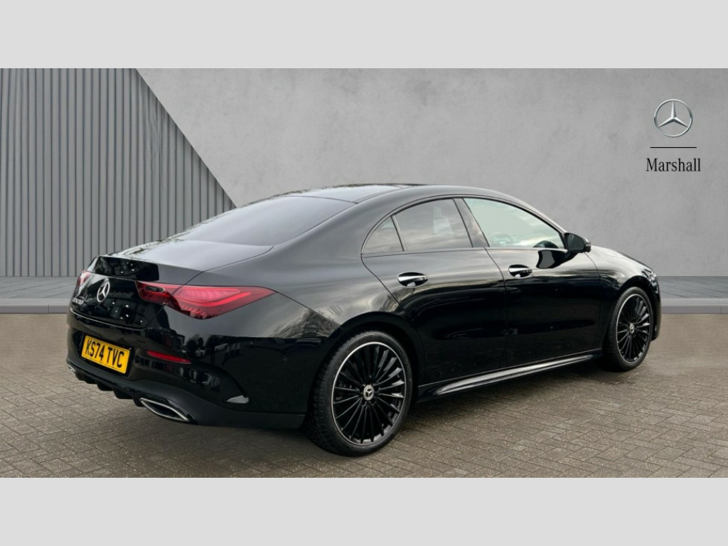 Mercedes-Benz CLA Class CLA 200 AMG Line Premium Plus 4dr Tip Auto 10.25 inch Instrument display with digital cockpit, 10.25 inch touchscreen central media display, Active lane keeping assist, Attention assist - Monitors steering behaviour and long journey fatigue, Bluetooth connection, Car wash mode, Cruise control with limiter, Direct steer system, DYNAMIC SELECT with a choice of driving modes (ECO, Comfort, Sport and Individual), ECO start/stop function, Fingerprint sensor, Fluid level warning indicator for fuel, oil, coolant and washer fluid, Hard-disk navigation, Head up Display, Hey Mercedes Voice activation, Lamp failure indicator, Mercedes me connect including emergency call system, accident recovery, breakdown and maintenance management, Mercedes me remote services, Outside temperature gauge, Owners manual in English, Pre-installation of private car share, Radio aerial integrated into front and rear windshields, Service indicator (ASSYST), Smartphone integration with Apple CarPlay and Android auto, Traffic sign assist, Trip computer in multifunction display with current consumption indicator, Wireless charging in the front centre console, Comfort suspension with ride height lowering, Rear axle multi-link, Burmester lettering on the speakers, Burmester surround sound system (710W) with dolby atmos, speakers - 1 central, 1 woofer, 1 tweeter, 1 subwoofer with 60W, 2 in C pillar, DAB digital radio tuner, MBUX multimedia system, Pre installation for Mercedes Benz Link, Adaptive brake lights, AMG body styling with AMG front apron and rear apron and visible exhaust tailpipe in chrome trim elements, Body colour door handles, Electric panoramic sunroof with automatic tilt and convenience closing fuinctions, rain sensor auto closing and electronic roller sunblind, Electric windows, Electrically adjustable and heated door mirrors with integrated LED indicators, Exhaust system with 2 Visible tailpipe trim elements and rear apron with trim in chrome, Hand free access, Headlamp assist automatic headlamp activation, Heated glass rear windscreen + timer control, High level LED third brake light, Integrated LED daytime running lights, Interior mirror with black reading lamps and frameless, LED tail lamp, Multibeam LED headlamps with adaptive highbeam assist plus, Privacy glass with dark tinting on rear side windows and rear window, Radiator grille with Mercedes-Benz pattern in chrome and central Mercedes star, single louvre in high-gloss black with chrome inserts, Rain sensing windscreen wipers with two sensitivity settings, Rear boot, Rear fog lamp, Rear side wing doors, Variable front intermittent wipers, 3 seat bench in 2nd row, 3 twin spoke flattened multifunction steering wheel in nappa leather - horizontal twin spoke in high gloss black, vertical twin spoke in silver chrome, 40:20:40 split folding rear seat backrests, Air conditioning - Two zone thermotronic luxury automatic climate control with display, Air vents with surround in silver chrome, Automatic child seat recognition sensor, Black roof lining, Brushed stainless steel sports pedals with rubber studs, Electrically adjustable front memory seats including 4 way lumbar support, Floor mats with stitched AMG lettering, Fluorescent jacket, Front centre armrest with stowage, Galvanished gear shift paddles in silver chrome, Interior lighting - 64 colour Ambient lighting, Luggage net on driver/front passenger seat backrest, Manually height and reach adjustable steering column, Rear armrest with two integral cup holders for drinks, Rear head restraints, Single front passenger seat, Sport seats with fixed head restraints, Stowage compartment in centre console with retractable cover, Sunvisors with illuminated vanity mirrors, Twin front cupholders, Two outer rear seat isofix and top tether child seat fixing points, Keyless go comfort pack - CLA, Light and sight pack - CLA, Mirror pack - CLA, Night package - CLA, Parking pack with 360 degree camera - CLA, Seat comfort pack - CLA, USB package plus - CLA, Winter pack - CLA, Active bonnet pedestrain safety measure which detects an impact and raises bonnet by 65mm, Adaptive brake assist with hold function and hill start assist, Anti lock braking system (ABS) with brake assist, Black seat belts, Bonnet with power domes, Brake calipers with Mercedes-Benz lettering, Brake pad wear warning indicator, Childproof locks manually operated for rear doors and electrically operated for rear power windows, Crash responsive emergency lighting, Driver and front passenger head and sidebags, Driver and front passenger windowbags, Drivers knee airbag, Dual stage driver and front passenger airbags, Electric parking brake, Electronic stability programme with acceleration skid control, ESP curve dynamic assist, Exit warning, Front and rear seatbelt reminder, Front passenger seat occupancy sensor, Perforated front brake discs, Sports braking system, Three point rear seat belts, Tyre pressure monitoring system, Warning triangle and first aid kit, Alarm system with immobiliser and interior protection -Thatcham category 1, Guard 360 deg vehicle protection - tow away protection with visual, acoustic warning, interior monitoring, preinstallation for parking damage, Remote central locking and crash sensor with emergency opening function, Light aluminium with longitudinal grain interior trim, 19" AMG multi-spoke black painted light alloy wheels with high sheen rim flange, Summer tyres, Tirefit tyre sealant kit