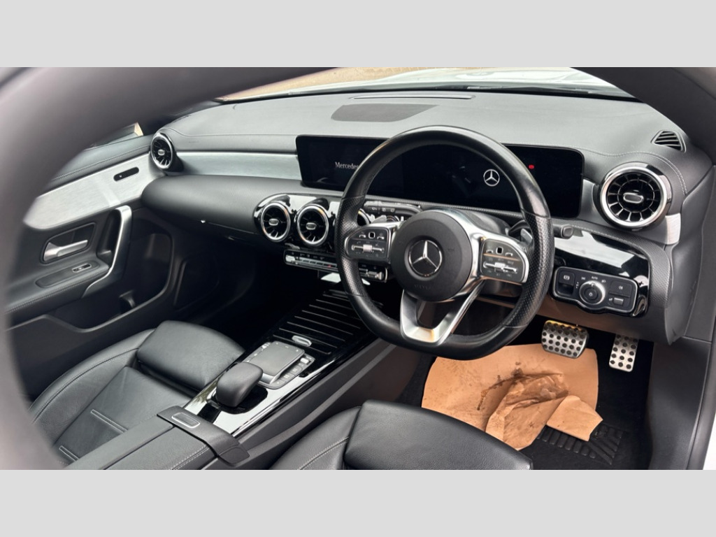 Mercedes-Benz CLA Class CLA 220d AMG Line 5dr Tip Auto 10.25 inch touchscreen central media display, 7 inch Instrument display with digital cockpit, Active lane keeping assist, Attention assist - Monitors steering behaviour and long journey fatigue, Bluetooth connection, Car wash mode, Cruise control with limiter, Direct steer system with speed sensitive power steering, DYNAMIC SELECT with a choice of driving modes (ECO, Comfort, Sport and Individual), Easy-pack tailgate, ECO start/stop function, Fluid level warning indicator for fuel, oil, coolant and washer fluid, Hard-disk navigation, Hey Mercedes Voice activation, Lamp failure indicator, Mercedes me connect including emergency call system, accident recovery, breakdown and maintenance management, Mercedes me remote services, Outside temperature gauge, Owners manual and service booklet in English, Pre-installation of private car share, Preinstallation for Mercedes Benz link, Radio aerial integrated into front and rear windshields, Remote and charging services plus, Service indicator (ASSYST), Smartphone integration with Apple CarPlay and Android auto, Speed limit assist, Trip computer in multifunction display with current consumption indicator, Wireless charging, Lowered comfort suspension, Rear axle multi-link, DAB digital radio tuner, MBUX multimedia system with DAB digital radio and touchpad including satellite navigation, Mercedes Benz sound system (100 W) with 6 speakers, USB (type C) ports (2) in stowage compartment and 1 in front of centre console, Adaptive brake lights, AMG body styling with AMG front apron and rear apron and visible exhaust tailpipe in chrome trim elements, AMG bodystyling side skirts, Body colour bumpers, Body colour door handles, Chrome beltline strips, Chrome weather strip, Diamond radiator grille pins in chrome with silver painted louvres and chrome insert, Electric windows, Electrically adjustable and heated door mirrors with integrated LED indicators, Exhaust system with 2 Visible tailpipe trim elements and rear apron with trim in chrome, Headlamp assist automatic headlamp activation, Heated glass rear windscreen + timer control, High level LED third brake light, Interior mirror with black reading lamps and frameless, LED high performance headlamps with integrated LED daytime running lights, LED tail lamp, Privacy glass with dark tinting on rear side windows and rear window, Rain sensing windscreen wipers with two sensitivity settings, Rear fog lamp, Window line trim strip in chrome, 3 spoke flattened bottom nappa leather multifunction steering wheel with perforated leather in grip area, 40:20:40 split folding rear seat backrests, Air conditioning - Two zone thermotronic luxury automatic climate control with display, Air vents with surround in silver chrome, Automatic child seat recognition sensor, Black roof lining, Brushed stainless steel sports pedals with rubber studs, Floor mats with stitched AMG lettering, Front centre armrest with stowage, Front door sills with Mercedes Benz lettering, Galvanished gear shift paddles on steering wheel, Heated front seats, Illuminated glove compartment stowage, Luggage net on driver/front passenger seat backrest, Manually adjustable front seats, Manually height and reach adjustable steering column, Rear head restraints, Sport seats with fixed head restraints, Stowage compartment in centre console with retractable cover, Sunvisors with illuminated vanity mirrors, Touchpad on center console, Twin front cupholders, Two outer rear seat isofix and top tether child seat fixing points, Light and sight pack - CLA, Mirror pack - CLA, Parking package - CLA, Seat comfort pack - CLA, Active bonnet pedestrain safety measure which detects an impact and raises bonnet by 65mm, Active brake assist includes forward collision warning system with autonomous braking, Adaptive brake assist with hold function and hill start assist, Anti-lock braking system (ABS), Black seat belts, Bonnet with power domes, Brake pad wear warning indicator, Childproof locks manually operated for rear doors and electrically operated for rear power windows, Crash responsive emergency lighting, Driver and front passenger head and sidebags, Driver and front passenger windowbags, Drivers knee airbag, Dual stage driver and front passenger airbags, Electric parking brake, Electronic stability programme with acceleration skid control, ESP curve dynamic assist, Front and rear seatbelt reminder, Front passenger seat occupancy sensor, Perforated front brake discs, Three point rear seat belts, Tyre pressure monitoring system, Warning triangle and first aid kit, Keyless Go starting function, Remote central locking and crash sensor with emergency opening function, Urban guard vehicle protection system with immobiliser and interior protection, Light aluminium with longitudinal grain interior trim, 18" 5 twin spoke design alloy wheels painted in titanium grey with high sheen finish, Summer tyres, Tirefit tyre sealant kit