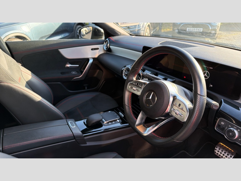Mercedes-Benz CLA Class CLA 220d AMG Line Premium 4dr Tip Auto 10.25 inch Instrument display with digital cockpit, 10.25 inch touchscreen central media display, Active lane keeping assist, Attention assist - Monitors steering behaviour and long journey fatigue, Bluetooth connection, Car wash mode, Cruise control with limiter, Direct steer system with speed sensitive power steering, DYNAMIC SELECT with a choice of driving modes (ECO, Comfort, Sport and Individual), ECO start/stop function, Fluid level warning indicator for fuel, oil, coolant and washer fluid, Hard-disk navigation, Hey Mercedes Voice activation, Lamp failure indicator, Mercedes me connect including emergency call system, accident recovery, breakdown and maintenance management, Mercedes me remote services, Outside temperature gauge, Owners manual and service booklet in English, Pre-installation of private car share, Preinstallation for Mercedes Benz link, Radio aerial integrated into front and rear windshields, Service indicator (ASSYST), Smartphone integration with Apple CarPlay and Android auto, Speed limit assist, Trip computer in multifunction display with current consumption indicator, Lowered comfort suspension, Rear axle multi-link, DAB digital radio tuner, MBUX multimedia system, Mid-range sound system, USB (type C) ports (2) in stowage compartment and 1 in front of centre console, Adaptive brake lights, AMG body styling with AMG front apron and rear apron and visible exhaust tailpipe in chrome trim elements, AMG bodystyling side skirts, Body colour bumpers, Body colour door handles, Chrome beltline strips, Diamond radiator grille pins in chrome, Electric windows, Electrically adjustable and heated door mirrors with integrated LED indicators, Exhaust system with 2 Visible tailpipe trim elements and rear apron with trim in chrome, Headlamp assist automatic headlamp activation, Heated glass rear windscreen + timer control, High level LED third brake light, Interior mirror with black reading lamps and frameless, LED high performance headlamps with integrated LED daytime running lights, LED tail lamp, Privacy glass with dark tinting on rear side windows and rear window, Rain sensing windscreen wipers with two sensitivity settings, Rear boot, Rear fog lamp, Rear side wing doors, Variable front intermittent wipers, Window line trim strip in chrome, 3 seat bench in 2nd row, 3 spoke flattened bottom nappa leather multifunction steering wheel with perforated leather in grip area, 40:20:40 split folding rear seat backrests, Air conditioning - Two zone thermotronic luxury automatic climate control with display, Air vents with surround in silver chrome, Artico man-made leather upholstery, Automatic child seat recognition sensor, Black roof lining, Brushed stainless steel sports pedals with rubber studs, Floor mats with stitched AMG lettering, Front centre armrest with stowage, Galvanished gear shift paddles on steering wheel, Heated front seats, Illuminated front door sills with changeable cover, Illuminated glove compartment stowage, Interior lighting - 64 colour Ambient lighting, Luggage net on driver/front passenger seat backrest, Manually adjustable front seats, Manually height and reach adjustable steering column, Rear armrest with two integral cup holders for drinks, Rear head restraints, Single front passenger seat, Sport seats with fixed head restraints, Stowage compartment in centre console with retractable cover, Sunvisors with illuminated vanity mirrors, Touchpad on center console, Twin front cupholders, Two outer rear seat isofix and top tether child seat fixing points, Keyless go comfort pack - CLA, Light and sight pack - CLA, Mirror pack - CLA, Night package - CLA, Parking package - CLA, Seat comfort pack - CLA, Active bonnet pedestrain safety measure which detects an impact and raises bonnet by 65mm, Active brake assist includes forward collision warning system with autonomous braking, Adaptive brake assist with hold function and hill start assist, Anti lock braking system (ABS) with brake assist, Black seat belts, Bonnet with power domes, Brake pad wear warning indicator, Childproof locks manually operated for rear doors and electrically operated for rear power windows, Crash responsive emergency lighting, Driver and front passenger head and sidebags, Driver and front passenger windowbags, Drivers knee airbag, Dual stage driver and front passenger airbags, Electric parking brake, Electronic stability programme with acceleration skid control, ESP curve dynamic assist, Front and rear seatbelt reminder, Front passenger seat occupancy sensor, Three point rear seat belts, Tyre pressure monitoring system, Warning triangle and first aid kit, Guard 360 degree guard vehicle protection system with immobiliser and interior protection, Remote central locking and crash sensor with emergency opening function, Light aluminium with longitudinal grain interior trim, 18" AMG 5 twin spoke light alloy wheels painted in black with high sheen finish, Summer tyres, Tirefit tyre sealant kit