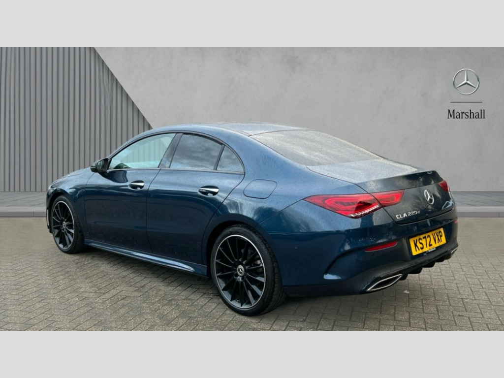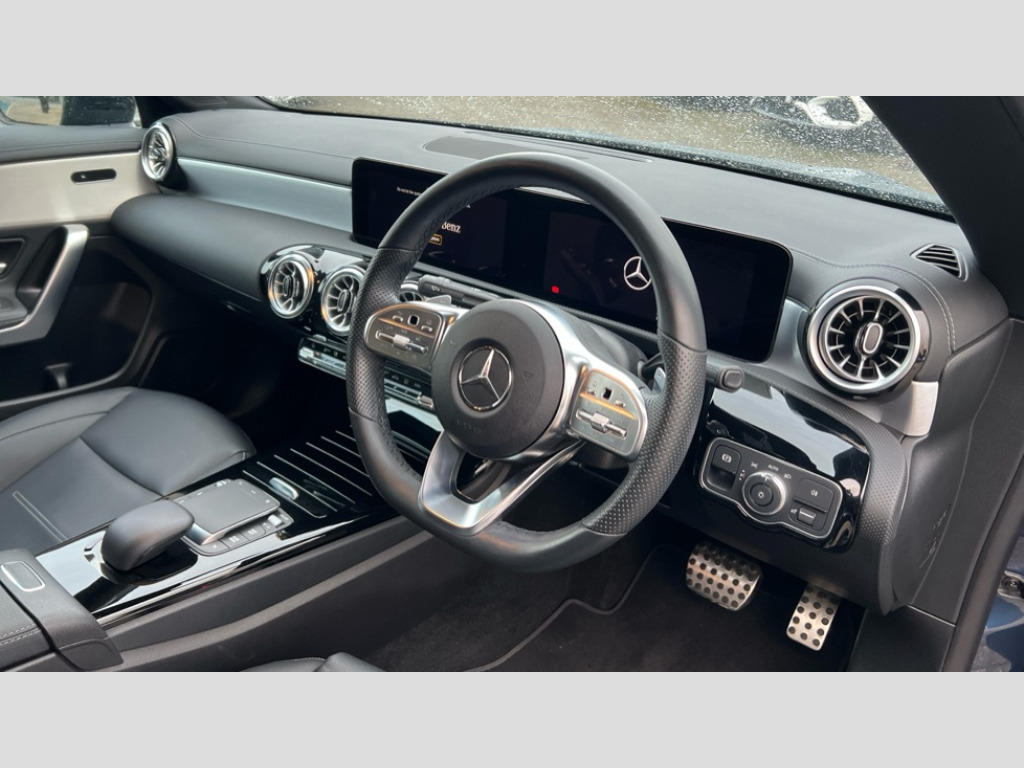 Mercedes-Benz CLA Class CLA 220d AMG Line Premium + Night Ed 4dr Tip Auto 10.25 inch Instrument display with digital cockpit, 10.25 inch touchscreen central media display, Active lane keeping assist, Attention assist - Monitors steering behaviour and long journey fatigue, Blind spot assist, Bluetooth connection, Car wash mode, Cruise control with limiter, Direct steer system with speed sensitive power steering, DYNAMIC SELECT with a choice of driving modes (ECO, Comfort, Sport and Individual), ECO start/stop function, Fluid level warning indicator for fuel, oil, coolant and washer fluid, Hard-disk navigation, Hey Mercedes Voice activation, Lamp failure indicator, Mercedes me connect including emergency call system, accident recovery, breakdown and maintenance management, Mercedes me remote services, Outside temperature gauge, Owners manual and service booklet in English, Pre-installation of private car share, Preinstallation for Mercedes Benz link, Radio aerial integrated into front and rear windshields, Service indicator (ASSYST), Smartphone integration with Apple CarPlay and Android auto, Speed limit assist, Traffic sign assist, Trip computer in multifunction display with current consumption indicator, Lowered comfort suspension, Rear axle multi-link, DAB digital radio tuner, MBUX multimedia system, Mid-range sound system, USB (type C) ports (2) in stowage compartment and 1 in front of centre console, Adaptive brake lights, AMG body styling with AMG front apron and rear apron and visible exhaust tailpipe in chrome trim elements, AMG bodystyling side skirts, Body colour bumpers, Body colour door handles, Chrome beltline strips, Diamond radiator grille pins in chrome, Electric panoramic sunroof with automatic tilt and convenience closing fuinctions, rain sensor auto closing and electronic roller sunblind, Electric windows, Electrically adjustable and heated door mirrors with integrated LED indicators, Exhaust system with 2 Visible tailpipe trim elements and rear apron with trim in chrome, Headlamp assist automatic headlamp activation, Heated glass rear windscreen + timer control, High level LED third brake light, Integrated LED daytime running lights, Interior mirror with black reading lamps and frameless, LED tail lamp, Multibeam LED headlamps with adaptive highbeam assist plus, Privacy glass with dark tinting on rear side windows and rear window, Rain sensing windscreen wipers with two sensitivity settings, Rear boot, Rear fog lamp, Rear side wing doors, Variable front intermittent wipers, Window line trim strip in chrome, 3 seat bench in 2nd row, 3 spoke flattened bottom nappa leather multifunction steering wheel with perforated leather in grip area, 40:20:40 split folding rear seat backrests, Air conditioning - Two zone thermotronic luxury automatic climate control with display, Air vents with surround in silver chrome, Artico man-made leather upholstery, Automatic child seat recognition sensor, Black roof lining, Brushed stainless steel sports pedals with rubber studs, Electrically adjustable front memory seats including lumbar support, Floor mats with stitched AMG lettering, Front centre armrest with stowage, Galvanished gear shift paddles on steering wheel, Heated front seats, Illuminated front door sills with changeable cover, Illuminated glove compartment stowage, Interior lighting - 64 colour Ambient lighting, Luggage net on driver/front passenger seat backrest, Manually adjustable front seats, Manually height and reach adjustable steering column, Rear armrest with two integral cup holders for drinks, Rear head restraints, Single front passenger seat, Sport seats with fixed head restraints, Stowage compartment in centre console with retractable cover, Sunvisors with illuminated vanity mirrors, Touchpad on center console, Twin front cupholders, Two outer rear seat isofix and top tether child seat fixing points, Keyless go comfort pack - CLA, Light and sight pack - CLA, Mirror pack - CLA, Night package - CLA, Parking package - CLA, Active bonnet pedestrain safety measure which detects an impact and raises bonnet by 65mm, Active brake assist includes forward collision warning system with autonomous braking, Adaptive brake assist with hold function and hill start assist, Anti lock braking system (ABS) with brake assist, Black seat belts, Bonnet with power domes, Brake pad wear warning indicator, Childproof locks manually operated for rear doors and electrically operated for rear power windows, Crash responsive emergency lighting, Driver and front passenger head and sidebags, Driver and front passenger windowbags, Drivers knee airbag, Dual stage driver and front passenger airbags, Electric parking brake, Electronic stability programme with acceleration skid control, ESP curve dynamic assist, Exit warning, Front and rear seatbelt reminder, Front passenger seat occupancy sensor, Three point rear seat belts, Tyre pressure monitoring system, Warning triangle and first aid kit, Guard 360 degree guard vehicle protection system with immobiliser and interior protection, Remote central locking and crash sensor with emergency opening function, Light aluminium with longitudinal grain interior trim, 19" AMG multi-spoke black painted light alloy wheels with high sheen rim finish, Summer tyres, Tirefit tyre sealant kit