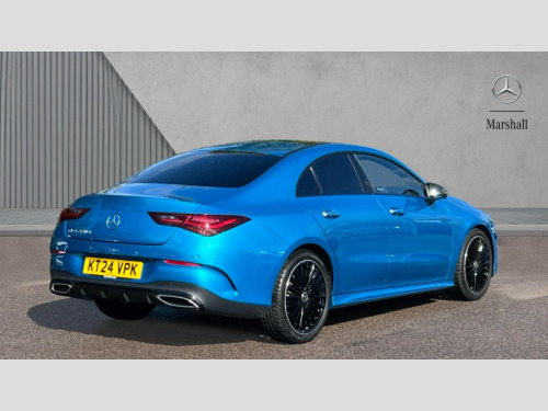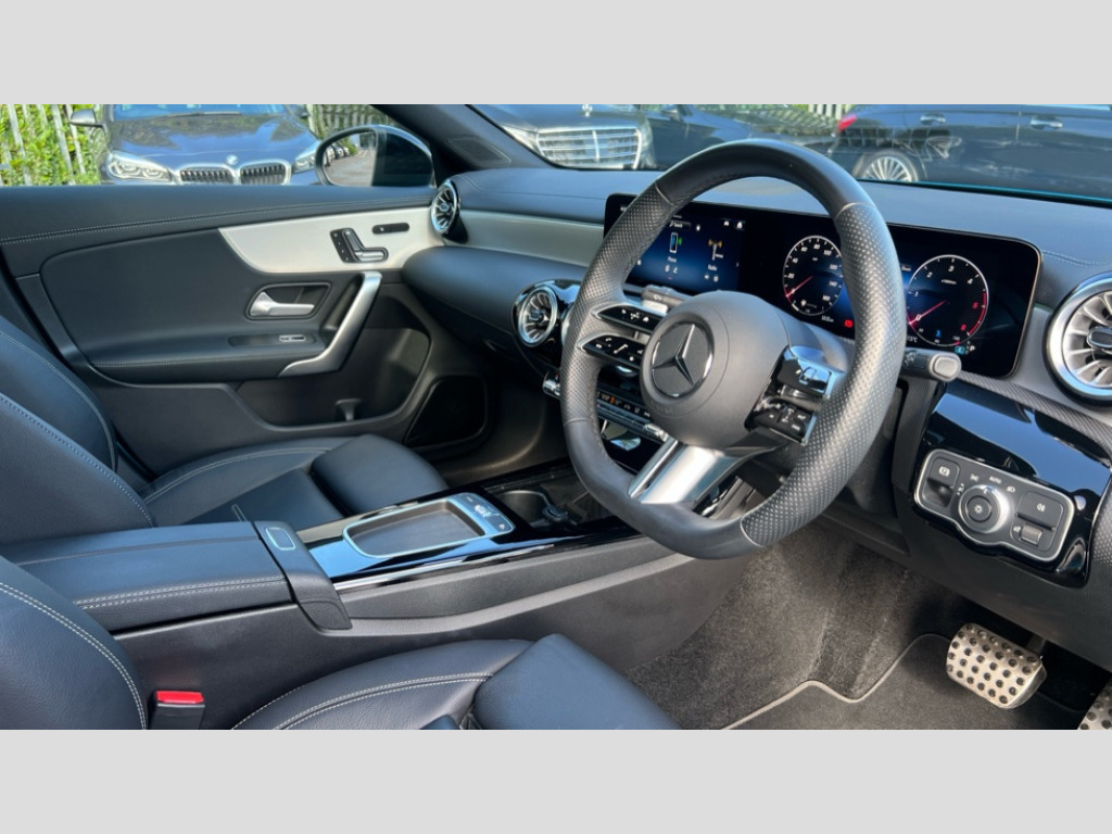 Mercedes-Benz CLA Class CLA 220d AMG Line Premium Plus 4dr Tip Auto 10.25 inch Instrument display with digital cockpit, 10.25 inch touchscreen central media display, Active lane keeping assist, Attention assist - Monitors steering behaviour and long journey fatigue, Bluetooth connection, Car wash mode, Cruise control with limiter, Direct steer system, DYNAMIC SELECT with a choice of driving modes (ECO, Comfort, Sport and Individual), ECO start/stop function, Fingerprint sensor, Fluid level warning indicator for fuel, oil, coolant and washer fluid, Hard-disk navigation, Head up Display, Hey Mercedes Voice activation, Lamp failure indicator, MBUX augmented reality for navigation, Mercedes me connect including emergency call system, accident recovery, breakdown and maintenance management, Mercedes me remote services, Outside temperature gauge, Owners manual in English, Pre-installation of private car share, Radio aerial integrated into front and rear windshields, Service indicator (ASSYST), Smartphone integration with Apple CarPlay and Android auto, Traffic sign assist, Trip computer in multifunction display with current consumption indicator, Wireless charging in the front centre console, Comfort suspension with ride height lowering, Rear axle multi-link, Burmester lettering on the speakers, Burmester surround sound system (710W) with dolby atmos, speakers - 1 central, 1 woofer, 1 tweeter, 1 subwoofer with 60W, 2 in C pillar, DAB digital radio tuner, MBUX multimedia system, Pre installation for Mercedes Benz Link, Adaptive brake lights, AMG body styling with AMG front apron and rear apron and visible exhaust tailpipe in chrome trim elements, Body colour door handles, Electric panoramic sunroof with automatic tilt and convenience closing fuinctions, rain sensor auto closing and electronic roller sunblind, Electric windows, Electrically adjustable and heated door mirrors with integrated LED indicators, Exhaust system with 2 Visible tailpipe trim elements and rear apron with trim in chrome, Hand free access, Headlamp assist automatic headlamp activation, Heated glass rear windscreen + timer control, High level LED third brake light, Integrated LED daytime running lights, Interior mirror with black reading lamps and frameless, LED tail lamp, Multibeam LED headlamps with adaptive highbeam assist plus, Privacy glass with dark tinting on rear side windows and rear window, Radiator grille with Mercedes-Benz pattern in chrome and central Mercedes star, single louvre in high-gloss black with chrome inserts, Rain sensing windscreen wipers with two sensitivity settings, Rear boot, Rear fog lamp, Rear side wing doors, Variable front intermittent wipers, 3 seat bench in 2nd row, 3 twin spoke flattened multifunction steering wheel in nappa leather - horizontal twin spoke in high gloss black, vertical twin spoke in silver chrome, 40:20:40 split folding rear seat backrests, Air conditioning - Two zone thermotronic luxury automatic climate control with display, Air vents with surround in silver chrome, Automatic child seat recognition sensor, Black roof lining, Brushed stainless steel sports pedals with rubber studs, Electrically adjustable front memory seats including 4 way lumbar support, Floor mats with stitched AMG lettering, Fluorescent jacket, Front centre armrest with stowage, Galvanished gear shift paddles in silver chrome, Illuminated front door sills with Mercedes Benz lettering and changeable cover, Interior lighting - 64 colour Ambient lighting, Luggage net on driver/front passenger seat backrest, Manually height and reach adjustable steering column, Rear armrest with two integral cup holders for drinks, Rear head restraints, Single front passenger seat, Sport seats with fixed head restraints, Stowage compartment in centre console with retractable cover, Sunvisors with illuminated vanity mirrors, Twin front cupholders, Two outer rear seat isofix and top tether child seat fixing points, Keyless go comfort pack - CLA, Light and sight pack - CLA, Mirror pack - CLA, Night package - CLA, Parking pack with 360 degree camera - CLA, Seat comfort pack - CLA, USB package plus - CLA, Winter pack - CLA, Active bonnet pedestrain safety measure which detects an impact and raises bonnet by 65mm, Adaptive brake assist with hold function and hill start assist, Anti lock braking system (ABS) with brake assist, Black seat belts, Bonnet with power domes, Brake calipers with Mercedes-Benz lettering, Brake pad wear warning indicator, Childproof locks manually operated for rear doors and electrically operated for rear power windows, Crash responsive emergency lighting, Driver and front passenger head and sidebags, Driver and front passenger windowbags, Drivers knee airbag, Dual stage driver and front passenger airbags, Electric parking brake, Electronic stability programme with acceleration skid control, ESP curve dynamic assist, Exit warning, Front and rear seatbelt reminder, Front passenger seat occupancy sensor, Perforated front brake discs, Sports braking system, Three point rear seat belts, Tyre pressure monitoring system, Warning triangle and first aid kit, Alarm system with immobiliser and interior protection -Thatcham category 1, Guard 360 deg vehicle protection - tow away protection with visual, acoustic warning, interior monitoring, preinstallation for parking damage, Remote central locking and crash sensor with emergency opening function, Light aluminium with longitudinal grain interior trim, 19" AMG multi-spoke black painted light alloy wheels with high sheen rim finish, Summer tyres, Tirefit tyre sealant kit
