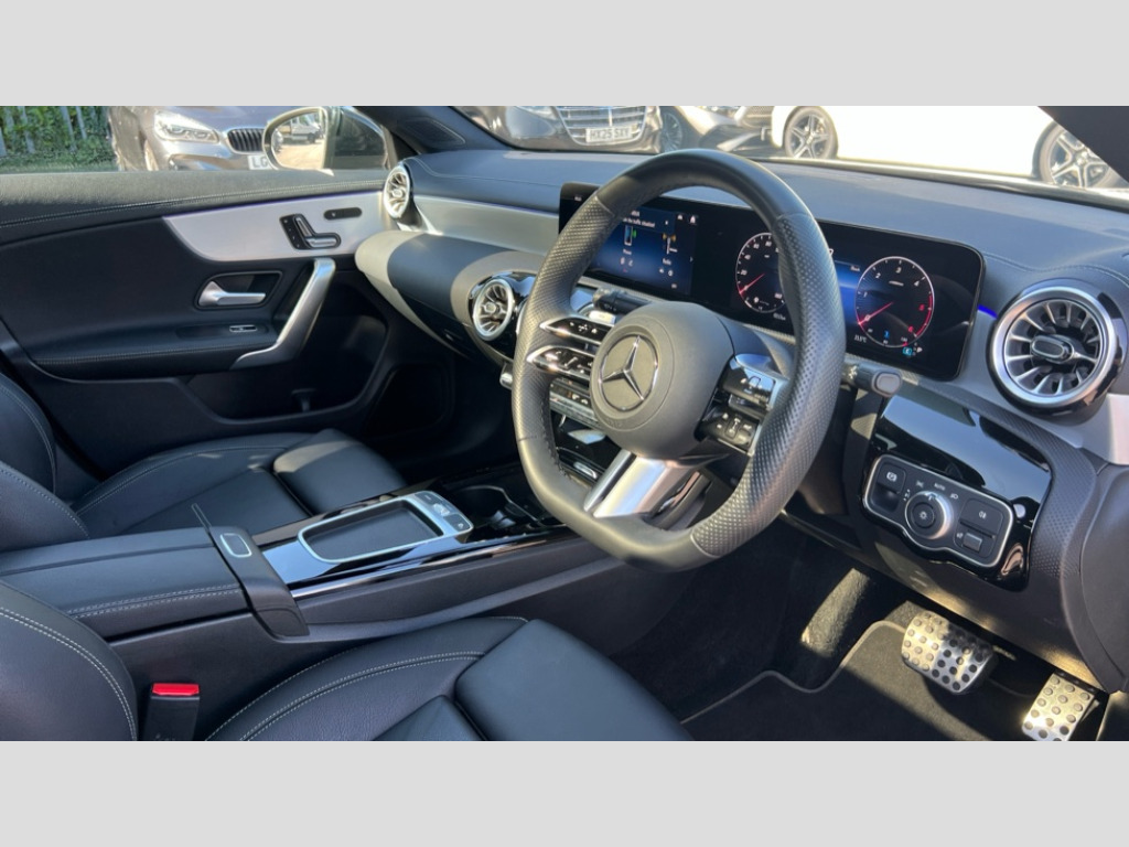 Mercedes-Benz CLA Class CLA 220d AMG Line Premium Plus 4dr Tip Auto 10.25 inch Instrument display with digital cockpit, 10.25 inch touchscreen central media display, Active lane keeping assist, Attention assist - Monitors steering behaviour and long journey fatigue, Bluetooth connection, Car wash mode, Cruise control with limiter, Direct steer system, DYNAMIC SELECT with a choice of driving modes (ECO, Comfort, Sport and Individual), ECO start/stop function, Fingerprint sensor, Fluid level warning indicator for fuel, oil, coolant and washer fluid, Hard-disk navigation, Head up Display, Hey Mercedes Voice activation, Lamp failure indicator, MBUX augmented reality for navigation, Mercedes me connect including emergency call system, accident recovery, breakdown and maintenance management, Mercedes me remote services, Outside temperature gauge, Owners manual in English, Pre-installation of private car share, Radio aerial integrated into front and rear windshields, Service indicator (ASSYST), Smartphone integration with Apple CarPlay and Android auto, Traffic sign assist, Trip computer in multifunction display with current consumption indicator, Wireless charging in the front centre console, Comfort suspension with ride height lowering, Rear axle multi-link, Burmester lettering on the speakers, Burmester surround sound system (710W) with dolby atmos, speakers - 1 central, 1 woofer, 1 tweeter, 1 subwoofer with 60W, 2 in C pillar, DAB digital radio tuner, MBUX multimedia system, Pre installation for Mercedes Benz Link, Adaptive brake lights, AMG body styling with AMG front apron and rear apron and visible exhaust tailpipe in chrome trim elements, Body colour door handles, Electric panoramic sunroof with automatic tilt and convenience closing fuinctions, rain sensor auto closing and electronic roller sunblind, Electric windows, Electrically adjustable and heated door mirrors with integrated LED indicators, Exhaust system with 2 Visible tailpipe trim elements and rear apron with trim in chrome, Hand free access, Headlamp assist automatic headlamp activation, Heated glass rear windscreen + timer control, High level LED third brake light, Integrated LED daytime running lights, Interior mirror with black reading lamps and frameless, LED tail lamp, Multibeam LED headlamps with adaptive highbeam assist plus, Privacy glass with dark tinting on rear side windows and rear window, Radiator grille with Mercedes-Benz pattern in chrome and central Mercedes star, single louvre in high-gloss black with chrome inserts, Rain sensing windscreen wipers with two sensitivity settings, Rear boot, Rear fog lamp, Rear side wing doors, Variable front intermittent wipers, 3 seat bench in 2nd row, 3 twin spoke flattened multifunction steering wheel in nappa leather - horizontal twin spoke in high gloss black, vertical twin spoke in silver chrome, 40:20:40 split folding rear seat backrests, Air conditioning - Two zone thermotronic luxury automatic climate control with display, Air vents with surround in silver chrome, Automatic child seat recognition sensor, Black roof lining, Brushed stainless steel sports pedals with rubber studs, Electrically adjustable front memory seats including 4 way lumbar support, Floor mats with stitched AMG lettering, Fluorescent jacket, Front centre armrest with stowage, Galvanished gear shift paddles in silver chrome, Illuminated front door sills with Mercedes Benz lettering and changeable cover, Interior lighting - 64 colour Ambient lighting, Luggage net on driver/front passenger seat backrest, Manually height and reach adjustable steering column, Rear armrest with two integral cup holders for drinks, Rear head restraints, Single front passenger seat, Sport seats with fixed head restraints, Stowage compartment in centre console with retractable cover, Sunvisors with illuminated vanity mirrors, Twin front cupholders, Two outer rear seat isofix and top tether child seat fixing points, Keyless go comfort pack - CLA, Light and sight pack - CLA, Mirror pack - CLA, Night package - CLA, Parking pack with 360 degree camera - CLA, Seat comfort pack - CLA, USB package plus - CLA, Winter pack - CLA, Active bonnet pedestrain safety measure which detects an impact and raises bonnet by 65mm, Adaptive brake assist with hold function and hill start assist, Anti lock braking system (ABS) with brake assist, Black seat belts, Bonnet with power domes, Brake calipers with Mercedes-Benz lettering, Brake pad wear warning indicator, Childproof locks manually operated for rear doors and electrically operated for rear power windows, Crash responsive emergency lighting, Driver and front passenger head and sidebags, Driver and front passenger windowbags, Drivers knee airbag, Dual stage driver and front passenger airbags, Electric parking brake, Electronic stability programme with acceleration skid control, ESP curve dynamic assist, Exit warning, Front and rear seatbelt reminder, Front passenger seat occupancy sensor, Perforated front brake discs, Sports braking system, Three point rear seat belts, Tyre pressure monitoring system, Warning triangle and first aid kit, Alarm system with immobiliser and interior protection -Thatcham category 1, Guard 360 deg vehicle protection - tow away protection with visual, acoustic warning, interior monitoring, preinstallation for parking damage, Remote central locking and crash sensor with emergency opening function, Light aluminium with longitudinal grain interior trim, 19" AMG multi-spoke black painted light alloy wheels with high sheen rim finish, Summer tyres, Tirefit tyre sealant kit