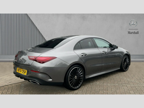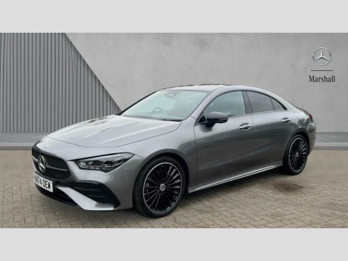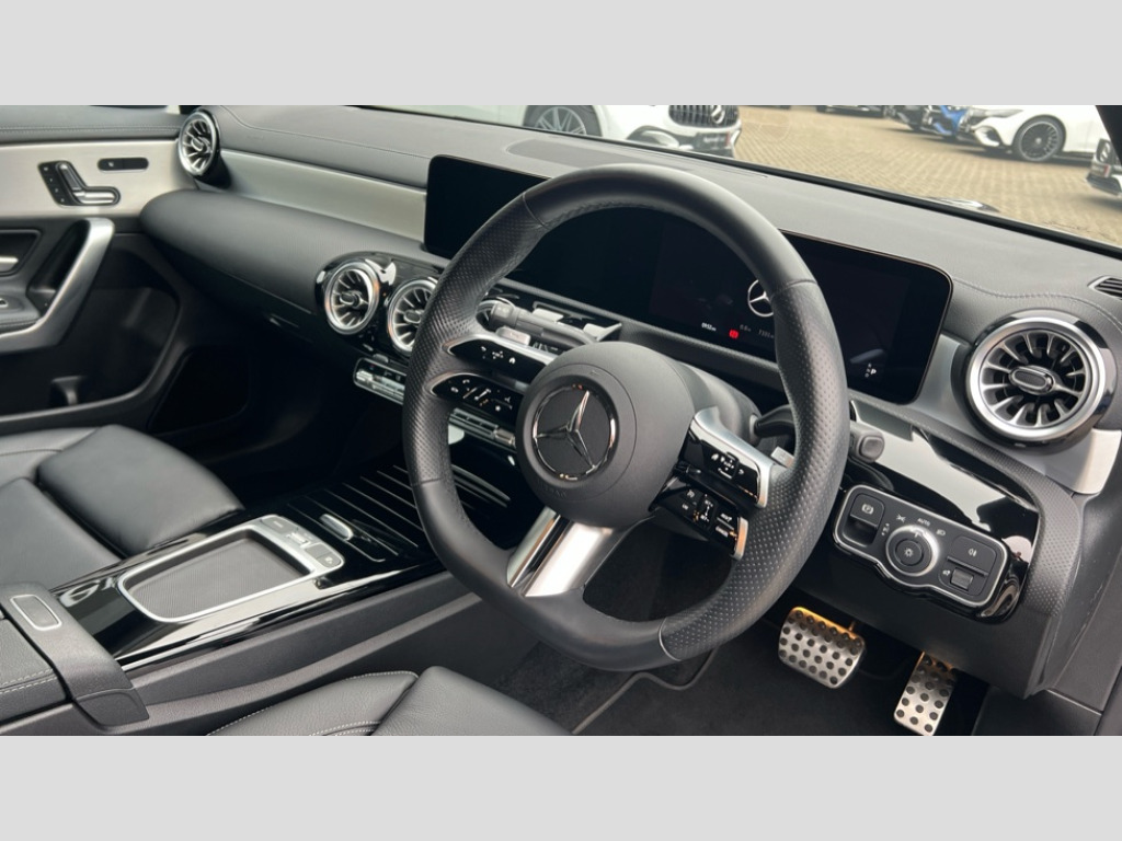 Mercedes-Benz CLA Class CLA 220d AMG Line Premium Plus 4dr Tip Auto 10.25 inch Instrument display with digital cockpit, 10.25 inch touchscreen central media display, Active lane keeping assist, Attention assist - Monitors steering behaviour and long journey fatigue, Bluetooth connection, Car wash mode, Cruise control with limiter, Direct steer system, DYNAMIC SELECT with a choice of driving modes (ECO, Comfort, Sport and Individual), ECO start/stop function, Fingerprint sensor, Fluid level warning indicator for fuel, oil, coolant and washer fluid, Hard-disk navigation, Head up Display, Hey Mercedes Voice activation, Lamp failure indicator, MBUX augmented reality for navigation, Mercedes me connect including emergency call system, accident recovery, breakdown and maintenance management, Mercedes me remote services, Outside temperature gauge, Owners manual in English, Pre-installation of private car share, Radio aerial integrated into front and rear windshields, Service indicator (ASSYST), Smartphone integration with Apple CarPlay and Android auto, Traffic sign assist, Trip computer in multifunction display with current consumption indicator, Wireless charging in the front centre console, Comfort suspension with ride height lowering, Rear axle multi-link, Burmester lettering on the speakers, Burmester surround sound system (710W) with dolby atmos, speakers - 1 central, 1 woofer, 1 tweeter, 1 subwoofer with 60W, 2 in C pillar, DAB digital radio tuner, MBUX multimedia system, Pre installation for Mercedes Benz Link, Adaptive brake lights, AMG body styling with AMG front apron and rear apron and visible exhaust tailpipe in chrome trim elements, Body colour door handles, Electric panoramic sunroof with automatic tilt and convenience closing fuinctions, rain sensor auto closing and electronic roller sunblind, Electric windows, Electrically adjustable and heated door mirrors with integrated LED indicators, Exhaust system with 2 Visible tailpipe trim elements and rear apron with trim in chrome, Hand free access, Headlamp assist automatic headlamp activation, Heated glass rear windscreen + timer control, High level LED third brake light, Integrated LED daytime running lights, Interior mirror with black reading lamps and frameless, LED tail lamp, Multibeam LED headlamps with adaptive highbeam assist plus, Privacy glass with dark tinting on rear side windows and rear window, Radiator grille with Mercedes-Benz pattern in chrome and central Mercedes star, single louvre in high-gloss black with chrome inserts, Rain sensing windscreen wipers with two sensitivity settings, Rear boot, Rear fog lamp, Rear side wing doors, Variable front intermittent wipers, 3 seat bench in 2nd row, 3 twin spoke flattened multifunction steering wheel in nappa leather - horizontal twin spoke in high gloss black, vertical twin spoke in silver chrome, 40:20:40 split folding rear seat backrests, Air conditioning - Two zone thermotronic luxury automatic climate control with display, Air vents with surround in silver chrome, Automatic child seat recognition sensor, Black roof lining, Brushed stainless steel sports pedals with rubber studs, Electrically adjustable front memory seats including 4 way lumbar support, Floor mats with stitched AMG lettering, Fluorescent jacket, Front centre armrest with stowage, Galvanished gear shift paddles in silver chrome, Illuminated front door sills with Mercedes Benz lettering and changeable cover, Interior lighting - 64 colour Ambient lighting, Luggage net on driver/front passenger seat backrest, Manually height and reach adjustable steering column, Rear armrest with two integral cup holders for drinks, Rear head restraints, Single front passenger seat, Sport seats with fixed head restraints, Stowage compartment in centre console with retractable cover, Sunvisors with illuminated vanity mirrors, Twin front cupholders, Two outer rear seat isofix and top tether child seat fixing points, Keyless go comfort pack - CLA, Light and sight pack - CLA, Mirror pack - CLA, Night package - CLA, Parking pack with 360 degree camera - CLA, Seat comfort pack - CLA, USB package plus - CLA, Winter pack - CLA, Active bonnet pedestrain safety measure which detects an impact and raises bonnet by 65mm, Adaptive brake assist with hold function and hill start assist, Anti lock braking system (ABS) with brake assist, Black seat belts, Bonnet with power domes, Brake calipers with Mercedes-Benz lettering, Brake pad wear warning indicator, Childproof locks manually operated for rear doors and electrically operated for rear power windows, Crash responsive emergency lighting, Driver and front passenger head and sidebags, Driver and front passenger windowbags, Drivers knee airbag, Dual stage driver and front passenger airbags, Electric parking brake, Electronic stability programme with acceleration skid control, ESP curve dynamic assist, Exit warning, Front and rear seatbelt reminder, Front passenger seat occupancy sensor, Perforated front brake discs, Sports braking system, Three point rear seat belts, Tyre pressure monitoring system, Warning triangle and first aid kit, Alarm system with immobiliser and interior protection -Thatcham category 1, Guard 360 deg vehicle protection - tow away protection with visual, acoustic warning, interior monitoring, preinstallation for parking damage, Remote central locking and crash sensor with emergency opening function, Light aluminium with longitudinal grain interior trim, 19" AMG multi-spoke black painted light alloy wheels with high sheen rim finish, Summer tyres, Tirefit tyre sealant kit