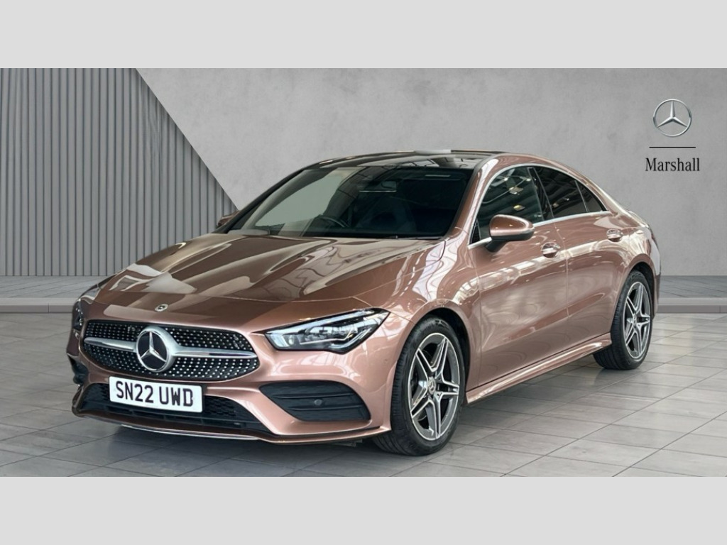 Mercedes-Benz CLA Class CLA 220d AMG Line Premium Plus 4dr Tip Auto 10.25 inch Instrument display with digital cockpit, 10.25 inch touchscreen central media display, Attention assist - Monitors steering behaviour and long journey fatigue, Bluetooth connection, Car wash mode, DYNAMIC SELECT with a choice of driving modes (ECO, Comfort, Sport and Individual), ECO start/stop function, Fluid level warning indicator for fuel, oil, coolant and washer fluid, Hard-disk navigation, Hey Mercedes Voice activation, Lamp failure indicator, Mercedes me connect including emergency call system, accident recovery, breakdown and maintenance management, Mercedes me remote services, Outside temperature gauge, Owners manual and service booklet in English, Pre-installation of private car share, Preinstallation for Mercedes Benz link, Radio aerial integrated into front and rear windshields, Service indicator (ASSYST), Smartphone integration with Apple CarPlay and Android auto, Traffic sign assist, Trip computer in multifunction display with current consumption indicator, Lowered comfort suspension, Rear axle multi-link, DAB digital radio tuner, MBUX multimedia system with DAB digital radio and touchpad including satellite navigation, Mid-range sound system, USB (type C) ports (2) in stowage compartment and 1 in front of centre console, Adaptive brake lights, AMG body styling with AMG front apron and rear apron and visible exhaust tailpipe in chrome trim elements, AMG bodystyling side skirts, Auto headlights, Body colour bumpers, Body colour door handles, Chrome beltline strips, Chrome weather strip, Diamond radiator grille pins in chrome with silver painted louvres and chrome insert, Electric panoramic sliding sunroof, Electric windows, Electrically adjustable and heated door mirrors with integrated LED indicators, Exhaust system with 2 Visible tailpipe trim elements and rear apron with trim in chrome, Headlamp assist automatic headlamp activation, Heated glass rear windscreen + timer control, High level LED third brake light, Integrated LED daytime running lights, Interior mirror with black reading lamps and frameless, LED tail lamp, Multibeam LED headlamps with adaptive highbeam assist plus, Privacy glass with dark tinting on rear side windows and rear window, Rain sensing windscreen wipers with two sensitivity settings, Rear boot, Rear fog lamp, Rear side wing doors, Window line trim strip in chrome, 3 seat bench in 2nd row, 3 spoke flattened bottom nappa leather multifunction steering wheel with perforated leather in grip area, 40:20:40 split folding rear seat backrests, Air conditioning - Two zone thermotronic luxury automatic climate control with display, Air vents with surround in silver chrome, Automatic child seat recognition sensor, Black roof lining, Brushed stainless steel sports pedals with rubber studs, Floor mats with stitched AMG lettering, Front centre armrest with stowage, Galvanished gear shift paddles on steering wheel, Heated front seats, Illuminated front door sills with changeable cover, Illuminated glove compartment stowage, Interior lighting - 64 colour Ambient lighting, Luggage net on driver/front passenger seat backrest, Manually height and reach adjustable steering column, Rear armrest with two integral cup holders for drinks, Rear head restraints, Single front passenger seat, Sport seats with fixed head restraints, Stowage compartment in centre console with retractable cover, Sunvisors with illuminated vanity mirrors, Touchpad on center console, Twin front cupholders, Two outer rear seat isofix and top tether child seat fixing points, Keyless go pack - CLA, Light and sight pack - CLA, Mirror pack - CLA, Parking package - CLA, Seat comfort pack - CLA, Active bonnet pedestrain safety measure which detects an impact and raises bonnet by 65mm, Adaptive brake assist with hold function and hill start assist, Anti-lock braking system (ABS), Black seat belts, Bonnet with power domes, Brake pad wear warning indicator, Childproof locks manually operated for rear doors and electrically operated for rear power windows, Crash responsive emergency lighting, Driver and front passenger head and sidebags, Driver and front passenger windowbags, Drivers knee airbag, Dual stage driver and front passenger airbags, Electric parking brake, Electronic stability programme with acceleration skid control, ESP curve dynamic assist, Front and rear seatbelt reminder, Front passenger seat occupancy sensor, Three point rear seat belts, Tyre pressure monitoring system, Warning triangle and first aid kit, Remote central locking and crash sensor with emergency opening function, Urban guard vehicle protection system with immobiliser and interior protection, Light aluminium with longitudinal grain interior trim, 18" 5 twin spoke design alloy wheels painted in titanium grey with high sheen finish, Summer tyres, Tirefit tyre sealant kit