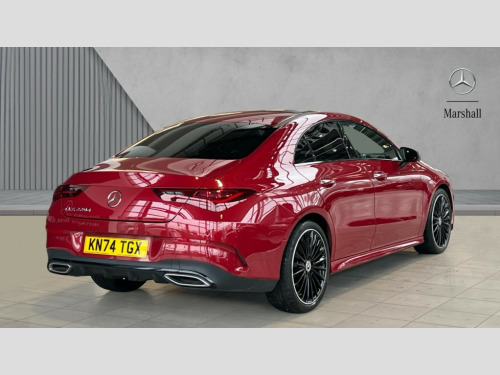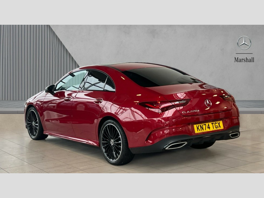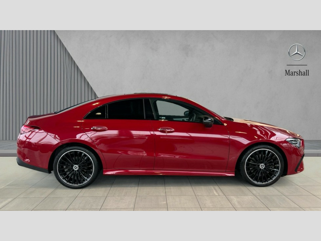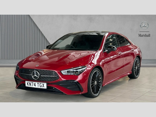 Mercedes-Benz CLA Class CLA 220d AMG Line Premium Plus 4dr Tip Auto 10.25 inch Instrument display with digital cockpit, 10.25 inch touchscreen central media display, Active lane keeping assist, Attention assist - Monitors steering behaviour and long journey fatigue, Bluetooth connection, Car wash mode, Cruise control with limiter, Direct steer system, DYNAMIC SELECT with a choice of driving modes (ECO, Comfort, Sport and Individual), ECO start/stop function, Fingerprint sensor, Fluid level warning indicator for fuel, oil, coolant and washer fluid, Hard-disk navigation, Head up Display, Hey Mercedes Voice activation, Lamp failure indicator, MBUX augmented reality for navigation, Mercedes me connect including emergency call system, accident recovery, breakdown and maintenance management, Mercedes me remote services, Outside temperature gauge, Owners manual in English, Pre-installation of private car share, Radio aerial integrated into front and rear windshields, Service indicator (ASSYST), Smartphone integration with Apple CarPlay and Android auto, Traffic sign assist, Trip computer in multifunction display with current consumption indicator, Wireless charging in the front centre console, Comfort suspension with ride height lowering, Rear axle multi-link, Burmester lettering on the speakers, Burmester surround sound system (710W) with dolby atmos, speakers - 1 central, 1 woofer, 1 tweeter, 1 subwoofer with 60W, 2 in C pillar, DAB digital radio tuner, MBUX multimedia system, Pre installation for Mercedes Benz Link, Adaptive brake lights, AMG body styling with AMG front apron and rear apron and visible exhaust tailpipe in chrome trim elements, Body colour door handles, Electric panoramic sunroof with automatic tilt and convenience closing fuinctions, rain sensor auto closing and electronic roller sunblind, Electric windows, Electrically adjustable and heated door mirrors with integrated LED indicators, Exhaust system with 2 Visible tailpipe trim elements and rear apron with trim in chrome, Hand free access, Headlamp assist automatic headlamp activation, Heated glass rear windscreen + timer control, High level LED third brake light, Integrated LED daytime running lights, Interior mirror with black reading lamps and frameless, LED tail lamp, Multibeam LED headlamps with adaptive highbeam assist plus, Privacy glass with dark tinting on rear side windows and rear window, Radiator grille with Mercedes-Benz pattern in chrome and central Mercedes star, single louvre in high-gloss black with chrome inserts, Rain sensing windscreen wipers with two sensitivity settings, Rear boot, Rear fog lamp, Rear side wing doors, Variable front intermittent wipers, 3 seat bench in 2nd row, 3 twin spoke flattened multifunction steering wheel in nappa leather - horizontal twin spoke in high gloss black, vertical twin spoke in silver chrome, 40:20:40 split folding rear seat backrests, Air conditioning - Two zone thermotronic luxury automatic climate control with display, Air vents with surround in silver chrome, Automatic child seat recognition sensor, Black roof lining, Brushed stainless steel sports pedals with rubber studs, Electrically adjustable front memory seats including 4 way lumbar support, Floor mats with stitched AMG lettering, Fluorescent jacket, Front centre armrest with stowage, Galvanished gear shift paddles in silver chrome, Illuminated front door sills with Mercedes Benz lettering and changeable cover, Interior lighting - 64 colour Ambient lighting, Luggage net on driver/front passenger seat backrest, Manually height and reach adjustable steering column, Rear armrest with two integral cup holders for drinks, Rear head restraints, Single front passenger seat, Sport seats with fixed head restraints, Stowage compartment in centre console with retractable cover, Sunvisors with illuminated vanity mirrors, Twin front cupholders, Two outer rear seat isofix and top tether child seat fixing points, Keyless go comfort pack - CLA, Light and sight pack - CLA, Mirror pack - CLA, Night package - CLA, Parking pack with 360 degree camera - CLA, Seat comfort pack - CLA, USB package plus - CLA, Winter pack - CLA, Active bonnet pedestrain safety measure which detects an impact and raises bonnet by 65mm, Adaptive brake assist with hold function and hill start assist, Anti lock braking system (ABS) with brake assist, Black seat belts, Bonnet with power domes, Brake calipers with Mercedes-Benz lettering, Brake pad wear warning indicator, Childproof locks manually operated for rear doors and electrically operated for rear power windows, Crash responsive emergency lighting, Driver and front passenger head and sidebags, Driver and front passenger windowbags, Drivers knee airbag, Dual stage driver and front passenger airbags, Electric parking brake, Electronic stability programme with acceleration skid control, ESP curve dynamic assist, Exit warning, Front and rear seatbelt reminder, Front passenger seat occupancy sensor, Perforated front brake discs, Sports braking system, Three point rear seat belts, Tyre pressure monitoring system, Warning triangle and first aid kit, Alarm system with immobiliser and interior protection -Thatcham category 1, Guard 360 deg vehicle protection - tow away protection with visual, acoustic warning, interior monitoring, preinstallation for parking damage, Remote central locking and crash sensor with emergency opening function, Light aluminium with longitudinal grain interior trim, 19" AMG multi-spoke black painted light alloy wheels with high sheen rim finish, Summer tyres, Tirefit tyre sealant kit