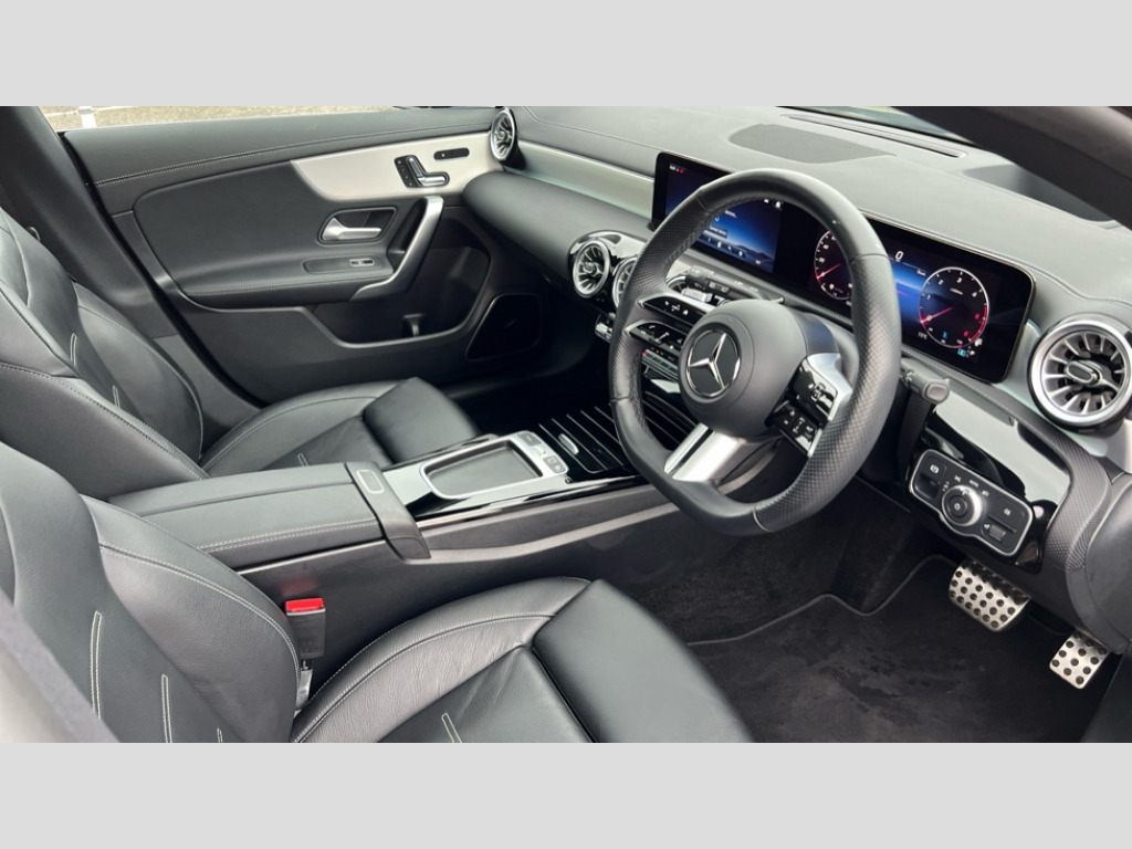 Mercedes-Benz CLA Class CLA 220d AMG Line Premium Plus 5dr Tip Auto 10.25 inch Instrument display with digital cockpit, 10.25 inch touchscreen central media display, Active lane keeping assist, Attention assist - Monitors steering behaviour and long journey fatigue, Bluetooth connection, Car wash mode, Cruise control with limiter, Direct steer system, DYNAMIC SELECT with a choice of driving modes (ECO, Comfort, Sport and Individual), ECO start/stop function, Fingerprint sensor, Fluid level warning indicator for fuel, oil, coolant and washer fluid, Hard-disk navigation, Head up Display, Hey Mercedes Voice activation, Lamp failure indicator, MBUX augmented reality for navigation, Mercedes me connect including emergency call system, accident recovery, breakdown and maintenance management, Mercedes me remote services, Outside temperature gauge, Owners manual in English, Pre-installation of private car share, Radio aerial integrated into front and rear windshields, Service indicator (ASSYST), Smartphone integration with Apple CarPlay and Android auto, Tailgate, Traffic sign assist, Trip computer in multifunction display with current consumption indicator, Wireless charging in the front centre console, Comfort suspension with ride height lowering, Rear axle multi-link, Burmester lettering on the speakers, Burmester surround sound system (710W) with dolby atmos, speakers - 1 central, 1 woofer, 1 tweeter, 1 subwoofer with 60W, 2 in C pillar, DAB digital radio tuner, MBUX multimedia system, Pre installation for Mercedes Benz Link, Adaptive brake lights, AMG body styling with AMG front apron and rear apron and visible exhaust tailpipe in chrome trim elements, Body colour door handles, Electric panoramic sunroof with automatic tilt and convenience closing fuinctions, rain sensor auto closing and electronic roller sunblind, Electric windows, Electrically adjustable and heated door mirrors with integrated LED indicators, Exhaust system with 2 Visible tailpipe trim elements and rear apron with trim in chrome, Hand free access, Headlamp assist automatic headlamp activation, Heated glass rear windscreen + timer control, High level LED third brake light, Integrated LED daytime running lights, Interior mirror with black reading lamps and frameless, LED tail lamp, Multibeam LED headlamps with adaptive highbeam assist plus, Privacy glass with dark tinting on rear side windows and rear window, Radiator grille with Mercedes-Benz pattern in chrome and central Mercedes star, single louvre in high-gloss black with chrome inserts, Rain sensing windscreen wipers with two sensitivity settings, Rear fog lamp, Rear side wing doors, Rear wiper, Variable front intermittent wipers, 3 seat bench in 2nd row, 3 twin spoke flattened multifunction steering wheel in nappa leather - horizontal twin spoke in high gloss black, vertical twin spoke in silver chrome, 40:20:40 split folding rear seat backrests, Air conditioning - Two zone thermotronic luxury automatic climate control with display, Air vents with surround in silver chrome, Automatic child seat recognition sensor, Black roof lining, Brushed stainless steel sports pedals with rubber studs, Electrically adjustable front memory seats including 4 way lumbar support, Floor mats with stitched AMG lettering, Fluorescent jacket, Front centre armrest with stowage, Galvanished gear shift paddles in silver chrome, Illuminated front door sills with Mercedes Benz lettering and changeable cover, Interior lighting - 64 colour Ambient lighting, Luggage net on driver/front passenger seat backrest, Manually height and reach adjustable steering column, Rear armrest with two integral cup holders for drinks, Rear head restraints, Single front passenger seat, Sport seats with fixed head restraints, Stowage compartment in centre console with retractable cover, Sunvisors with illuminated vanity mirrors, Twin front cupholders, Two outer rear seat isofix and top tether child seat fixing points, Keyless go comfort pack - CLA with easy pack tailgate, Light and sight pack - CLA, Mirror pack - CLA, Night package - CLA, Parking pack with 360 degree camera - CLA, Seat comfort pack - CLA, USB package plus - CLA, Winter pack - CLA, Active bonnet pedestrain safety measure which detects an impact and raises bonnet by 65mm, Adaptive brake assist with hold function and hill start assist, Anti lock braking system (ABS) with brake assist, Black seat belts, Bonnet with power domes, Brake calipers with Mercedes-Benz lettering, Brake pad wear warning indicator, Childproof locks manually operated for rear doors and electrically operated for rear power windows, Crash responsive emergency lighting, Driver and front passenger head and sidebags, Driver and front passenger windowbags, Drivers knee airbag, Dual stage driver and front passenger airbags, Electric parking brake, Electronic stability programme with acceleration skid control, ESP curve dynamic assist, Exit warning, Front and rear seatbelt reminder, Front passenger seat occupancy sensor, Perforated front brake discs, Sports braking system, Three point rear seat belts, Tyre pressure monitoring system, Warning triangle and first aid kit, Alarm system with immobiliser and interior protection -Thatcham category 1, Guard 360 deg vehicle protection - tow away protection with visual, acoustic warning, interior monitoring, preinstallation for parking damage, Remote central locking and crash sensor with emergency opening function, Light aluminium with longitudinal grain interior trim, 19" AMG multi-spoke black painted light alloy wheels with high sheen rim finish, Summer tyres, Tirefit tyre sealant kit