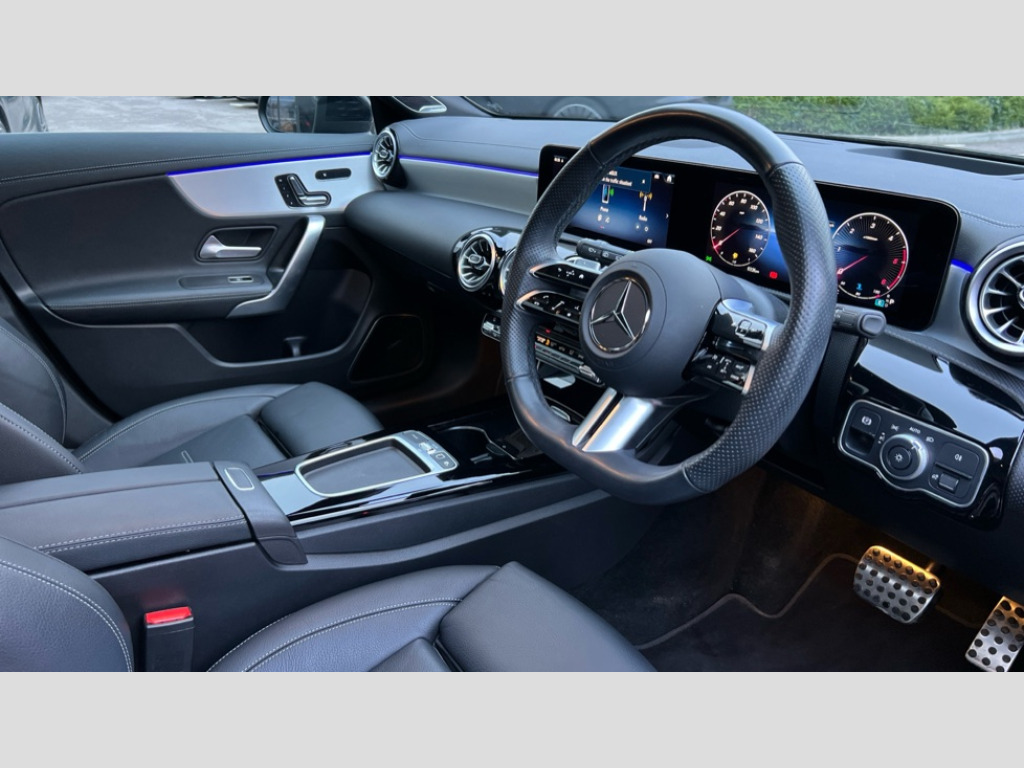 Mercedes-Benz CLA Class CLA 220d AMG Line Premium Plus 5dr Tip Auto 10.25 inch Instrument display with digital cockpit, 10.25 inch touchscreen central media display, Active lane keeping assist, Attention assist - Monitors steering behaviour and long journey fatigue, Bluetooth connection, Car wash mode, Cruise control with limiter, Direct steer system, DYNAMIC SELECT with a choice of driving modes (ECO, Comfort, Sport and Individual), ECO start/stop function, Fingerprint sensor, Fluid level warning indicator for fuel, oil, coolant and washer fluid, Hard-disk navigation, Head up Display, Hey Mercedes Voice activation, Lamp failure indicator, MBUX augmented reality for navigation, Mercedes me connect including emergency call system, accident recovery, breakdown and maintenance management, Mercedes me remote services, Outside temperature gauge, Owners manual in English, Pre-installation of private car share, Radio aerial integrated into front and rear windshields, Service indicator (ASSYST), Smartphone integration with Apple CarPlay and Android auto, Tailgate, Traffic sign assist, Trip computer in multifunction display with current consumption indicator, Wireless charging in the front centre console, Comfort suspension with ride height lowering, Rear axle multi-link, Burmester lettering on the speakers, Burmester surround sound system (710W) with dolby atmos, speakers - 1 central, 1 woofer, 1 tweeter, 1 subwoofer with 60W, 2 in C pillar, DAB digital radio tuner, MBUX multimedia system, Pre installation for Mercedes Benz Link, Adaptive brake lights, AMG body styling with AMG front apron and rear apron and visible exhaust tailpipe in chrome trim elements, Body colour door handles, Electric panoramic sunroof with automatic tilt and convenience closing fuinctions, rain sensor auto closing and electronic roller sunblind, Electric windows, Electrically adjustable and heated door mirrors with integrated LED indicators, Exhaust system with 2 Visible tailpipe trim elements and rear apron with trim in chrome, Hand free access, Headlamp assist automatic headlamp activation, Heated glass rear windscreen + timer control, High level LED third brake light, Integrated LED daytime running lights, Interior mirror with black reading lamps and frameless, LED tail lamp, Multibeam LED headlamps with adaptive highbeam assist plus, Privacy glass with dark tinting on rear side windows and rear window, Radiator grille with Mercedes-Benz pattern in chrome and central Mercedes star, single louvre in high-gloss black with chrome inserts, Rain sensing windscreen wipers with two sensitivity settings, Rear fog lamp, Rear side wing doors, Rear wiper, Variable front intermittent wipers, 3 seat bench in 2nd row, 3 twin spoke flattened multifunction steering wheel in nappa leather - horizontal twin spoke in high gloss black, vertical twin spoke in silver chrome, 40:20:40 split folding rear seat backrests, Air conditioning - Two zone thermotronic luxury automatic climate control with display, Air vents with surround in silver chrome, Automatic child seat recognition sensor, Black roof lining, Brushed stainless steel sports pedals with rubber studs, Electrically adjustable front memory seats including 4 way lumbar support, Floor mats with stitched AMG lettering, Fluorescent jacket, Front centre armrest with stowage, Galvanished gear shift paddles in silver chrome, Illuminated front door sills with Mercedes Benz lettering and changeable cover, Interior lighting - 64 colour Ambient lighting, Luggage net on driver/front passenger seat backrest, Manually height and reach adjustable steering column, Rear armrest with two integral cup holders for drinks, Rear head restraints, Single front passenger seat, Sport seats with fixed head restraints, Stowage compartment in centre console with retractable cover, Sunvisors with illuminated vanity mirrors, Twin front cupholders, Two outer rear seat isofix and top tether child seat fixing points, Keyless go comfort pack - CLA with easy pack tailgate, Light and sight pack - CLA, Mirror pack - CLA, Night package - CLA, Parking pack with 360 degree camera - CLA, Seat comfort pack - CLA, USB package plus - CLA, Winter pack - CLA, Active bonnet pedestrain safety measure which detects an impact and raises bonnet by 65mm, Adaptive brake assist with hold function and hill start assist, Anti lock braking system (ABS) with brake assist, Black seat belts, Bonnet with power domes, Brake calipers with Mercedes-Benz lettering, Brake pad wear warning indicator, Childproof locks manually operated for rear doors and electrically operated for rear power windows, Crash responsive emergency lighting, Driver and front passenger head and sidebags, Driver and front passenger windowbags, Drivers knee airbag, Dual stage driver and front passenger airbags, Electric parking brake, Electronic stability programme with acceleration skid control, ESP curve dynamic assist, Exit warning, Front and rear seatbelt reminder, Front passenger seat occupancy sensor, Perforated front brake discs, Sports braking system, Three point rear seat belts, Tyre pressure monitoring system, Warning triangle and first aid kit, Alarm system with immobiliser and interior protection -Thatcham category 1, Guard 360 deg vehicle protection - tow away protection with visual, acoustic warning, interior monitoring, preinstallation for parking damage, Remote central locking and crash sensor with emergency opening function, Light aluminium with longitudinal grain interior trim, 19" AMG multi-spoke black painted light alloy wheels with high sheen rim finish, Summer tyres, Tirefit tyre sealant kit