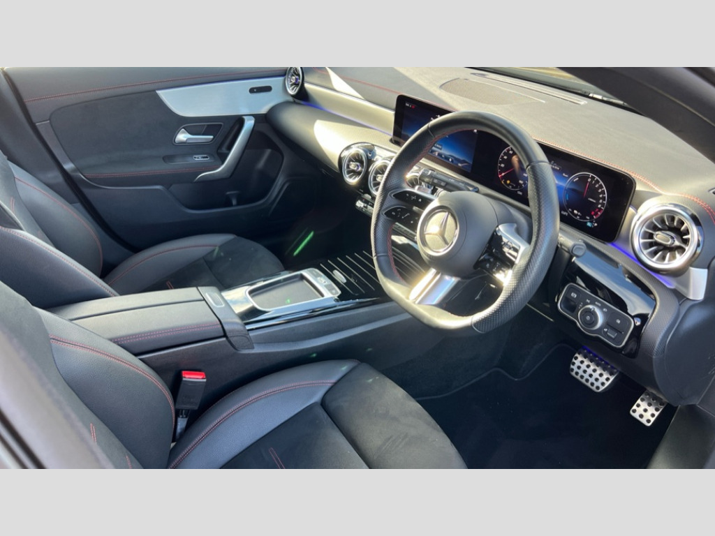 Mercedes-Benz CLA Class CLA 250e AMG Line Executive 5dr Tip Auto 10.25 inch Instrument display with digital cockpit, 10.25 inch touchscreen central media display, Acoustic ambient protection, Active lane keeping assist, Attention assist - Monitors steering behaviour and long journey fatigue, Bluetooth connection, Car wash mode, Cruise control with limiter, Direct steer system, DYNAMIC SELECT with a choice of driving modes (ECO, Comfort, Sport and Individual), ECO start/stop function, Fluid level warning indicator for fuel, oil, coolant and washer fluid, Hard-disk navigation, Hey Mercedes Voice activation, Lamp failure indicator, Mercedes me connect including emergency call system, accident recovery, breakdown and maintenance management, Mercedes me remote and charging services plus, Outside temperature gauge, Owners manual in English, Pre-installation of private car share, Radio aerial integrated into front and rear windshields, Service indicator (ASSYST), Smartphone integration with Apple CarPlay and Android auto, Speed limit assist, Tailgate, Trip computer in multifunction display with current consumption indicator, Wireless charging in the front centre console, Charging system - AC charging system rated at 11kW, Charging system - DC charging system rated at 22kW, Comfort suspension, Mode 3 charging cable for wallbox and public charging stations with 5m upto 11kW, Rear axle torsion beam, DAB digital radio tuner, MBUX multimedia system, Mercedes Benz sound system (100 W) with 6 speakers, Pre installation for Mercedes Benz Link, Adaptive brake lights, AMG body styling with AMG front apron and rear apron and visible exhaust tailpipe in chrome trim elements, Body colour door handles, Chrome beltline strips, Electric windows, Electrically adjustable and heated door mirrors with integrated LED indicators, Exhaust system with 2 Visible tailpipe trim elements and rear apron with trim in chrome, Hand free access, Headlamp assist automatic headlamp activation, Heated glass rear windscreen + timer control, High level LED third brake light, Interior mirror with black reading lamps and frameless, LED high performance headlamps with integrated LED daytime running lights and adaptive highbeam assist, LED tail lamp, Privacy glass with dark tinting on rear side windows and rear window, Radiator grille with Mercedes-Benz pattern in chrome with central Mercedes star and single louvre with chrome inserts, Rain sensing windscreen wipers with two sensitivity settings, Rear fog lamp, Rear side wing doors, Rear wiper, Variable front intermittent wipers, Window line trim strip in high gloss aluminium, 3 seat bench in 2nd row, 3 twin spoke flattened multifunction steering wheel in nappa leather - horizontal twin spoke in high gloss black, vertical twin spoke in silver chrome, 4 way lumbar support, 40:20:40 split folding rear seat backrests, Air conditioning - One zone THERMATIC automatic climate control with automatically controlled air distribution, Air vents with surround in silver chrome, Artico man-made leather/Microcut microfibre upholstery, Automatic child seat recognition sensor, Black roof lining, Brushed stainless steel sports pedals with rubber studs, Charging socket, Floor mats with stitched AMG lettering, Fluorescent jacket, Front centre armrest with stowage, Galvanished gear shift paddles in silver chrome, Heated front seats, Interior lighting - 64 colour Ambient lighting, Luggage net on driver/front passenger seat backrest, Manually height and reach adjustable steering column, Pre-entry climate control, Rear head restraints, Single front passenger seat, Sport seats with fixed head restraints, Stowage compartment in centre console with retractable cover, Sunvisors with illuminated vanity mirrors, Twin front cupholders, Two outer rear seat isofix and top tether child seat fixing points, Keyless go comfort pack - CLA with easy pack tailgate, Light and sight pack - CLA, Mirror pack - CLA, Parking pack with reversing camera - CLA, Seat comfort pack - CLA, USB package plus - CLA, Active bonnet pedestrain safety measure which detects an impact and raises bonnet by 65mm, Active brake assist includes forward collision warning system with autonomous braking, Adaptive brake assist with hold function and hill start assist, Anti lock braking system (ABS) with brake assist, Black seat belts, Bonnet with power domes, Brake calipers with Mercedes-Benz lettering, Brake pad wear warning indicator, Childproof locks manually operated for rear doors and electrically operated for rear power windows, Crash responsive emergency lighting, Driver and front passenger head and sidebags, Driver and front passenger windowbags, Drivers knee airbag, Dual stage driver and front passenger airbags, Electric parking brake, Electronic stability programme with acceleration skid control, ESP curve dynamic assist, Front and rear seatbelt reminder, Front passenger seat occupancy sensor, Perforated front brake discs, Radar-based recuperation, Sports braking system, Three point rear seat belts, Tyre pressure monitoring system, Warning triangle and first aid kit, Alarm system with immobiliser and interior protection -Thatcham category 1, Guard 360 deg vehicle protection - tow away protection with visual, acoustic warning, interior monitoring, preinstallation for parking damage, Remote central locking and crash sensor with emergency opening function, Light aluminium with longitudinal grain interior trim, 18" AMG 5 twin spoke light alloy wheels painted in termolite grey with high sheen finish, Summer tyres, Tirefit tyre sealant kit