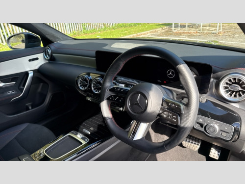 Mercedes-Benz CLA Class CLA 250e AMG Line Premium 4dr Tip Auto 10.25 inch Instrument display with digital cockpit, 10.25 inch touchscreen central media display, Acoustic ambient protection, Active lane keeping assist, Attention assist - Monitors steering behaviour and long journey fatigue, Blind spot assist, Bluetooth connection, Car wash mode, Cruise control with limiter, Direct steer system, DYNAMIC SELECT with a choice of driving modes (ECO, Comfort, Sport and Individual), ECO start/stop function, Fingerprint sensor, Fluid level warning indicator for fuel, oil, coolant and washer fluid, Hard-disk navigation, Hey Mercedes Voice activation, Lamp failure indicator, MBUX augmented reality for navigation, Mercedes me connect including emergency call system, accident recovery, breakdown and maintenance management, Mercedes me remote and charging services plus, Outside temperature gauge, Owners manual in English, Pre-installation of private car share, Radio aerial integrated into front and rear windshields, Service indicator (ASSYST), Smartphone integration with Apple CarPlay and Android auto, Speed limit assist, Trip computer in multifunction display with current consumption indicator, Wireless charging in the front centre console, Charging system - AC charging system rated at 11kW, Charging system - DC charging system rated at 22kW, Comfort suspension, Mode 3 charging cable for wallbox and public charging stations with 5m upto 11kW, Rear axle torsion beam, DAB digital radio tuner, MBUX multimedia system, Mercedes Benz advanced sound system (225 W) with 10 speakers, 1 central speaker, speakers on doors, a tweeter on door,one sub woofer + boost amplifier, Pre installation for Mercedes Benz Link, Adaptive brake lights, AMG body styling with AMG front apron and rear apron and visible exhaust tailpipe in chrome trim elements, Body colour door handles, Electric windows, Electrically adjustable and heated door mirrors with integrated LED indicators, Exhaust system with 2 Visible tailpipe trim elements and rear apron with trim in chrome, Hand free access, Headlamp assist automatic headlamp activation, Heated glass rear windscreen + timer control, High gloss aluminium beltline strips, High level LED third brake light, Interior mirror with black reading lamps and frameless, LED high performance headlamps with integrated LED daytime running lights and adaptive highbeam assist, LED tail lamp, Privacy glass with dark tinting on rear side windows and rear window, Radiator grille with Mercedes-Benz pattern in chrome with central Mercedes star and single louvre with chrome inserts, Rain sensing windscreen wipers with two sensitivity settings, Rear boot, Rear fog lamp, Rear side wing doors, Variable front intermittent wipers, Window line trim strip in high gloss aluminium, 3 seat bench in 2nd row, 3 twin spoke flattened multifunction steering wheel in nappa leather - horizontal twin spoke in high gloss black, vertical twin spoke in silver chrome, 40:20:40 split folding rear seat backrests, Air conditioning - Two zone thermotronic luxury automatic climate control with display, Air vents with surround in silver chrome, Automatic child seat recognition sensor, Black roof lining, Brushed stainless steel sports pedals with rubber studs, Charging socket, Electrically adjustable front memory seats including 4 way lumbar support, Floor mats with stitched AMG lettering, Fluorescent jacket, Front centre armrest with stowage, Galvanished gear shift paddles in silver chrome, Heated front seats, Illuminated front door sills with Mercedes Benz lettering and changeable cover, Interior lighting - 64 colour Ambient lighting, Luggage net on driver/front passenger seat backrest, Manually height and reach adjustable steering column, Pre-entry climate control, Rear armrest with two integral cup holders for drinks, Rear head restraints, Single front passenger seat, Sport seats with fixed head restraints, Stowage compartment in centre console with retractable cover, Sunvisors with illuminated vanity mirrors, Twin front cupholders, Two outer rear seat isofix and top tether child seat fixing points, Keyless go comfort pack - CLA, Light and sight pack - CLA, Mirror pack - CLA, Parking pack with reversing camera - CLA, Seat comfort pack - CLA, USB package plus - CLA, Active bonnet pedestrain safety measure which detects an impact and raises bonnet by 65mm, Active brake assist includes forward collision warning system with autonomous braking, Adaptive brake assist with hold function and hill start assist, Anti lock braking system (ABS) with brake assist, Black seat belts, Bonnet with power domes, Brake calipers with Mercedes-Benz lettering, Brake pad wear warning indicator, Childproof locks manually operated for rear doors and electrically operated for rear power windows, Crash responsive emergency lighting, Driver and front passenger head and sidebags, Driver and front passenger windowbags, Drivers knee airbag, Dual stage driver and front passenger airbags, Electric parking brake, Electronic stability programme with acceleration skid control, ESP curve dynamic assist, Exit warning, Front and rear seatbelt reminder, Front passenger seat occupancy sensor, Perforated front brake discs, Radar-based recuperation, Sports braking system, Three point rear seat belts, Tyre pressure monitoring system, Warning triangle and first aid kit, Alarm system with immobiliser and interior protection -Thatcham category 1, Guard 360 deg vehicle protection - tow away protection with visual, acoustic warning, interior monitoring, preinstallation for parking damage, Remote central locking and crash sensor with emergency opening function, Light aluminium with longitudinal grain interior trim, 19" AMG multi spoke light alloy wheels painted in titanium grey with high sheen finish, Summer tyres, Tirefit tyre sealant kit