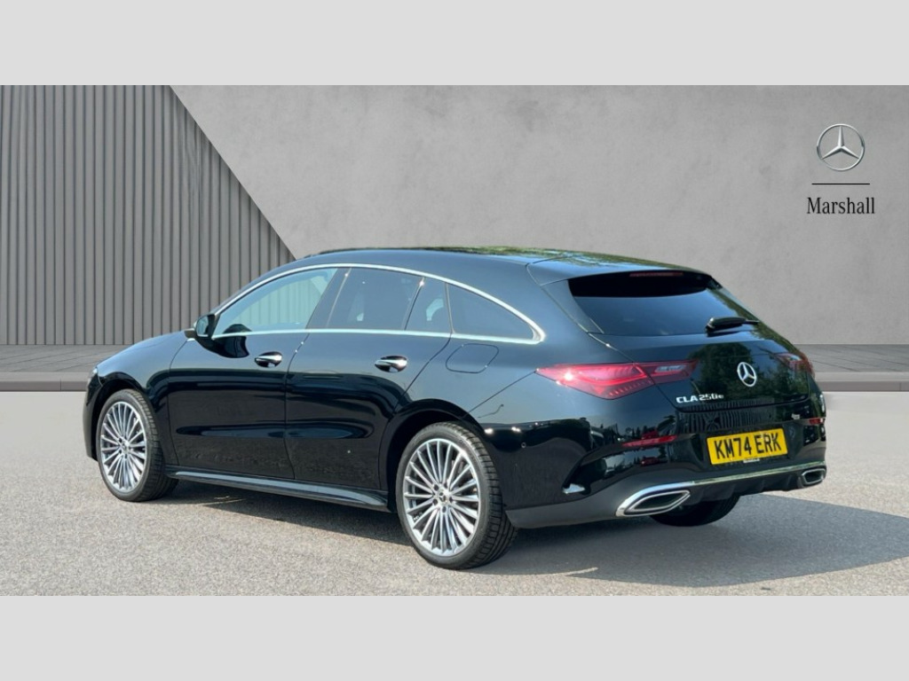 Mercedes-Benz CLA Class CLA 250e AMG Line Premium 5dr Tip Auto 10.25 inch Instrument display with digital cockpit, 10.25 inch touchscreen central media display, Acoustic ambient protection, Active lane keeping assist, Attention assist - Monitors steering behaviour and long journey fatigue, Blind spot assist, Bluetooth connection, Car wash mode, Cruise control with limiter, Direct steer system, DYNAMIC SELECT with a choice of driving modes (ECO, Comfort, Sport and Individual), ECO start/stop function, Fingerprint sensor, Fluid level warning indicator for fuel, oil, coolant and washer fluid, Hard-disk navigation, Hey Mercedes Voice activation, Lamp failure indicator, MBUX augmented reality for navigation, Mercedes me connect including emergency call system, accident recovery, breakdown and maintenance management, Mercedes me remote and charging services plus, Outside temperature gauge, Owners manual in English, Pre-installation of private car share, Radio aerial integrated into front and rear windshields, Service indicator (ASSYST), Smartphone integration with Apple CarPlay and Android auto, Speed limit assist, Tailgate, Trip computer in multifunction display with current consumption indicator, Wireless charging in the front centre console, Charging system - AC charging system rated at 11kW, Charging system - DC charging system rated at 22kW, Comfort suspension, Mode 3 charging cable for wallbox and public charging stations with 5m upto 11kW, Rear axle torsion beam, DAB digital radio tuner, MBUX multimedia system, Mercedes Benz advanced sound system (225 W) with 10 speakers, 1 central speaker, speakers on doors, a tweeter on door,one sub woofer + boost amplifier, Pre installation for Mercedes Benz Link, Adaptive brake lights, AMG body styling with AMG front apron and rear apron and visible exhaust tailpipe in chrome trim elements, Body colour door handles, Electric windows, Electrically adjustable and heated door mirrors with integrated LED indicators, Exhaust system with 2 Visible tailpipe trim elements and rear apron with trim in chrome, Hand free access, Headlamp assist automatic headlamp activation, Heated glass rear windscreen + timer control, High gloss aluminium beltline strips, High level LED third brake light, Interior mirror with black reading lamps and frameless, LED high performance headlamps with integrated LED daytime running lights and adaptive highbeam assist, LED tail lamp, Privacy glass with dark tinting on rear side windows and rear window, Radiator grille with Mercedes-Benz pattern in chrome with central Mercedes star and single louvre with chrome inserts, Rain sensing windscreen wipers with two sensitivity settings, Rear fog lamp, Rear side wing doors, Rear wiper, Variable front intermittent wipers, Window line trim strip in high gloss aluminium, 3 seat bench in 2nd row, 3 twin spoke flattened multifunction steering wheel in nappa leather - horizontal twin spoke in high gloss black, vertical twin spoke in silver chrome, 40:20:40 split folding rear seat backrests, Air conditioning - Two zone thermotronic luxury automatic climate control with display, Air vents with surround in silver chrome, Automatic child seat recognition sensor, Black roof lining, Brushed stainless steel sports pedals with rubber studs, Charging socket, Electrically adjustable front memory seats including 4 way lumbar support, Floor mats with stitched AMG lettering, Fluorescent jacket, Front centre armrest with stowage, Galvanished gear shift paddles in silver chrome, Heated front seats, Illuminated front door sills with Mercedes Benz lettering and changeable cover, Interior lighting - 64 colour Ambient lighting, Luggage net on driver/front passenger seat backrest, Manually height and reach adjustable steering column, Pre-entry climate control, Rear armrest with two integral cup holders for drinks, Rear head restraints, Single front passenger seat, Sport seats with fixed head restraints, Stowage compartment in centre console with retractable cover, Sunvisors with illuminated vanity mirrors, Twin front cupholders, Two outer rear seat isofix and top tether child seat fixing points, Keyless go comfort pack - CLA with easy pack tailgate, Light and sight pack - CLA, Mirror pack - CLA, Parking pack with reversing camera - CLA, Seat comfort pack - CLA, USB package plus - CLA, Active bonnet pedestrain safety measure which detects an impact and raises bonnet by 65mm, Active brake assist includes forward collision warning system with autonomous braking, Adaptive brake assist with hold function and hill start assist, Anti lock braking system (ABS) with brake assist, Black seat belts, Bonnet with power domes, Brake calipers with Mercedes-Benz lettering, Brake pad wear warning indicator, Childproof locks manually operated for rear doors and electrically operated for rear power windows, Crash responsive emergency lighting, Driver and front passenger head and sidebags, Driver and front passenger windowbags, Drivers knee airbag, Dual stage driver and front passenger airbags, Electric parking brake, Electronic stability programme with acceleration skid control, ESP curve dynamic assist, Exit warning, Front and rear seatbelt reminder, Front passenger seat occupancy sensor, Perforated front brake discs, Radar-based recuperation, Sports braking system, Three point rear seat belts, Tyre pressure monitoring system, Warning triangle and first aid kit, Alarm system with immobiliser and interior protection -Thatcham category 1, Guard 360 deg vehicle protection - tow away protection with visual, acoustic warning, interior monitoring, preinstallation for parking damage, Remote central locking and crash sensor with emergency opening function, Light aluminium with longitudinal grain interior trim, 19" AMG multi spoke light alloy wheels painted in titanium grey with high sheen finish, Summer tyres, Tirefit tyre sealant kit
