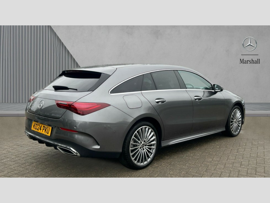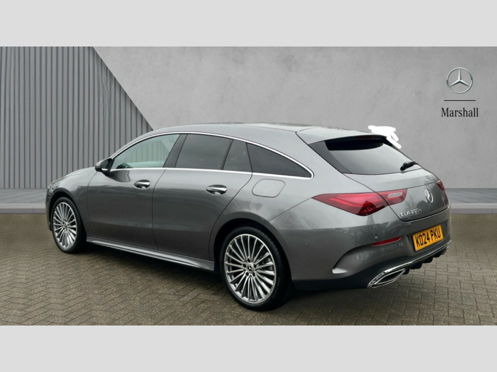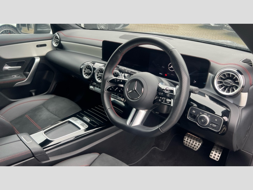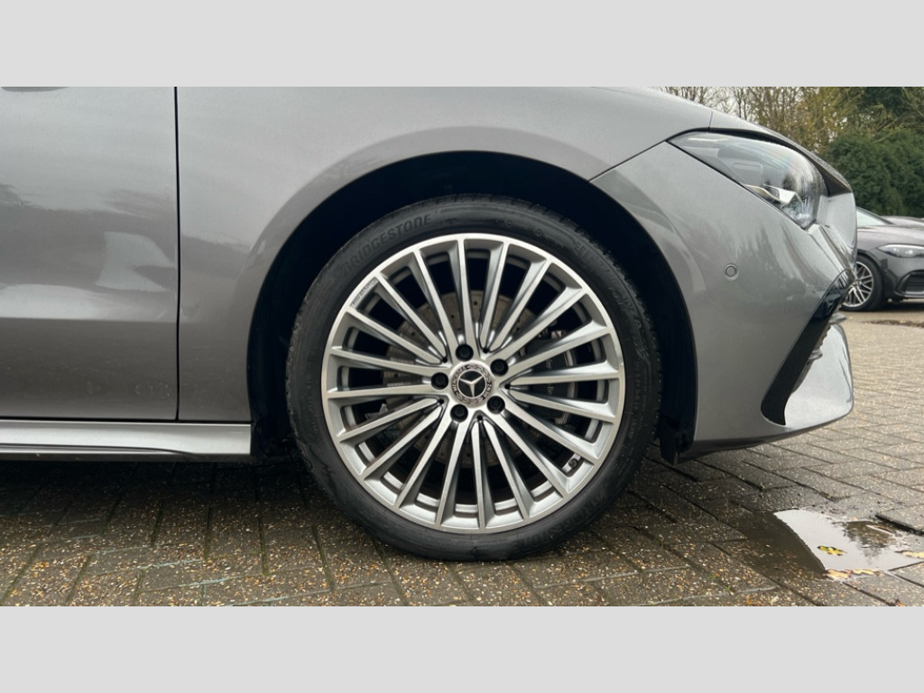 Mercedes-Benz CLA Class CLA 250e AMG Line Premium 5dr Tip Auto 10.25 inch Instrument display with digital cockpit, 10.25 inch touchscreen central media display, Acoustic ambient protection, Active lane keeping assist, Attention assist - Monitors steering behaviour and long journey fatigue, Blind spot assist, Bluetooth connection, Car wash mode, Cruise control with limiter, Direct steer system, DYNAMIC SELECT with a choice of driving modes (ECO, Comfort, Sport and Individual), ECO start/stop function, Fluid level warning indicator for fuel, oil, coolant and washer fluid, Hard-disk navigation, Hey Mercedes Voice activation, Lamp failure indicator, Mercedes me connect including emergency call system, accident recovery, breakdown and maintenance management, Mercedes me remote and charging services plus, Outside temperature gauge, Owners manual in English, Pre-installation of private car share, Radio aerial integrated into front and rear windshields, Service indicator (ASSYST), Smartphone integration with Apple CarPlay and Android auto, Speed limit assist, Tailgate, Trip computer in multifunction display with current consumption indicator, Wireless charging in the front centre console, Charging system - AC charging system rated at 11kW, Charging system - DC charging system rated at 22kW, Comfort suspension, Mode 3 charging cable for wallbox and public charging stations with 5m upto 11kW, Rear axle torsion beam, DAB digital radio tuner, MBUX multimedia system, Mercedes Benz advanced sound system (225 W) with 10 speakers, 1 central speaker, speakers on doors, a tweeter on door,one sub woofer + boost amplifier, Pre installation for Mercedes Benz Link, Adaptive brake lights, AMG body styling with AMG front apron and rear apron and visible exhaust tailpipe in chrome trim elements, Body colour door handles, Chrome beltline strips, Electric windows, Electrically adjustable and heated door mirrors with integrated LED indicators, Exhaust system with 2 Visible tailpipe trim elements and rear apron with trim in chrome, Hand free access, Headlamp assist automatic headlamp activation, Heated glass rear windscreen + timer control, High level LED third brake light, Interior mirror with black reading lamps and frameless, LED high performance headlamps with integrated LED daytime running lights and adaptive highbeam assist, LED tail lamp, Privacy glass with dark tinting on rear side windows and rear window, Radiator grille with Mercedes-Benz pattern in chrome with central Mercedes star and single louvre with chrome inserts, Rain sensing windscreen wipers with two sensitivity settings, Rear fog lamp, Rear side wing doors, Rear wiper, Variable front intermittent wipers, Window line trim strip in high gloss aluminium, 3 seat bench in 2nd row, 3 twin spoke flattened multifunction steering wheel in nappa leather - horizontal twin spoke in high gloss black, vertical twin spoke in silver chrome, 4 way lumbar support, 40:20:40 split folding rear seat backrests, Air conditioning - Two zone thermotronic luxury automatic climate control with display, Air vents with surround in silver chrome, Artico man-made leather/Microcut microfibre upholstery, Automatic child seat recognition sensor, Black roof lining, Brushed stainless steel sports pedals with rubber studs, Charging socket, Floor mats with stitched AMG lettering, Fluorescent jacket, Front centre armrest with stowage, Galvanished gear shift paddles in silver chrome, Heated front seats, Illuminated front door sills with Mercedes Benz lettering and changeable cover, Interior lighting - 64 colour Ambient lighting, Luggage net on driver/front passenger seat backrest, Manually height and reach adjustable steering column, Pre-entry climate control, Rear armrest with two integral cup holders for drinks, Rear head restraints, Single front passenger seat, Sport seats with fixed head restraints, Stowage compartment in centre console with retractable cover, Sunvisors with illuminated vanity mirrors, Twin front cupholders, Two outer rear seat isofix and top tether child seat fixing points, Keyless go comfort pack - CLA with easy pack tailgate, Light and sight pack - CLA, Mirror pack - CLA, Parking pack with reversing camera - CLA, Seat comfort pack - CLA, USB package plus - CLA, Active bonnet pedestrain safety measure which detects an impact and raises bonnet by 65mm, Active brake assist includes forward collision warning system with autonomous braking, Adaptive brake assist with hold function and hill start assist, Anti lock braking system (ABS) with brake assist, Black seat belts, Bonnet with power domes, Brake calipers with Mercedes-Benz lettering, Brake pad wear warning indicator, Childproof locks manually operated for rear doors and electrically operated for rear power windows, Crash responsive emergency lighting, Driver and front passenger head and sidebags, Driver and front passenger windowbags, Drivers knee airbag, Dual stage driver and front passenger airbags, Electric parking brake, Electronic stability programme with acceleration skid control, ESP curve dynamic assist, Exit warning, Front and rear seatbelt reminder, Front passenger seat occupancy sensor, Perforated front brake discs, Radar-based recuperation, Sports braking system, Three point rear seat belts, Tyre pressure monitoring system, Warning triangle and first aid kit, Alarm system with immobiliser and interior protection -Thatcham category 1, Guard 360 deg vehicle protection - tow away protection with visual, acoustic warning, interior monitoring, preinstallation for parking damage, Remote central locking and crash sensor with emergency opening function, Light aluminium with longitudinal grain interior trim, 19" AMG multi spoke light alloy wheels painted in titanium grey with high sheen finish, Summer tyres, Tirefit tyre sealant kit