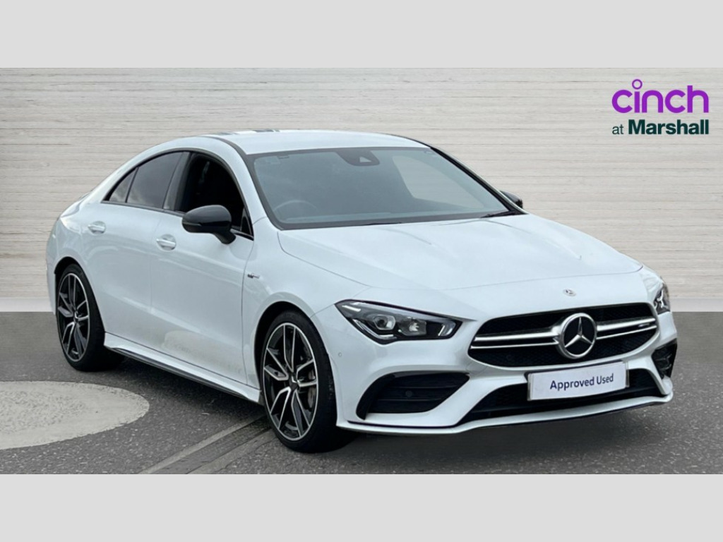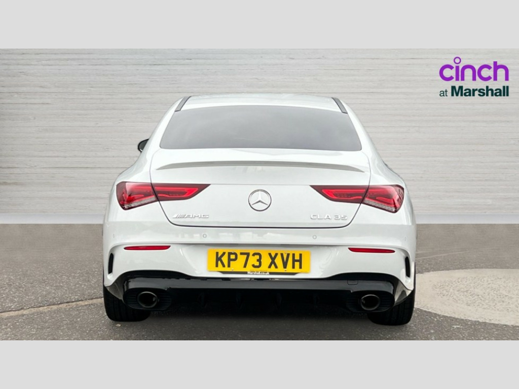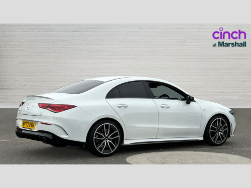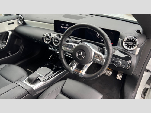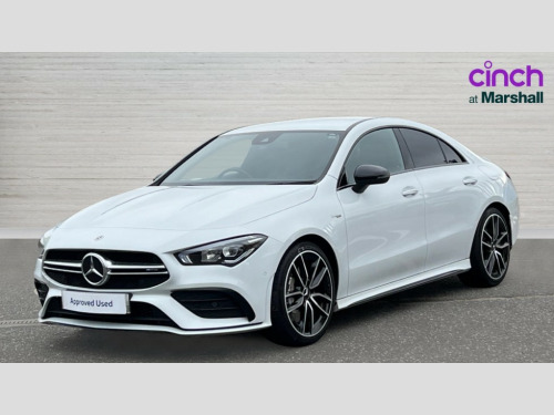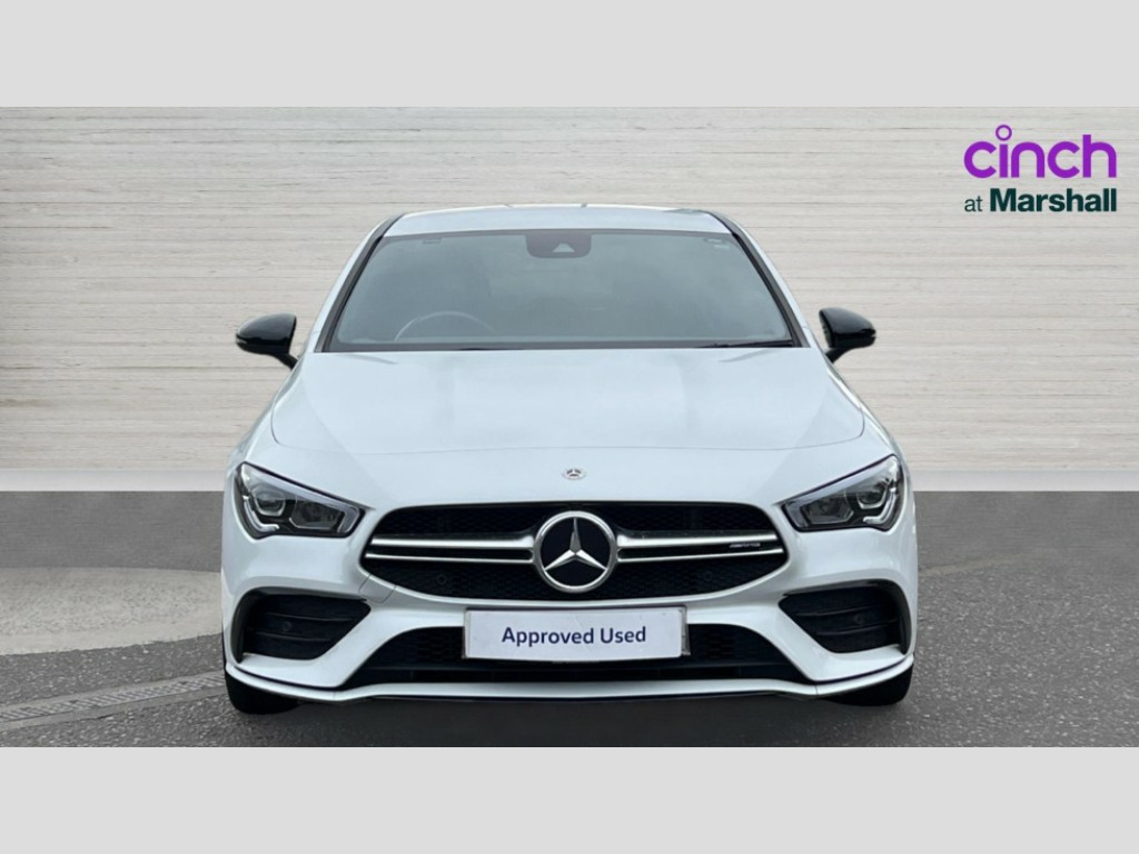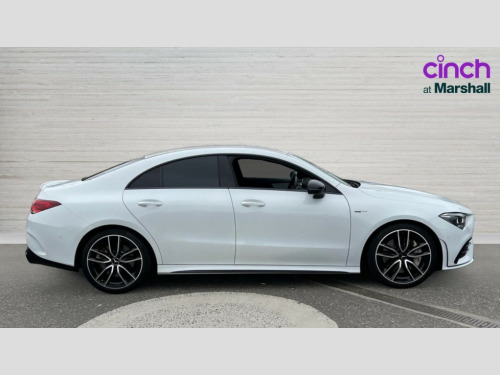 Mercedes-Benz CLA Class CLA 35 Premium 4Matic 4dr Tip Auto 10.25 inch Instrument display with digital cockpit, 10.25 inch touchscreen central media display, Active lane keeping assist, Attention assist - Monitors steering behaviour and long journey fatigue, Bluetooth connection, Car wash mode, Cruise control with limiter, Direct steer system with speed sensitive power steering, DYNAMIC SELECT with driving programs (Slippery, Comfort, Sport, Sport+ and Individual), ECO start/stop function, Fluid level warning indicator for fuel, oil, coolant and washer fluid, Hard-disk navigation, Hey Mercedes Voice activation, Lamp failure indicator, Mercedes me connect including emergency call system, accident recovery, breakdown and maintenance management, Mercedes me remote services, Outside temperature gauge, Owners manual and service booklet in English, Pre-installation of private car share, Preinstallation for Mercedes Benz link, Radio aerial integrated into front and rear windshields, Service indicator (ASSYST), Smartphone integration with Apple CarPlay and Android auto, Speed limit assist, Trip computer in multifunction display with current consumption indicator, AMG suspension, Rear axle multi-link, DAB digital radio tuner, MBUX multimedia system, Mid-range sound system, USB (type C) ports (2) in stowage compartment and 1 in front of centre console, Adaptive brake lights, AMG body styling with AMG front apron and rear apron and visible exhaust tailpipe in chrome trim elements, AMG bodystyling side skirts, AMG Front apron with flics as air deflector elements on the outer air intakes, AMG radiator grille with twin blade lamella and AMG Lettering, AMG Rear apron with specific diffuser look with four vertical fins and two round chrome plated tailpipe trim elements with a diameter of 90 mm, AMG Sports exhaust system with two round tailpipes measuring 90 mm in diameter attached in rear apron, AMG lettering plus ribbing on the inside of the, Automatically controlled exhaust flap, Beltline strips in High gloss Black, Body colour bumpers, Body colour door handles, Chrome weather strip, Electric windows, Electrically adjustable and heated door mirrors with integrated LED indicators, Front splitter and trim elements on the louvres in the outer air inlets in silver chrome, Front wings with TURBO 4MATIC lettering, Headlamp assist automatic headlamp activation, Heated glass rear windscreen + timer control, High level LED third brake light, Interior mirror with black reading lamps and frameless, LED high performance headlamps with integrated LED daytime running lights, LED tail lamp, Privacy glass with dark tinting on rear side windows and rear window, Rain sensing windscreen wipers with two sensitivity settings, Rear boot, Rear fog lamp, Rear side wing doors, Variable front intermittent wipers, Window line trim strip in high gloss black, 3 seat bench in 2nd row, 40:20:40 split folding rear seat backrests, Air conditioning - Two zone thermotronic luxury automatic climate control with display, Air vents with surround in silver chrome, AMG Performance steering wheel in nappa leather, Automatic child seat recognition sensor, Black roof lining, Brushed stainless steel sports pedals with rubber studs, Floor mats with stitched AMG lettering, Front centre armrest with stowage, Heated front seats, Illuminated front door sills with changeable cover, Illuminated glove compartment stowage, Interior lighting - 64 colour Ambient lighting, Luggage net on driver/front passenger seat backrest, Manually adjustable front seats, Manually height and reach adjustable steering column, Rear armrest with two integral cup holders for drinks, Rear head restraints, Silver coloured aluminium gear shift paddles on steering wheel, Single front passenger seat, Sport seats with fixed head restraints, Stowage compartment in centre console with retractable cover, Sunvisors with illuminated vanity mirrors, Touchpad on center console, Twin front cupholders, Two outer rear seat isofix and top tether child seat fixing points, AMG Night package - CLA 35/45, Keyless go comfort pack - CLA, Light and sight pack - CLA, Mirror pack - CLA, Parking package - CLA, Seat comfort pack - CLA, Active bonnet pedestrain safety measure which detects an impact and raises bonnet by 65mm, Active brake assist includes forward collision warning system with autonomous braking, Adaptive brake assist with hold function and hill start assist, Anti lock braking system (ABS) with brake assist, Black seat belts, Bonnet with power domes, Brake pad wear warning indicator, Childproof locks manually operated for rear doors and electrically operated for rear power windows, Crash responsive emergency lighting, Driver and front passenger head and sidebags, Driver and front passenger windowbags, Drivers knee airbag, Dual stage driver and front passenger airbags, Electric parking brake, Electronic stability programme with acceleration skid control, ESP curve dynamic assist, Front and rear seatbelt reminder, Front brake calipers with AMG lettering, Front passenger seat occupancy sensor, Perforated front brake discs, Three point rear seat belts, Tyre pressure monitoring system, Warning triangle and first aid kit, Guard 360 degree guard vehicle protection system with immobiliser and interior protection, Remote central locking and crash sensor with emergency opening function, Light aluminium with longitudinal grain interior trim, 19" AMG multi-spoke high gloss black painted light alloy wheels with high sheen finish, Summer tyres, Tirefit tyre sealant kit, Wheel arches wider for AMG wheels