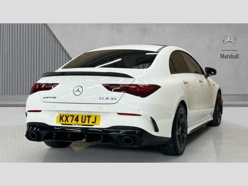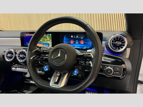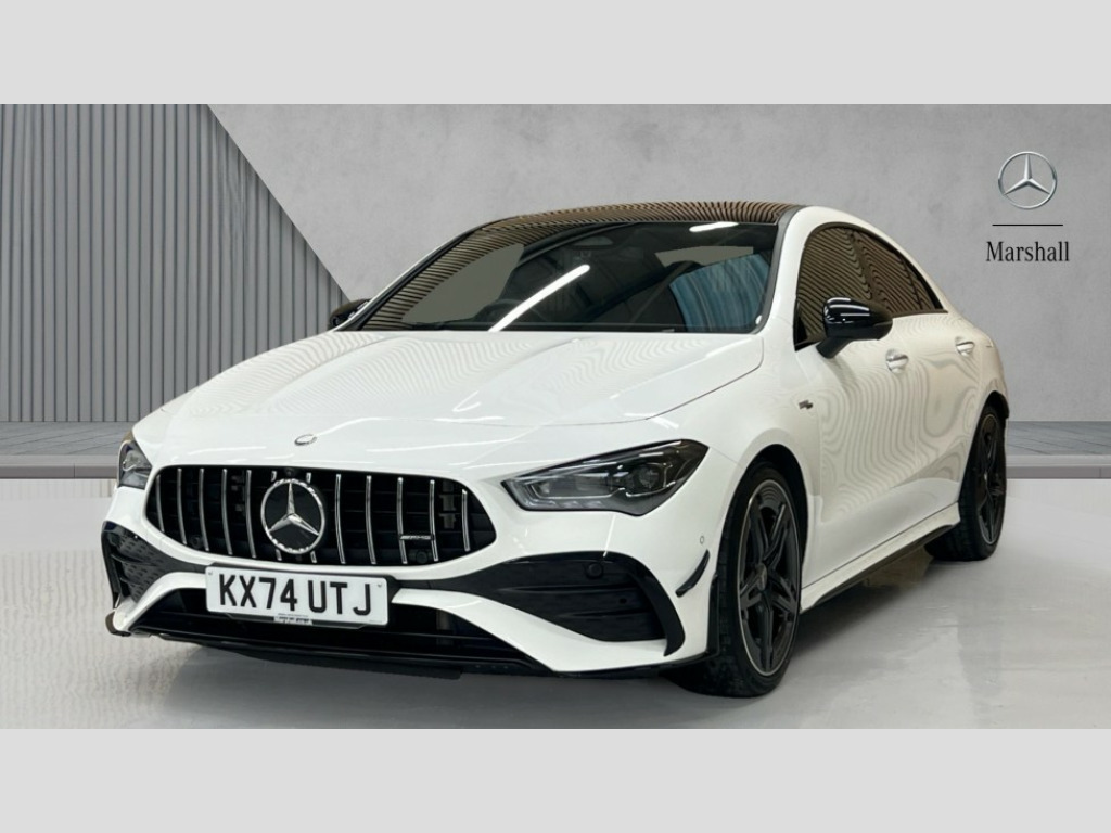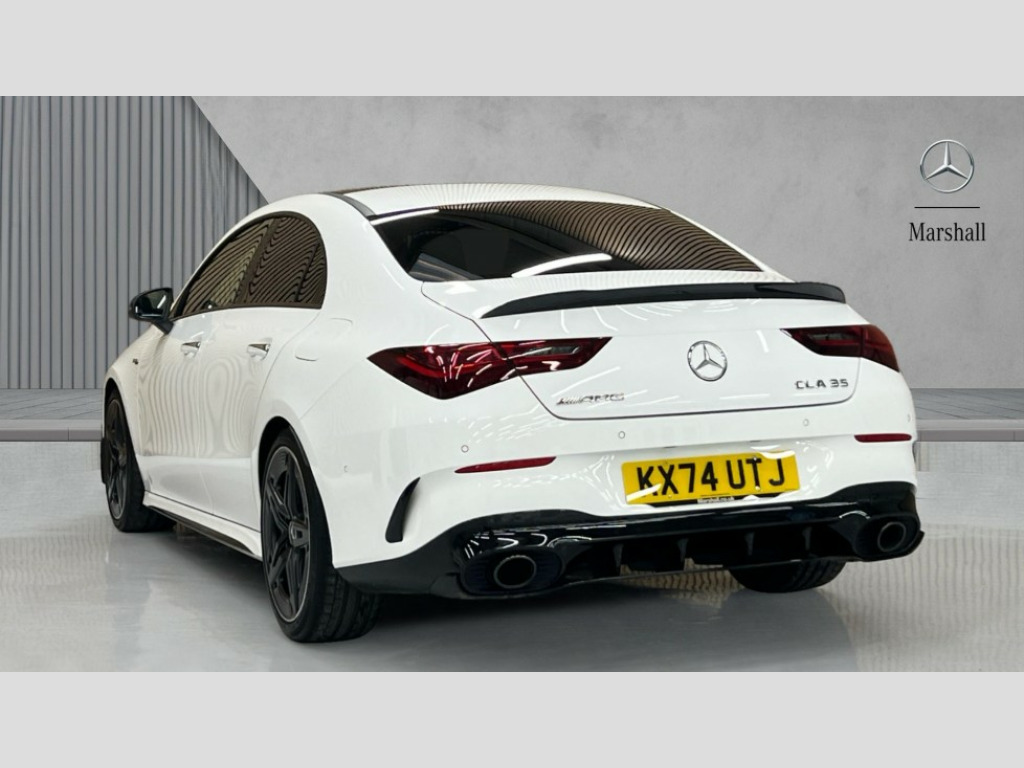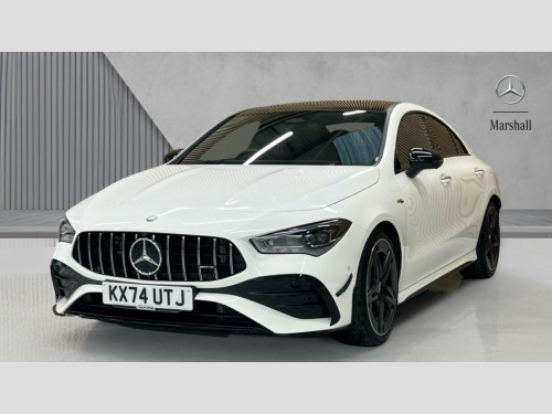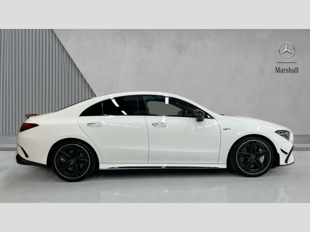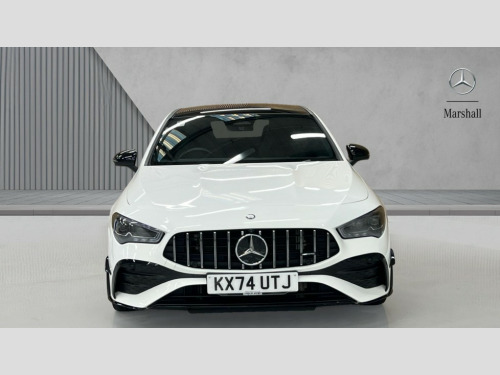 Mercedes-Benz CLA Class CLA 35 Premium Plus 4Matic 4dr Tip Auto 10.25 inch Instrument display with digital cockpit, 10.25 inch touchscreen central media display, 360 degree parking camera, Active lane keeping assist, AMG DYNAMIC SELECT with drive modes(Slippery, Comfort, Sport, Sport+, Individual and Race) incl drift mode via steering wheel shift paddles+Race Start, AMG speed sensitive power steering with two sets of steering characteristics, Attention assist - Monitors steering behaviour and long journey fatigue, Bluetooth connection, Car wash mode, Cruise control with limiter, Direct steer system, ECO start/stop function, Fingerprint sensor, Fluid level warning indicator for fuel, oil, coolant and washer fluid, Hard-disk navigation, Head up Display, Hey Mercedes Voice activation, Lamp failure indicator, MBUX augmented reality for navigation, Mercedes me connect including emergency call system, accident recovery, breakdown and maintenance management, Mercedes me remote services, Outside temperature gauge, Owners manual in English, Pre-installation of private car share, Radio aerial integrated into front and rear windshields, Service indicator (ASSYST), Smartphone integration with Apple CarPlay and Android auto, Traffic sign assist, Trip computer in multifunction display with current consumption indicator, Wireless charging in the front centre console, 4MATIC permanent four wheel drive, AMG performance 4MATIC+ with torque control distribution, AMG Ride Control suspension, Rear axle multi-link, Burmester lettering on the speakers, Burmester surround sound system (710W) with dolby atmos, speakers - 1 central, 1 woofer, 1 tweeter, 1 subwoofer with 60W, 2 in C pillar, DAB digital radio tuner, MBUX multimedia system, Pre installation for Mercedes Benz Link, USB (type C) ports (2) in stowage compartment and 1 in front of centre console, Adaptive brake lights, AMG emblem on the front instead of the "Mercedes-Benz" laurel wreath badge, AMG Front apron with flics as air deflector elements on the outer air intakes, AMG illuminated door sills with AMG lettering and with exchangeable cover, AMG Rear apron with specific diffuser look with four vertical fins and two round chrome plated tailpipe trim elements with a diameter of 90 mm, AMG Sports exhaust system with two round tailpipes measuring 90 mm in diameter attached in rear apron, Body colour bumpers, Body colour door handles, Electric panoramic sunroof with automatic tilt and convenience closing fuinctions, rain sensor auto closing and electronic roller sunblind, Electric windows, Electrically adjustable and heated door mirrors with integrated LED indicators, Front splitter and trim elements on the louvres in the outer air inlets in silver chrome, Front wings with TURBO 4MATIC lettering, Hand free access, Headlamp assist automatic headlamp activation, Heated glass rear windscreen + timer control, High level LED third brake light, Integrated LED daytime running lights, Interior mirror with black reading lamps and frameless, LED tail lamp, Multibeam LED headlamps with adaptive highbeam assist plus, Privacy glass with dark tinting on rear side windows and rear window, Rain sensing windscreen wipers with two sensitivity settings, Rear boot, Rear fog lamp, Rear side wing doors, Rear wheel arch extensions AMG wheels, Variable front intermittent wipers, 3 seat bench in 2nd row, 40:20:40 split folding rear seat backrests, Air conditioning - Two zone thermotronic luxury automatic climate control with display, Air vents with surround in silver chrome, AMG Performance steering wheel in nappa leather, Automatic child seat recognition sensor, Black roof lining, Brushed stainless steel sports pedals with rubber studs, Electrically adjustable front memory seats including 4 way lumbar support, Floor mats with stitched AMG lettering, Fluorescent jacket, Front centre armrest with stowage, Interior lighting - 64 colour Ambient lighting, Luggage net on driver/front passenger seat backrest, Manually height and reach adjustable steering column, Rear armrest with two integral cup holders for drinks, Rear head restraints, Silver coloured aluminium gear shift paddles on steering wheel, Single front passenger seat, Sport seats with fixed head restraints, Stowage compartment in centre console with retractable cover, Sunvisors with illuminated vanity mirrors, Twin front cupholders, Two outer rear seat isofix and top tether child seat fixing points, Aerodynamics pack - CLA, AMG Night package - CLA 35/45, Keyless go comfort pack - CLA, Light and sight pack - CLA, Mirror pack with Self dimming rear view mirror - CLA, Seat comfort pack - CLA, Winter pack - CLA, Active bonnet pedestrain safety measure which detects an impact and raises bonnet by 65mm, Adaptive brake assist with hold function and hill start assist, AMG high performance brake system with red painted brake callipers and black AMG lettering at the front, ventilated and perforated brake discs, Anti lock braking system (ABS) with brake assist, Black seat belts, Brake pad wear warning indicator, Childproof locks manually operated for rear doors and electrically operated for rear power windows, Crash responsive emergency lighting, Driver and front passenger head and sidebags, Driver and front passenger windowbags, Drivers knee airbag, Dual stage driver and front passenger airbags, Electric parking brake, Electronic stability programme with acceleration skid control, ESP curve dynamic assist, Exit warning, Front and rear seatbelt reminder, Front brake calipers with AMG lettering, Front passenger seat occupancy sensor, Sports braking system, Three point rear seat belts, Tyre pressure monitoring system, Warning triangle and first aid kit, Alarm system with immobiliser and interior protection -Thatcham category 1, Guard 360 deg vehicle protection - tow away protection with visual, acoustic warning, interior monitoring, preinstallation for parking damage, Remote central locking and crash sensor with emergency opening functio