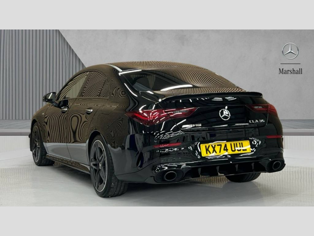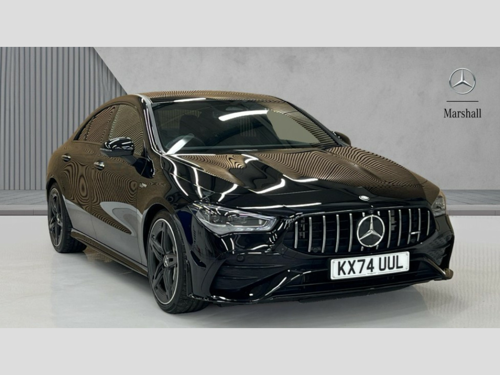 Mercedes-Benz CLA Class CLA 35 Premium Plus 4Matic 4dr Tip Auto 10.25 inch Instrument display with digital cockpit, 10.25 inch touchscreen central media display, 360 degree parking camera, Active lane keeping assist, AMG DYNAMIC SELECT with drive modes(Slippery, Comfort, Sport, Sport+, Individual and Race) incl drift mode via steering wheel shift paddles+Race Start, AMG speed sensitive power steering with two sets of steering characteristics, Attention assist - Monitors steering behaviour and long journey fatigue, Bluetooth connection, Car wash mode, Cruise control with limiter, Direct steer system, ECO start/stop function, Fingerprint sensor, Fluid level warning indicator for fuel, oil, coolant and washer fluid, Hard-disk navigation, Head up Display, Hey Mercedes Voice activation, Lamp failure indicator, MBUX augmented reality for navigation, Mercedes me connect including emergency call system, accident recovery, breakdown and maintenance management, Mercedes me remote services, Outside temperature gauge, Owners manual in English, Pre-installation of private car share, Radio aerial integrated into front and rear windshields, Service indicator (ASSYST), Smartphone integration with Apple CarPlay and Android auto, Traffic sign assist, Trip computer in multifunction display with current consumption indicator, Wireless charging in the front centre console, 4MATIC permanent four wheel drive, AMG performance 4MATIC+ with torque control distribution, AMG Ride Control suspension, Rear axle multi-link, Burmester lettering on the speakers, Burmester surround sound system (710W) with dolby atmos, speakers - 1 central, 1 woofer, 1 tweeter, 1 subwoofer with 60W, 2 in C pillar, DAB digital radio tuner, MBUX multimedia system, Pre installation for Mercedes Benz Link, USB (type C) ports (2) in stowage compartment and 1 in front of centre console, Adaptive brake lights, AMG emblem on the front instead of the "Mercedes-Benz" laurel wreath badge, AMG Front apron with flics as air deflector elements on the outer air intakes, AMG illuminated door sills with AMG lettering and with exchangeable cover, AMG Rear apron with specific diffuser look with four vertical fins and two round chrome plated tailpipe trim elements with a diameter of 90 mm, AMG Sports exhaust system with two round tailpipes measuring 90 mm in diameter attached in rear apron, Body colour bumpers, Body colour door handles, Electric panoramic sunroof with automatic tilt and convenience closing fuinctions, rain sensor auto closing and electronic roller sunblind, Electric windows, Electrically adjustable and heated door mirrors with integrated LED indicators, Front splitter and trim elements on the louvres in the outer air inlets in silver chrome, Front wings with TURBO 4MATIC lettering, Hand free access, Headlamp assist automatic headlamp activation, Heated glass rear windscreen + timer control, High level LED third brake light, Integrated LED daytime running lights, Interior mirror with black reading lamps and frameless, LED tail lamp, Multibeam LED headlamps with adaptive highbeam assist plus, Privacy glass with dark tinting on rear side windows and rear window, Rain sensing windscreen wipers with two sensitivity settings, Rear boot, Rear fog lamp, Rear side wing doors, Rear wheel arch extensions AMG wheels, Variable front intermittent wipers, 3 seat bench in 2nd row, 40:20:40 split folding rear seat backrests, Air conditioning - Two zone thermotronic luxury automatic climate control with display, Air vents with surround in silver chrome, AMG Performance steering wheel in nappa leather, Automatic child seat recognition sensor, Black roof lining, Brushed stainless steel sports pedals with rubber studs, Electrically adjustable front memory seats including 4 way lumbar support, Floor mats with stitched AMG lettering, Fluorescent jacket, Front centre armrest with stowage, Interior lighting - 64 colour Ambient lighting, Luggage net on driver/front passenger seat backrest, Manually height and reach adjustable steering column, Rear armrest with two integral cup holders for drinks, Rear head restraints, Silver coloured aluminium gear shift paddles on steering wheel, Single front passenger seat, Sport seats with fixed head restraints, Stowage compartment in centre console with retractable cover, Sunvisors with illuminated vanity mirrors, Twin front cupholders, Two outer rear seat isofix and top tether child seat fixing points, Aerodynamics pack - CLA, AMG Night package - CLA 35/45, Keyless go comfort pack - CLA, Light and sight pack - CLA, Mirror pack with Self dimming rear view mirror - CLA, Seat comfort pack - CLA, Winter pack - CLA, Active bonnet pedestrain safety measure which detects an impact and raises bonnet by 65mm, Adaptive brake assist with hold function and hill start assist, AMG high performance brake system with red painted brake callipers and black AMG lettering at the front, ventilated and perforated brake discs, Anti lock braking system (ABS) with brake assist, Black seat belts, Brake pad wear warning indicator, Childproof locks manually operated for rear doors and electrically operated for rear power windows, Crash responsive emergency lighting, Driver and front passenger head and sidebags, Driver and front passenger windowbags, Drivers knee airbag, Dual stage driver and front passenger airbags, Electric parking brake, Electronic stability programme with acceleration skid control, ESP curve dynamic assist, Exit warning, Front and rear seatbelt reminder, Front brake calipers with AMG lettering, Front passenger seat occupancy sensor, Sports braking system, Three point rear seat belts, Tyre pressure monitoring system, Warning triangle and first aid kit, Alarm system with immobiliser and interior protection -Thatcham category 1, Guard 360 deg vehicle protection - tow away protection with visual, acoustic warning, interior monitoring, preinstallation for parking damage, Remote central locking and crash sensor with emergency opening functio