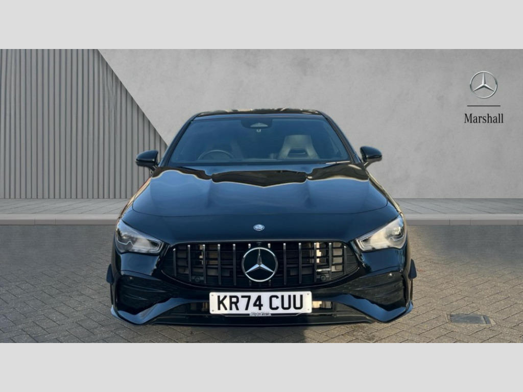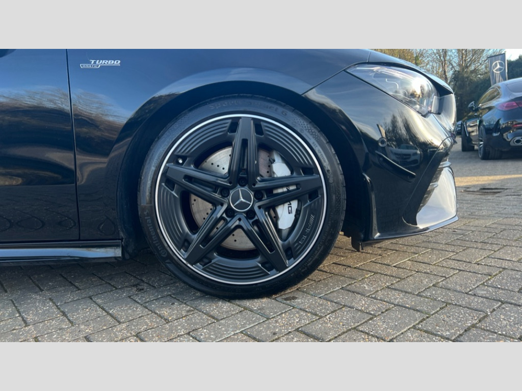 Mercedes-Benz CLA Class CLA 35 Premium Plus 4Matic 4dr Tip Auto 10.25 inch Instrument display with digital cockpit, 10.25 inch touchscreen central media display, 360 degree parking camera, Active lane keeping assist, AMG DYNAMIC SELECT with drive modes(Slippery, Comfort, Sport, Sport+, Individual and Race) incl drift mode via steering wheel shift paddles+Race Start, AMG speed sensitive power steering with two sets of steering characteristics, Attention assist - Monitors steering behaviour and long journey fatigue, Bluetooth connection, Car wash mode, Cruise control with limiter, Direct steer system, ECO start/stop function, Fingerprint sensor, Fluid level warning indicator for fuel, oil, coolant and washer fluid, Hard-disk navigation, Head up Display, Hey Mercedes Voice activation, Lamp failure indicator, MBUX augmented reality for navigation, Mercedes me connect including emergency call system, accident recovery, breakdown and maintenance management, Mercedes me remote services, Outside temperature gauge, Owners manual in English, Pre-installation of private car share, Radio aerial integrated into front and rear windshields, Service indicator (ASSYST), Smartphone integration with Apple CarPlay and Android auto, Traffic sign assist, Trip computer in multifunction display with current consumption indicator, Wireless charging in the front centre console, 4MATIC permanent four wheel drive, AMG performance 4MATIC+ with torque control distribution, AMG Ride Control suspension, Rear axle multi-link, Burmester lettering on the speakers, Burmester surround sound system (710W) with dolby atmos, speakers - 1 central, 1 woofer, 1 tweeter, 1 subwoofer with 60W, 2 in C pillar, DAB digital radio tuner, MBUX multimedia system, Pre installation for Mercedes Benz Link, USB (type C) ports (2) in stowage compartment and 1 in front of centre console, Adaptive brake lights, AMG emblem on the front instead of the "Mercedes-Benz" laurel wreath badge, AMG Front apron with flics as air deflector elements on the outer air intakes, AMG illuminated door sills with AMG lettering and with exchangeable cover, AMG Rear apron with specific diffuser look with four vertical fins and two round chrome plated tailpipe trim elements with a diameter of 90 mm, AMG Sports exhaust system with two round tailpipes measuring 90 mm in diameter attached in rear apron, Body colour bumpers, Body colour door handles, Electric panoramic sunroof with automatic tilt and convenience closing fuinctions, rain sensor auto closing and electronic roller sunblind, Electric windows, Electrically adjustable and heated door mirrors with integrated LED indicators, Front splitter and trim elements on the louvres in the outer air inlets in silver chrome, Front wings with TURBO 4MATIC lettering, Hand free access, Headlamp assist automatic headlamp activation, Heated glass rear windscreen + timer control, High level LED third brake light, Integrated LED daytime running lights, Interior mirror with black reading lamps and frameless, LED tail lamp, Multibeam LED headlamps with adaptive highbeam assist plus, Privacy glass with dark tinting on rear side windows and rear window, Rain sensing windscreen wipers with two sensitivity settings, Rear boot, Rear fog lamp, Rear side wing doors, Rear wheel arch extensions AMG wheels, Variable front intermittent wipers, 3 seat bench in 2nd row, 40:20:40 split folding rear seat backrests, Air conditioning - Two zone thermotronic luxury automatic climate control with display, Air vents with surround in silver chrome, AMG Performance steering wheel in nappa leather, Automatic child seat recognition sensor, Black roof lining, Brushed stainless steel sports pedals with rubber studs, Electrically adjustable front memory seats including 4 way lumbar support, Floor mats with stitched AMG lettering, Fluorescent jacket, Front centre armrest with stowage, Interior lighting - 64 colour Ambient lighting, Luggage net on driver/front passenger seat backrest, Manually height and reach adjustable steering column, Rear armrest with two integral cup holders for drinks, Rear head restraints, Silver coloured aluminium gear shift paddles on steering wheel, Single front passenger seat, Sport seats with fixed head restraints, Stowage compartment in centre console with retractable cover, Sunvisors with illuminated vanity mirrors, Twin front cupholders, Two outer rear seat isofix and top tether child seat fixing points, Aerodynamics pack - CLA, AMG Night package - CLA 35/45, Keyless go comfort pack - CLA, Light and sight pack - CLA, Mirror pack with Self dimming rear view mirror - CLA, Seat comfort pack - CLA, Winter pack - CLA, Active bonnet pedestrain safety measure which detects an impact and raises bonnet by 65mm, Adaptive brake assist with hold function and hill start assist, AMG high performance brake system with red painted brake callipers and black AMG lettering at the front, ventilated and perforated brake discs, Anti lock braking system (ABS) with brake assist, Black seat belts, Brake pad wear warning indicator, Childproof locks manually operated for rear doors and electrically operated for rear power windows, Crash responsive emergency lighting, Driver and front passenger head and sidebags, Driver and front passenger windowbags, Drivers knee airbag, Dual stage driver and front passenger airbags, Electric parking brake, Electronic stability programme with acceleration skid control, ESP curve dynamic assist, Exit warning, Front and rear seatbelt reminder, Front brake calipers with AMG lettering, Front passenger seat occupancy sensor, Sports braking system, Three point rear seat belts, Tyre pressure monitoring system, Warning triangle and first aid kit, Alarm system with immobiliser and interior protection -Thatcham category 1, Guard 360 deg vehicle protection - tow away protection with visual, acoustic warning, interior monitoring, preinstallation for parking damage, Remote central locking and crash sensor with emergency opening functio