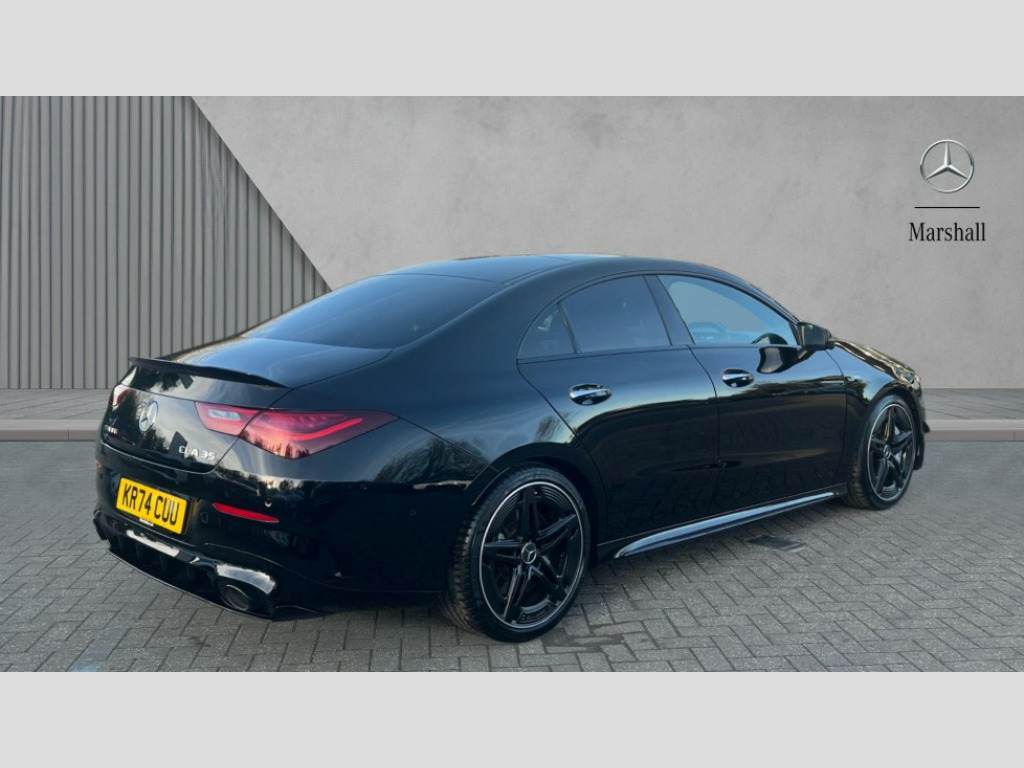 Mercedes-Benz CLA Class CLA 35 Premium Plus 4Matic 4dr Tip Auto 10.25 inch Instrument display with digital cockpit, 10.25 inch touchscreen central media display, 360 degree parking camera, Active lane keeping assist, AMG DYNAMIC SELECT with drive modes(Slippery, Comfort, Sport, Sport+, Individual and Race) incl drift mode via steering wheel shift paddles+Race Start, AMG speed sensitive power steering with two sets of steering characteristics, Attention assist - Monitors steering behaviour and long journey fatigue, Bluetooth connection, Car wash mode, Cruise control with limiter, Direct steer system, ECO start/stop function, Fingerprint sensor, Fluid level warning indicator for fuel, oil, coolant and washer fluid, Hard-disk navigation, Head up Display, Hey Mercedes Voice activation, Lamp failure indicator, MBUX augmented reality for navigation, Mercedes me connect including emergency call system, accident recovery, breakdown and maintenance management, Mercedes me remote services, Outside temperature gauge, Owners manual in English, Pre-installation of private car share, Radio aerial integrated into front and rear windshields, Service indicator (ASSYST), Smartphone integration with Apple CarPlay and Android auto, Traffic sign assist, Trip computer in multifunction display with current consumption indicator, Wireless charging in the front centre console, 4MATIC permanent four wheel drive, AMG performance 4MATIC+ with torque control distribution, AMG Ride Control suspension, Rear axle multi-link, Burmester lettering on the speakers, Burmester surround sound system (710W) with dolby atmos, speakers - 1 central, 1 woofer, 1 tweeter, 1 subwoofer with 60W, 2 in C pillar, DAB digital radio tuner, MBUX multimedia system, Pre installation for Mercedes Benz Link, USB (type C) ports (2) in stowage compartment and 1 in front of centre console, Adaptive brake lights, AMG emblem on the front instead of the "Mercedes-Benz" laurel wreath badge, AMG Front apron with flics as air deflector elements on the outer air intakes, AMG illuminated door sills with AMG lettering and with exchangeable cover, AMG Rear apron with specific diffuser look with four vertical fins and two round chrome plated tailpipe trim elements with a diameter of 90 mm, AMG Sports exhaust system with two round tailpipes measuring 90 mm in diameter attached in rear apron, Body colour bumpers, Body colour door handles, Electric panoramic sunroof with automatic tilt and convenience closing fuinctions, rain sensor auto closing and electronic roller sunblind, Electric windows, Electrically adjustable and heated door mirrors with integrated LED indicators, Front splitter and trim elements on the louvres in the outer air inlets in silver chrome, Front wings with TURBO 4MATIC lettering, Hand free access, Headlamp assist automatic headlamp activation, Heated glass rear windscreen + timer control, High level LED third brake light, Integrated LED daytime running lights, Interior mirror with black reading lamps and frameless, LED tail lamp, Multibeam LED headlamps with adaptive highbeam assist plus, Privacy glass with dark tinting on rear side windows and rear window, Rain sensing windscreen wipers with two sensitivity settings, Rear boot, Rear fog lamp, Rear side wing doors, Rear wheel arch extensions AMG wheels, Variable front intermittent wipers, 3 seat bench in 2nd row, 40:20:40 split folding rear seat backrests, Air conditioning - Two zone thermotronic luxury automatic climate control with display, Air vents with surround in silver chrome, AMG Performance steering wheel in nappa leather, Automatic child seat recognition sensor, Black roof lining, Brushed stainless steel sports pedals with rubber studs, Electrically adjustable front memory seats including 4 way lumbar support, Floor mats with stitched AMG lettering, Fluorescent jacket, Front centre armrest with stowage, Interior lighting - 64 colour Ambient lighting, Luggage net on driver/front passenger seat backrest, Manually height and reach adjustable steering column, Rear armrest with two integral cup holders for drinks, Rear head restraints, Silver coloured aluminium gear shift paddles on steering wheel, Single front passenger seat, Sport seats with fixed head restraints, Stowage compartment in centre console with retractable cover, Sunvisors with illuminated vanity mirrors, Twin front cupholders, Two outer rear seat isofix and top tether child seat fixing points, Aerodynamics pack - CLA, AMG Night package - CLA 35/45, Keyless go comfort pack - CLA, Light and sight pack - CLA, Mirror pack with Self dimming rear view mirror - CLA, Seat comfort pack - CLA, Winter pack - CLA, Active bonnet pedestrain safety measure which detects an impact and raises bonnet by 65mm, Adaptive brake assist with hold function and hill start assist, AMG high performance brake system with red painted brake callipers and black AMG lettering at the front, ventilated and perforated brake discs, Anti lock braking system (ABS) with brake assist, Black seat belts, Brake pad wear warning indicator, Childproof locks manually operated for rear doors and electrically operated for rear power windows, Crash responsive emergency lighting, Driver and front passenger head and sidebags, Driver and front passenger windowbags, Drivers knee airbag, Dual stage driver and front passenger airbags, Electric parking brake, Electronic stability programme with acceleration skid control, ESP curve dynamic assist, Exit warning, Front and rear seatbelt reminder, Front brake calipers with AMG lettering, Front passenger seat occupancy sensor, Sports braking system, Three point rear seat belts, Tyre pressure monitoring system, Warning triangle and first aid kit, Alarm system with immobiliser and interior protection -Thatcham category 1, Guard 360 deg vehicle protection - tow away protection with visual, acoustic warning, interior monitoring, preinstallation for parking damage, Remote central locking and crash sensor with emergency opening functio