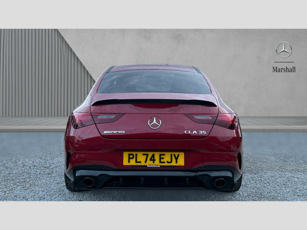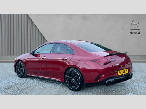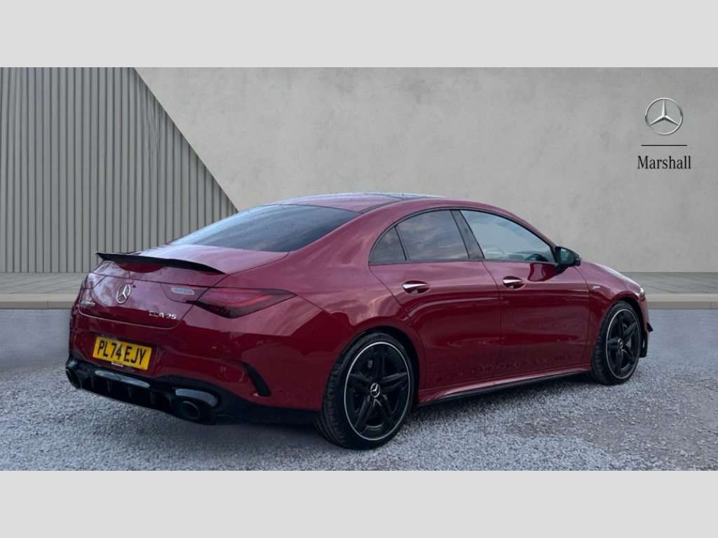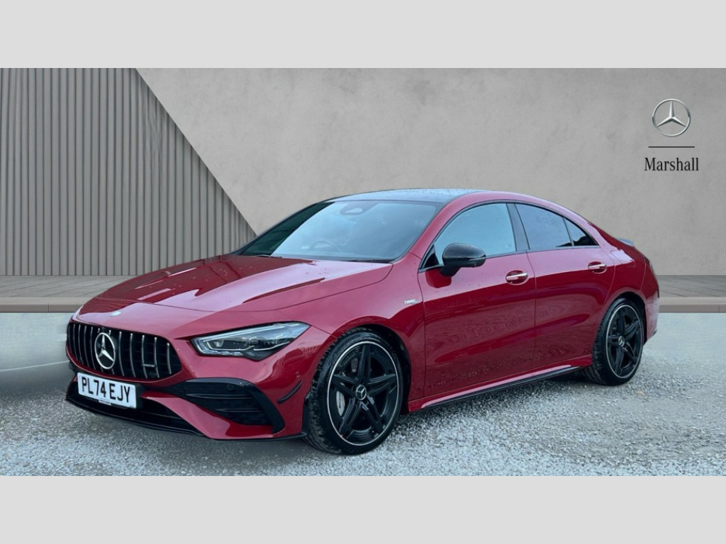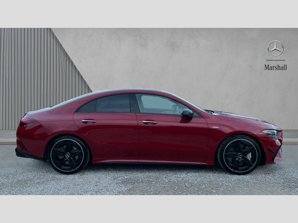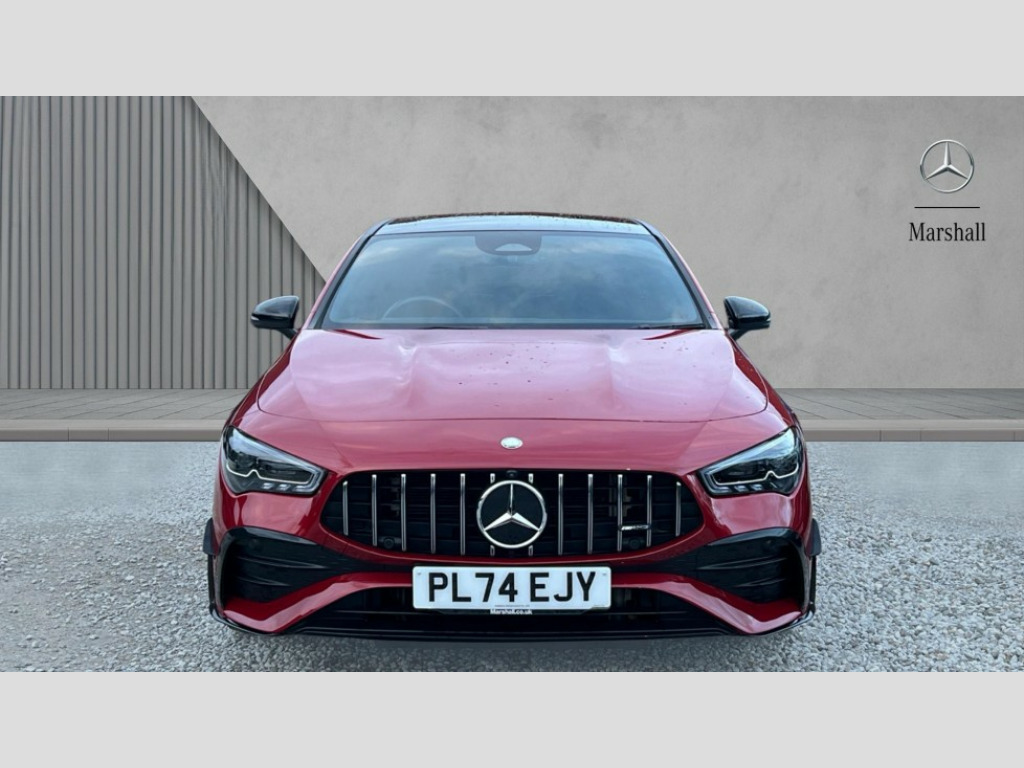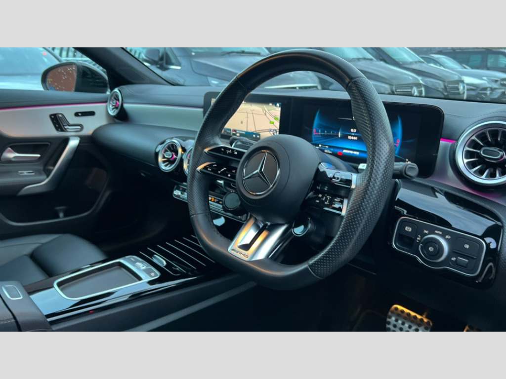 Mercedes-Benz CLA Class CLA 35 Premium Plus 4Matic 4dr Tip Auto 10.25 inch Instrument display with digital cockpit, 10.25 inch touchscreen central media display, 360 degree parking camera, Active lane keeping assist, AMG DYNAMIC SELECT with drive modes(Slippery, Comfort, Sport, Sport+, Individual and Race) incl drift mode via steering wheel shift paddles+Race Start, AMG speed sensitive power steering with two sets of steering characteristics, Attention assist - Monitors steering behaviour and long journey fatigue, Bluetooth connection, Car wash mode, Cruise control with limiter, Direct steer system, ECO start/stop function, Fingerprint sensor, Fluid level warning indicator for fuel, oil, coolant and washer fluid, Hard-disk navigation, Head up Display, Hey Mercedes Voice activation, Lamp failure indicator, MBUX augmented reality for navigation, Mercedes me connect including emergency call system, accident recovery, breakdown and maintenance management, Mercedes me remote services, Outside temperature gauge, Owners manual in English, Pre-installation of private car share, Radio aerial integrated into front and rear windshields, Service indicator (ASSYST), Smartphone integration with Apple CarPlay and Android auto, Traffic sign assist, Trip computer in multifunction display with current consumption indicator, Wireless charging in the front centre console, 4MATIC permanent four wheel drive, AMG performance 4MATIC+ with torque control distribution, AMG Ride Control suspension, Rear axle multi-link, Burmester lettering on the speakers, Burmester surround sound system (710W) with dolby atmos, speakers - 1 central, 1 woofer, 1 tweeter, 1 subwoofer with 60W, 2 in C pillar, DAB digital radio tuner, MBUX multimedia system, Pre installation for Mercedes Benz Link, USB (type C) ports (2) in stowage compartment and 1 in front of centre console, Adaptive brake lights, AMG emblem on the front instead of the "Mercedes-Benz" laurel wreath badge, AMG Front apron with flics as air deflector elements on the outer air intakes, AMG illuminated door sills with AMG lettering and with exchangeable cover, AMG Rear apron with specific diffuser look with four vertical fins and two round chrome plated tailpipe trim elements with a diameter of 90 mm, AMG Sports exhaust system with two round tailpipes measuring 90 mm in diameter attached in rear apron, Body colour bumpers, Body colour door handles, Electric panoramic sunroof with automatic tilt and convenience closing fuinctions, rain sensor auto closing and electronic roller sunblind, Electric windows, Electrically adjustable and heated door mirrors with integrated LED indicators, Front splitter and trim elements on the louvres in the outer air inlets in silver chrome, Front wings with TURBO 4MATIC lettering, Hand free access, Headlamp assist automatic headlamp activation, Heated glass rear windscreen + timer control, High level LED third brake light, Integrated LED daytime running lights, Interior mirror with black reading lamps and frameless, LED tail lamp, Multibeam LED headlamps with adaptive highbeam assist plus, Privacy glass with dark tinting on rear side windows and rear window, Rain sensing windscreen wipers with two sensitivity settings, Rear boot, Rear fog lamp, Rear side wing doors, Rear wheel arch extensions AMG wheels, Variable front intermittent wipers, 3 seat bench in 2nd row, 40:20:40 split folding rear seat backrests, Air conditioning - Two zone thermotronic luxury automatic climate control with display, Air vents with surround in silver chrome, AMG Performance steering wheel in nappa leather, Automatic child seat recognition sensor, Black roof lining, Brushed stainless steel sports pedals with rubber studs, Electrically adjustable front memory seats including 4 way lumbar support, Floor mats with stitched AMG lettering, Fluorescent jacket, Front centre armrest with stowage, Interior lighting - 64 colour Ambient lighting, Luggage net on driver/front passenger seat backrest, Manually height and reach adjustable steering column, Rear armrest with two integral cup holders for drinks, Rear head restraints, Silver coloured aluminium gear shift paddles on steering wheel, Single front passenger seat, Sport seats with fixed head restraints, Stowage compartment in centre console with retractable cover, Sunvisors with illuminated vanity mirrors, Twin front cupholders, Two outer rear seat isofix and top tether child seat fixing points, Aerodynamics pack - CLA, AMG Night package - CLA 35/45, Keyless go comfort pack - CLA, Light and sight pack - CLA, Mirror pack with Self dimming rear view mirror - CLA, Seat comfort pack - CLA, Winter pack - CLA, Active bonnet pedestrain safety measure which detects an impact and raises bonnet by 65mm, Adaptive brake assist with hold function and hill start assist, AMG high performance brake system with red painted brake callipers and black AMG lettering at the front, ventilated and perforated brake discs, Anti lock braking system (ABS) with brake assist, Black seat belts, Brake pad wear warning indicator, Childproof locks manually operated for rear doors and electrically operated for rear power windows, Crash responsive emergency lighting, Driver and front passenger head and sidebags, Driver and front passenger windowbags, Drivers knee airbag, Dual stage driver and front passenger airbags, Electric parking brake, Electronic stability programme with acceleration skid control, ESP curve dynamic assist, Exit warning, Front and rear seatbelt reminder, Front brake calipers with AMG lettering, Front passenger seat occupancy sensor, Sports braking system, Three point rear seat belts, Tyre pressure monitoring system, Warning triangle and first aid kit, Alarm system with immobiliser and interior protection -Thatcham category 1, Guard 360 deg vehicle protection - tow away protection with visual, acoustic warning, interior monitoring, preinstallation for parking damage, Remote central locking and crash sensor with emergency opening functio