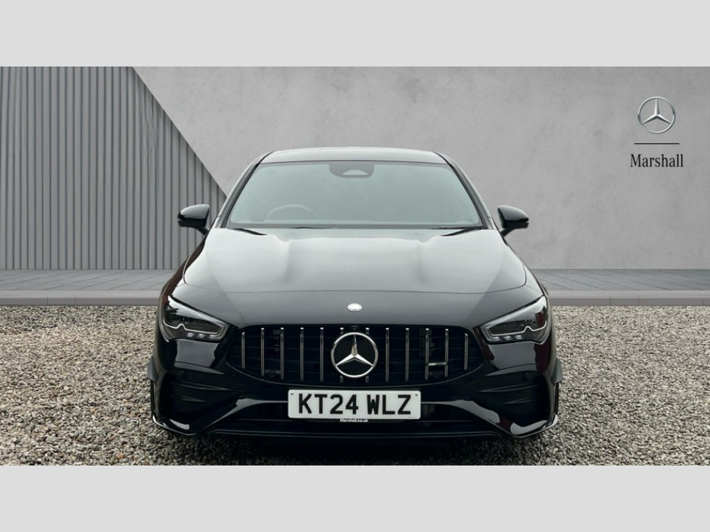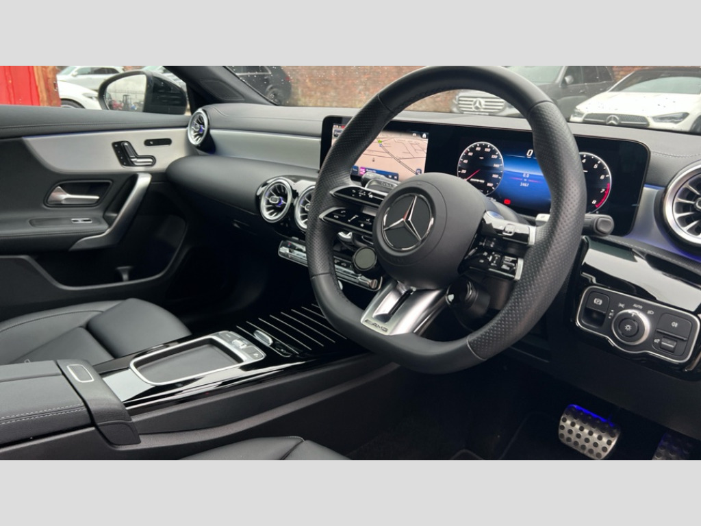 Mercedes-Benz CLA Class CLA 35 Premium Plus 4Matic 5dr Tip Auto 10.25 inch Instrument display with digital cockpit, 10.25 inch touchscreen central media display, 360 degree parking camera, Active lane keeping assist, AMG DYNAMIC SELECT with drive modes(Slippery, Comfort, Sport, Sport+, Individual and Race) incl drift mode via steering wheel shift paddles+Race Start, AMG speed sensitive power steering with two sets of steering characteristics, Attention assist - Monitors steering behaviour and long journey fatigue, Bluetooth connection, Car wash mode, Cruise control with limiter, Direct steer system, ECO start/stop function, Fluid level warning indicator for fuel, oil, coolant and washer fluid, Hard-disk navigation, Hey Mercedes Voice activation, Lamp failure indicator, MBUX augmented reality for navigation, Mercedes me connect including emergency call system, accident recovery, breakdown and maintenance management, Mercedes me remote services, Outside temperature gauge, Owners manual in English, Pre-installation of private car share, Radio aerial integrated into front and rear windshields, Service indicator (ASSYST), Smartphone integration with Apple CarPlay and Android auto, Tailgate, Traffic sign assist, Trip computer in multifunction display with current consumption indicator, Wireless charging in the front centre console, 4MATIC permanent four wheel drive, AMG performance 4MATIC+ with torque control distribution, AMG Ride Control suspension, Rear axle multi-link, DAB digital radio tuner, MBUX multimedia system, Mercedes Benz advanced sound system (225 W) with 10 speakers, 1 central speaker, speakers on doors, a tweeter on door,one sub woofer + boost amplifier, Pre installation for Mercedes Benz Link, USB (type C) ports (2) in stowage compartment and 1 in front of centre console, Adaptive brake lights, AMG emblem on the front instead of the "Mercedes-Benz" laurel wreath badge, AMG Front apron with flics as air deflector elements on the outer air intakes, AMG illuminated door sills with AMG lettering and with exchangeable cover, AMG Rear apron with specific diffuser look with four vertical fins and two round chrome plated tailpipe trim elements with a diameter of 90 mm, AMG Sports exhaust system with two round tailpipes measuring 90 mm in diameter attached in rear apron, AMG lettering plus ribbing on the inside of the, Body colour bumpers, Body colour door handles, Electric panoramic sunroof with automatic tilt and convenience closing fuinctions, rain sensor auto closing and electronic roller sunblind, Electric windows, Electrically adjustable and heated door mirrors with integrated LED indicators, Front splitter and trim elements on the louvres in the outer air inlets in silver chrome, Front wings with TURBO 4MATIC lettering, Hand free access, Headlamp assist automatic headlamp activation, Heated glass rear windscreen + timer control, High gloss beltline strips, High level LED third brake light, Integrated LED daytime running lights, Interior mirror with black reading lamps and frameless, LED tail lamp, Multibeam LED headlamps with adaptive highbeam assist plus, Privacy glass with dark tinting on rear side windows and rear window, Rain sensing windscreen wipers with two sensitivity settings, Rear fog lamp, Rear side wing doors, Rear wheel arch extensions AMG wheels, Rear wiper, Variable front intermittent wipers, 3 seat bench in 2nd row, 40:20:40 split folding rear seat backrests, Air conditioning - Two zone thermotronic luxury automatic climate control with display, Air vents with surround in silver chrome, AMG Performance steering wheel in nappa leather, Automatic child seat recognition sensor, Black roof lining, Brushed stainless steel sports pedals with rubber studs, Electrically adjustable front memory seats including 4 way lumbar support, Floor mats with stitched AMG lettering, Fluorescent jacket, Front centre armrest with stowage, Heated front seats, Interior lighting - 64 colour Ambient lighting, Luggage net on driver/front passenger seat backrest, Manually height and reach adjustable steering column, Rear armrest with two integral cup holders for drinks, Rear head restraints, Silver coloured aluminium gear shift paddles on steering wheel, Single front passenger seat, Sport seats with fixed head restraints, Stowage compartment in centre console with retractable cover, Sunvisors with illuminated vanity mirrors, Twin front cupholders, Two outer rear seat isofix and top tether child seat fixing points, Aerodynamics pack - CLA, AMG Night package - CLA 35/45, Keyless go comfort pack - CLA with easy pack tailgate, Light and sight pack - CLA, Mirror pack with Self dimming rear view mirror - CLA, Seat comfort pack - CLA, Active bonnet pedestrain safety measure which detects an impact and raises bonnet by 65mm, Adaptive brake assist with hold function and hill start assist, AMG high performance brake system with red painted brake callipers and black AMG lettering at the front, ventilated and perforated brake discs, Anti lock braking system (ABS) with brake assist, Black seat belts, Brake pad wear warning indicator, Childproof locks manually operated for rear doors and electrically operated for rear power windows, Crash responsive emergency lighting, Driver and front passenger head and sidebags, Driver and front passenger windowbags, Drivers knee airbag, Dual stage driver and front passenger airbags, Electric parking brake, Electronic stability programme with acceleration skid control, ESP curve dynamic assist, Exit warning, Front and rear seatbelt reminder, Front brake calipers with AMG lettering, Front passenger seat occupancy sensor, Sports braking system, Three point rear seat belts, Tyre pressure monitoring system, Warning triangle and first aid kit, Alarm system with immobiliser and interior protection -Thatcham category 1, Guard 360 deg vehicle protection - tow away protection with visual, acoustic warning, interior monitoring, preinstallation for parking damage, Remote central l