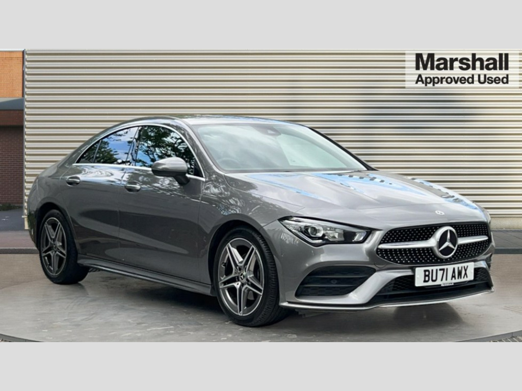 Mercedes-Benz CLA Class CLA 180 AMG Line Premium 4dr Tip Auto 10.25 inch Instrument display with digital cockpit, 10.25 inch touchscreen central media display, Active lane keeping assist, Attention assist - Monitors steering behaviour and long journey fatigue, Bluetooth connection, Car wash mode, Cruise control with limiter, Direct steer system with speed sensitive power steering, DYNAMIC SELECT with a choice of driving modes (ECO, Comfort, Sport and Individual), ECO start/stop function, Fluid level warning indicator for fuel, oil, coolant and washer fluid, Hard-disk navigation, Hey Mercedes Voice activation, Lamp failure indicator, Mercedes me connect including emergency call system, accident recovery, breakdown management and maintenance, Mercedes me remote services, Outside temperature gauge, Owners manual and service booklet in English, Pre-installation of private car share, Preinstallation for Mercedes Benz link, Radio aerial integrated into front and rear windshields, Service indicator (ASSYST), Smartphone integration with Apple CarPlay and Android auto, Speed limit assist, Trip computer in multifunction display with current consumption indicator, 7G-DCT 7 speed automatic transmission, Lowered comfort suspension, Rear axle multi-link, DAB digital radio tuner, MBUX multimedia system with DAB digital radio and touchpad including satellite navigation, Mid-range sound system, USB (type C) ports (2) in stowage compartment and 1 in front of centre console, Adaptive brake lights, AMG body styling with AMG front apron and rear apron and visible exhaust tailpipe in chrome trim elements, AMG bodystyling side skirts, Body colour bumpers, Body colour door handles, Chrome beltline strips, Chrome weather strip, Diamond radiator grille pins in chrome with silver painted louvres and chrome insert, Electric windows, Electrically adjustable and heated door mirrors with integrated LED indicators, Exhaust system with 2 Visible tailpipe trim elements and rear apron with trim in chrome, Headlamp assist automatic headlamp activation, Heated glass rear windscreen + timer control, High level LED third brake light, Interior mirror with black reading lamps and frameless, LED high performance headlamps with integrated LED daytime running lights, LED tail lamp, Privacy glass with dark tinting on rear side windows and rear window, Rain sensing windscreen wipers with two sensitivity settings, Rear boot, Rear fog lamp, Rear side wing doors, Window line trim strip in chrome, 3 seat bench in 2nd row, 3 spoke flattened bottom nappa leather multifunction steering wheel with perforated leather in grip area, 40:20:40 split folding rear seats with backrest, Air conditioning - Two zone thermotronic luxury automatic climate control with display, Air vents with surround in silver chrome, Automatic child seat recognition sensor, Black roof lining, Brushed stainless steel sports pedals with rubber studs, Floor mats with stitched AMG lettering, Front centre armrest with stowage, Galvanished gear shift paddles on steering wheel, Heated front seats, Illuminated front door sills with changeable cover, Illuminated glove compartment stowage, Interior lighting - 64 colour Ambient lighting, Luggage net on driver/front passenger seat backrest, Manually adjustable front seats, Manually height and reach adjustable steering column, Rear armrest with two integral cup holders for drinks, Rear head restraints, Single front passenger seat, Sport seats with fixed head restraints, Stowage compartment in centre console with retractable cover, Sunvisors with illuminated vanity mirrors, Touchpad on center console, Twin front cupholders, Two outer rear seat isofix and top tether child seat fixing points, Keyless go pack - CLA, Light and sight pack - CLA, Mirror pack - CLA, Parking package - CLA, Seat comfort pack - CLA, Active bonnet pedestrain safety measure which detects an impact and raises bonnet by 65mm, Active brake assist includes forward collision warning system with autonomous braking, Adaptive brake assist with hold function and hill start assist, Anti-lock braking system (ABS), Black seat belts, Bonnet with power domes, Brake pad wear warning indicator, Childproof locks manually operated for rear doors and electrically operated for rear power windows, Crash responsive emergency lighting, Driver and front passenger head and sidebags, Driver and front passenger windowbags, Drivers knee airbag, Dual stage driver and front passenger airbags, Electric parking brake, Electronic stability programme with acceleration skid control, ESP curve dynamic assist, Front and rear seatbelt reminder, Front passenger seat occupancy sensor, Three point rear seat belts, Tyre pressure monitoring system, Warning triangle and first aid kit, Remote central locking and crash sensor with emergency opening function, Urban guard vehicle protection system with immobiliser and interior protection, Light aluminium with longitudinal grain interior trim, 18" 5 twin spoke design alloy wheels painted in titanium grey with high sheen finish, Summer tyres, Tirefit tyre sealant kit