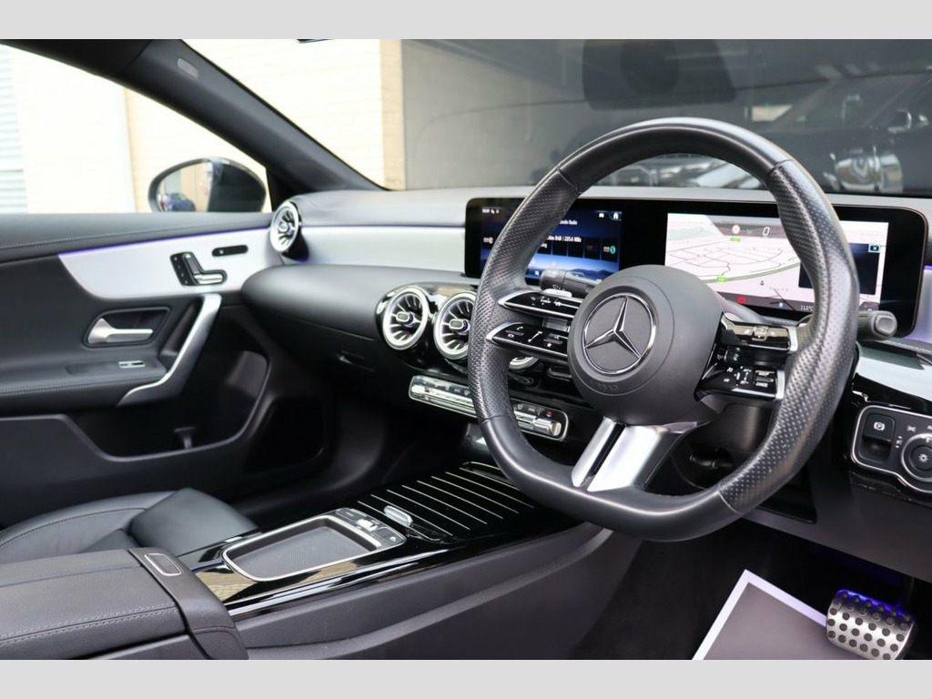 We are thrilled to offer this stunning, 2023 (73 Reg) Mercedes Benz CLA 220d 2.0 AMG Line Premium Plus which is finished in Mountain Grey Metallic with contrasting 19" Gloss Black AMG Multispoke Alloys. Our example has had 2 owners from new, covered 23,000 miles and benefits from the remainder of the Mercedes Warranty, which runs until 14th December 2026. This example boasts an extensive specification which includes: Sliding Panoramic Roof, Electric Front Seats with Memory Function, 360 Surround View Cameras, Burmester Sound System, Ambient Lighting and Wireless Charging. As part of this cars preparation before sale we have fitted two brand new front tyres, brand new front brake pads and performed an oil and pollen filter service. **Cash Price £29,495.00, £4076.00 Deposit, 48 Monthly Payments of £399.99, Guaranteed Future Minimum Value of £13,955.41, Based on 8,000 Miles Per Annum at 9.9% APR** (a) **FOR AUTOTRADER APP USERS, PLEASE SEE THE BELOW TAB 'THIS CAR COMES WITH' TO SEE THE OTHER SPEC'S ON THIS CAR OR VISIT OUR WEBSITE FOR MORE INFO** Mountain Grey, Leather - Black, Sliding Panoramic Roof, Parking Package with 360-Degree Camera, Electric Front Seats with Memory Functio, Wireless Charging, Burmester Sound System, Heated Front Seats, Keyless Entry, 19" AMG Multispoke Alloy Wheels, Drive Mode Select, Active Brake Assist, Apple CarPlay/Android Auto, Active Lane Keeping Assist, Cruise Control with Limiter, DAB Digital Radio Tuner, Interior 64-Colour Ambient Lighting, Memory Package, MULTIBEAM LED Headlamps with Adaptive Hi, Night Package, DAB Radio, Bluetooth, Seat Kinetics with Front Lumbar Support, Virtual Cockpit, Satellite Navigation, Dual Zone Climate Control