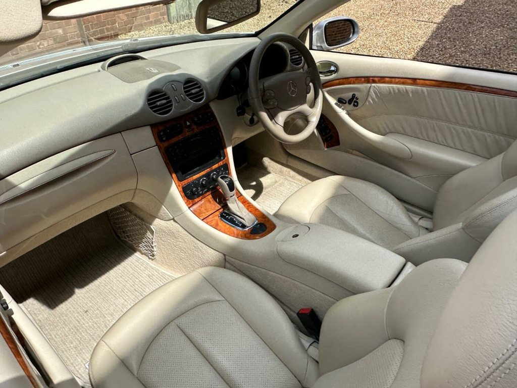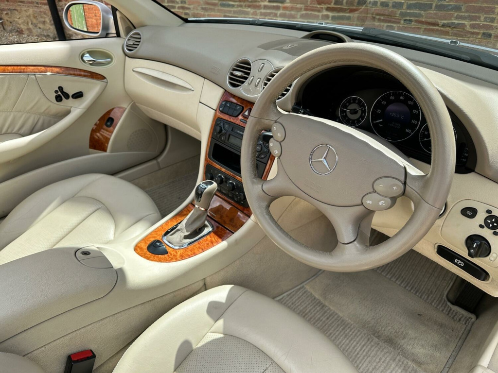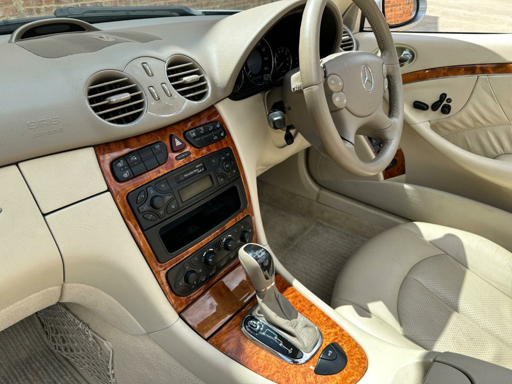 2003 Mercedes Benz CLK 200 Elegance Automatic. Brilliant Silver Metallic with Alpaca Grey two tone leather and navy hood. Introduced in 1997 the stylish, sophisticated, and elegant CLK series enjoyed a 13-year production run. Endowed with legendary Mercedes engineering heritage, the CLK offered ground-breaking technology, impeccable road manners and superb cabin ergonomics. This beautiful, one owner, low mileage, CLK is a hugely specified car that has been very well cared for over the years with a fantastic service history and just 82,000 miles. Accompanying the car is a huge service history portfolio that contains the original Mercedes order form showing the full spec with some great optional extras which include metallic paint, Alpaca leather, AMG alloy wheels, Electric adjustable heated seats, Parktronic, Wind deflector, Bi Xenon headlights, CD multichanger, Brown ash wood with a total price of £39,415. The original dealers wallet is present with all handbooks and manuals as well as the stamped service book and two keys as well as lots of bills and invoices from many years and old mot certificates, the original handover sheet is also in the folder. As expected, the Mercedes drives just as well as it looks, quiet, and smooth. The engine pulls well and changes through the wonderfully engineered 5 speed automatic transmission are barely perceptible. Steering is certain and precise while the car feels very firm and planted. This drives just as a one owner well maintained Mercedes should, no expense has been spared on maintenance and it certainly shows. With an MOT until April 2026 its just waiting to be enjoyed in new hands. Absolutely any inspection is welcome. All major debit and credit cards accepted. Part exchange considered. Delivery arranged. Please contact us for any further information. Lots more pictures and a video on our website and Facebook page.