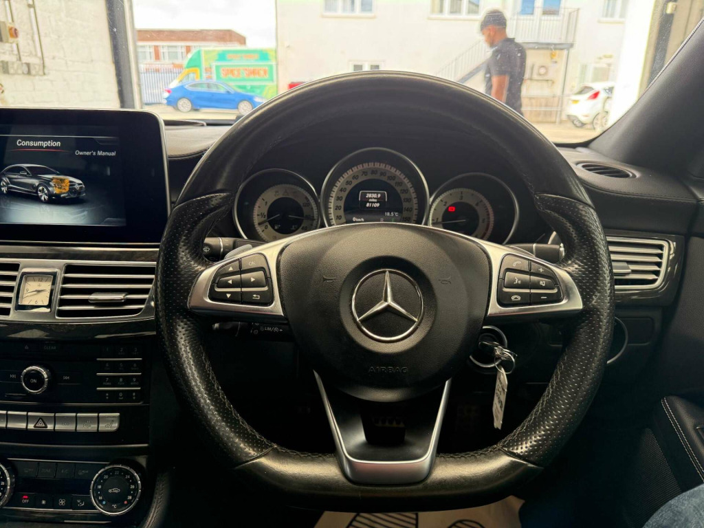 This Mercedes-Benz CLS220d AMG Line from 2015 boasts a full service history, with its last service completed on 24th September 2025 at 80,111 miles, and comes with a clear vehicle history check. This Euro 6 compliant model features a 2.1L diesel engine and the desirable AMG Line trim, offering a blend of style and efficiency. Inside, you'll find comfort and convenience with front seats featuring memory function, heated front seats, and Thermotronic two zone automatic climate control. For ease of parking, it includes rear parking sensors, and the LED headlights provide excellent visibility.With an impressive fuel economy of 59 mpg, this CLS220d AMG Line stands out for its efficiency compared to similar vehicles. The combination of its comprehensive service record, clear history, and sought after features like the memory seat function and LED headlights, demonstrates a well maintained and thoughtfully equipped example of this stylish Mercedes-Benz. in alloy wheels - amg multi-spoke design - painted titanium grey, 3 years free european map updates, 4.3in tft multi-function colour display, 8-inch colour display, abs - anti-lock braking system, amg bodystyling - front and rear apron - side skirts, asr - acceleration skid control, assyst plus, attention assist, active light system, active park assist with parktronic, adaptive brake lamps, adaptive brake system with hold function and brake drying function, airbags - drivers kneebag, airbags - dual stage - driver, airbags - dual stage - front passenger, airbags - front sidebags, airbags - pelvisbag, airbags - windowbags for driver and front passenger, airbags - windowbags for rear passengers, alarm system with interior protection, ambient lighting - choice of three colour settings, analogue clock, apple carplay, automatic child seat recognition sensor, automatically dimming rear view mirror, bas - brake assist, bluetooth interface for hands-free telephone, brake calipers with mercedes-benz lettering, brake pad wear indicator, brushed stainless steel sports pedals with rubber studs, cd-dvd radio, comand online system with media interface, centre armrest - front with storage, centre armrest - rear with storage, childproof locks - manually operated for rear doors and electrically operated for rear power windows, collision prevention assist plus, crash sensor with emergency opening function for doors, cruise control with speedtronic variable speed limiter, cup holder - front x2, cup holder - rear x2, dab digital radio tuner, daytime running lights - led, direct control - sport-tuned suspension, door handles - chrome, door handles - illuminated, door mirrors - drivers automatically dimming, door mirrors - electrically adjustable-folding-heated, door pockets - front, door pockets - rear, door sill panels - stainless steel inlays with mercedes-benz lettering, esp - electronic stability programme, electric windows - 4 - with one-touch opening and closing - including obstruction sensors, enhanced foglight system, exhaust system - twin visible tailpipes, first aid kit, flashing brake lights, floor mats - black with amg lettering, front seats - electrical height and backrest adjustment, glove compartment - ventilated and lockable, hard disk drive hdd map navigation system with tmc traffic message channel, headlights - adaptive high beam assist, headlights - cornering light function, headlights - led, headlights - multibeam led intelligent light system, heated front seats, heated windscreen washer system, hill start assist, isofix child seat attachment points with top tether in rear, illuminated glove compartment, immobiliser, in-car internet access, instrument cluster with two tube-design round dials, interior lighting - activated automatically at unlocking, linguatronic voice control, map pockets on front seat backrests, mercedes me connect, mercedes-benz apps, mirror package, motorway mode function, neck-pro adjustable front head restraints, outside air temperature gauge, parking sensor - front, parking sensor - rear, power steering - direct steer system with speed sensitive, pre-safe anticipatory safety system, radiator grille with integrated star - single louvre in diamond design, radio aerial integrated into rear window, rain sensing windscreen wipers, reading lights - rear, rear lights - led, rear seat belts status indicator, remote boot release with inside switch, remote central locking, sd card slot in centre console, seats - amg sports, seats - electrically adjustable driver and passenger, seats - front electrical height adjustment, smartphone integration, speed-dependent automatic locking, sport braking system, steering column - manually adjustable for height and reach, steering wheel - amg flat bottomed 3-spoke nappa leather, steering wheel - chrome inserts and perforated leather in grip area, steering wheel - multi-function, storage compartment beneath load compartment floor, sun visors with illuminated vanity mirrors, tirefit with tyre inflation compressor, thermotronic automatic climate control - two zone, tinted glass all round - green, trim - gloss black ash-wood, trip computer, tyre pressure monitoring system, usb ports in centre console x2, warning triangle, ecall - emergency call system