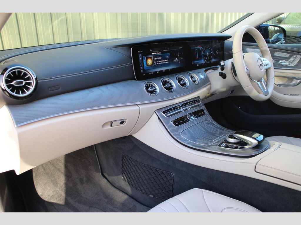 DRIVING ASSISTANCE PACKAGE PLUS - For sale: An exquisite 2018 68 registered Mercedes-Benz CLS 400d AMG Line Premium Plus, resplendent in the breathtaking Canvansite Blue metallic, paired with an opulent Beige hide interior. With just 44,000 miles and one owner new, this magnificent vehicle boasts an extraordinary specification, epitomising unparalleled luxury and advanced engineering. This distinguished CLS 400d is adorned with 20 AMG multi-spoke alloy wheels and the exclusive beige hide option. It is equipped with the driving assistance package with distoqnic cues control, active park assist and active lane keeping assist along with the surround view camera system. The Burmester premium surround sound system delivers an unparalleled auditory experience, while the premium ambient illumination bathes the interior in a serene and sophisticated glow. Technological marvels include the expansive 12.3 widescreen COMAND APS navigation system, DAB digital tuner, traffic sign recognition and MBconnect services. The wireless telephone charging system, collision warning system with active brake intervention and memory package further elevate the vehicles convenience and safety and an electric glass sunroof add to the vehicles distinguished features. The dynamic LED headlights with automatic high beam assist, AMG styling package featuring front and rear spoilers and side skirts and heated electric front seats enhance both the exterior and interior aesthetics. Additional features include remote trunk locking, sensors for trunk lid opening/closing, the 4MATIC all-wheel drive system, cruise control with speed hold and an on board computer. Presented in what is arguably the finest colour combination available, this CLS 400d AMG Line Premium Plus stands as a peerless example of automotive excellence. A true testament to luxury and performance. ****VIEWING STRICTLY BY APPOINTMENT ONLY - FOR FURTHER INFORMATION REGARDING THIS VEHICLE AND ANY OTHER PREMIUM MARQUE IN STOCK, PLEASE CALL SALES DIRECT. VEHICLE FINANCE SPECIALISTS OFFERING COMPETITIVE PACKAGES****