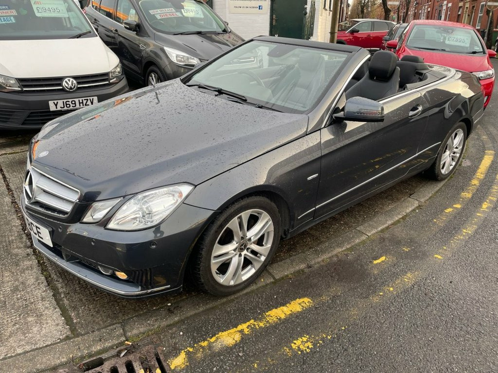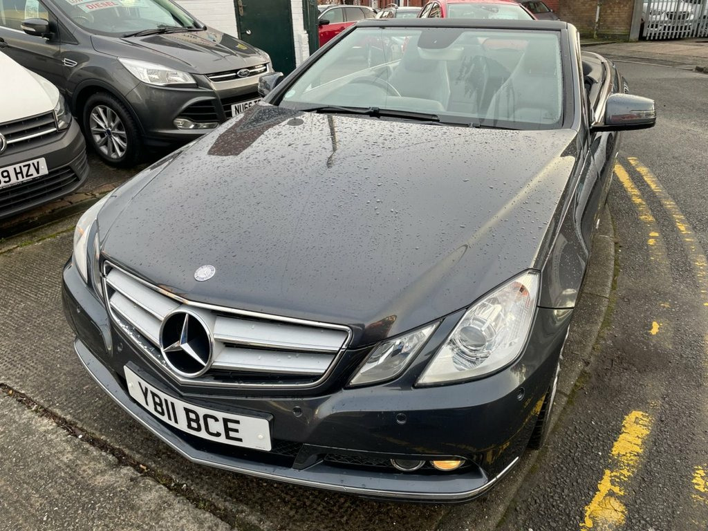 11 MERCEDES E CLASS E220 CDI BLUEEFFICIENCY SE 2DR CONVERTIBLE AUTO TIPTRONIC IN METALLIC GREY WITH FULL BLACK LEATHER TRIM AND BLACK HOOD, 96,000 MILES FROM NEW AND ONLY 2 FORMER KEEPERS, THE CAR COMES WITH SERVICE HISTORY, FULL VOSA MOT HISTORY, FULL CLEAR HPI REPORT AND BOTH KEYS, WILL BE SUPPLIED WITH A NEW MOT, INDEPENDENT MULTI POINT INSPECTION AND OIL SERVICE, CLEAN CAR THROUGHOUT £5995.00 17in 5 Twin Spoke Alloy Wheels, 17in 9 Twin Spoke Alloy Wheels, 8 Speakers, Audio 20 Radio & CD & MP3 player, Automatic Climate Control, Bluetooth interface for Handsfree teleph, Brushed Aluminium Trim, Cruise Control with speedtronic variable, Daytime running Lights, Drivers lumbar support, Front FogLights, Model designation deletion, PAS, Partial Electric Front Seats & backr, Soft top- Black, Soft top- Dark Beige, Soft top- Dark Blue, Soft top- Red, Stowage compartment with 12V socket