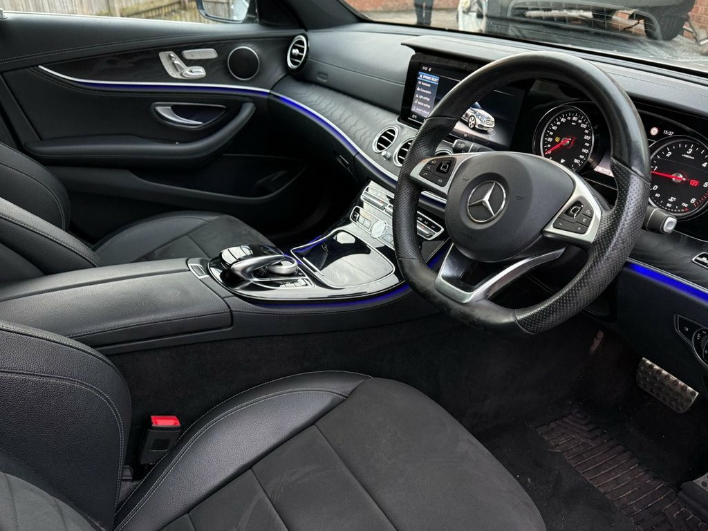 This 2017 Mercedes Benz E Class E200d AMG Line (Premium) presents a superb ownership proposition with only two previous owners and a clear vehicle history. Fitted with a 2.0 litre Euro 6 diesel engine, this AMG Line variant offers a refined driving experience. Key features include heated front seats for added comfort, LED High Performance headlamps with integrated daytime running lights for excellent visibility, and a Premium Package which incorporates keyless entry, a panoramic opening sunroof, and memory seats. The interior also benefits from automatic two zone climate control and a reversing camera for ease of parking. This E Class stands out with its impressive fuel economy, achieving an outstanding 66 miles per gallon, which is significantly better than many comparable vehicles. Furthermore, its low CO2 emissions contribute to a more environmentally conscious drive. The generous boot space ensures practicality for everyday needs and longer journeys. With a low mileage of just 62,245 miles for its age, this Mercedes Benz E Class offers a compelling blend of luxury, efficiency, and practicality. 19in Alloy Wheels - AMG 5-Twin-Spoke Des, ABS - Anti-Lock Braking System, AMG Bodystyling - Front and Rear Aprons , ATTENTION Assist, Active Bonnet - Pedestrian Safety Measur, Active Braking Assist, Adaptive Brake Lights, Adaptive Brake System with HOLD Function, Agility Control Suspension with Selectiv, Airbag - Kneebag for Driver, Airbags - Driver and Front Passenger wit, Airbags - Sidebag for Driver and Front P, Airbags - Windowbags, Alarm System with Immobiliser and Interi, Analogue Clock in Centre Console, Audio 20 USB, Automatic Child Seat Recognition Sensor, Automatic Climate Control - Two-Zone, Brake Calipers with Mercedes-Benz Letter, Brake Wear Warning Display, Central Locking with