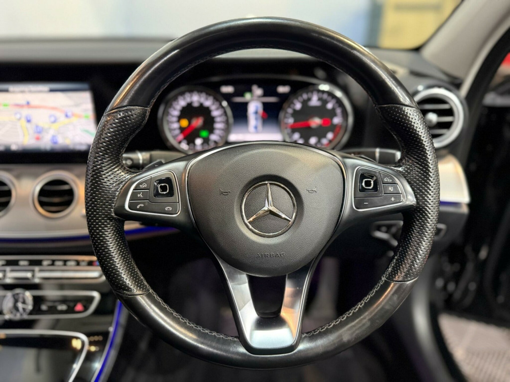 This 2017 Mercedes Benz E Class E200d SE (Premium) has been cherished by only two owners, offering a superb example of this popular executive saloon. Powered by an efficient 2.0 litre Euro 6 diesel engine, this E Class boasts impressive fuel economy, achieving an outstanding 72 miles per gallon. The SE trim level provides a comfortable and refined driving experience, complemented by the Premium package which includes the advanced Multibeam LED Intelligent Light System for optimal visibility. Inside, you'll find the sophisticated COMAND Online System with Bluetooth connectivity, and the convenience of Keyless Go Comfort Package for effortless entry and starting.Further enhancing this E Class is the expansive Panoramic Glass Sunroof, creating a bright and airy cabin, while the Memory Package ensures your preferred seating position is always readily available. These features, combined with its low CO2 emissions and low insurance group, demonstrate how this Mercedes Benz E Class offers a superior ownership proposition compared to other vehicles in its class. The generous boot space also adds practicality for everyday use and longer journeys, making this a well rounded and desirable vehicle. in alloy wheels - 5 spoke design - vanadium silver, abs - anti-lock braking system, attention assist, active bonnet - pedestrian safety which detects an impact and raises bonnet, active brake assist, active parking assist including parktronic, adaptive brake lights, adaptive brake system with hold function and brake drying function, agility control, airbag - drivers knee, airbags - driver and front passenger with extended adaptivity for front passenger airbag, airbags - sidebag for driver and front passenger - combined thorax-pelvis bag, airbags - windowbags, alarm system with immobiliser and interior protection, analogue clock in centre console, audio 20 usb, automatic child seat recognition sensor, brake wear warning display, brushed stainless steel sports pedals with rubber studs, central locking with interior switch - automatic locking and crash sensor with emergency opening function, central stowage compartment with 12v socket in centre console, childproof locks - manually operated for rear doors and electrically operated for rear power windows, courtesy lights in rear grab handles with reading light functionality, cruise control with speedtronic variable speed limiter, dab digital radio tuner, direct-steer speed sensitive steering, door mirrors - electrically adjustable and heated, drivers seat - height-adjustable, dynamic select with a choice of driving modes - comfort - eco - sport - sport plus - individual, esp - electronic stability programme, electric parking brake, electric windows - 4 - with one-touch opening and closing - including obstruction sensors, electronic key - chrome surround, exhaust system - visible twin-pipe integrated into the bumper, first aid kit and warning triangle, front centre armrest with stowage compartment, front door sill panels with mercedes-benz lettering, front four way partially electric seat adjustment, front seats - electrical height and backrest adjustment, garmin map pilot navigation system, glove compartment - illuminated, head restraints for driver and front passenger - 4-way and in rear 2-way adjustability, headlamps - led high performance with integrated led daytime running lights, heated windscreen washer system, isofix child seat fixing points in rear - two outer seats, incorrect fuelling protection, instrument cluster with two tube-design round dials and 8.4in tft multifunction display, interior 64-colour ambient lighting, keyless-go starting function, keyless go comfort package, memory package, mercedes me connect, mirror package, outside temperature display, panoramic glass sunroof, polished aluminium waistline, pre-safe anticipatory safety system, radiator grille with integrated star - two louvres in matt iridium silver with chrome trim, radio aerial integrated into rear window, rain sensing windscreen wipers, rear lights - led, remote boot release, reversing camera, seat occupancy sensor - front passenger seat, seats - heated front, service indicator assyst, status display for rear seat belts in instrument cluster, steering column - manually adjustable for height and reach, steering wheel - 3-spoke in black nappa leather, steering wheel - multi-function with gearshift paddles, steering wheel - touch-control buttons for audio and onboard settings, stowage package, sun visors with illuminated vanity mirrors, sunglasses compartment in overhead control panel, thermatic - automatic climate control - two-zone, tirefit with tyre inflation compressor, three point seat belts for all seats, tinted glass all round - green, top surround of side windows in polished aluminium, trim - aluminium with trapeze cut, trim - centre console in high-gloss black, trip computer in multi-function display, tyre pressure monitoring system, usb port in centre console, comand online system, headlights - multibeam led intelligent light system, privacy glass, heated windscreen, leather - black, seats - rear split folding 40-20-40